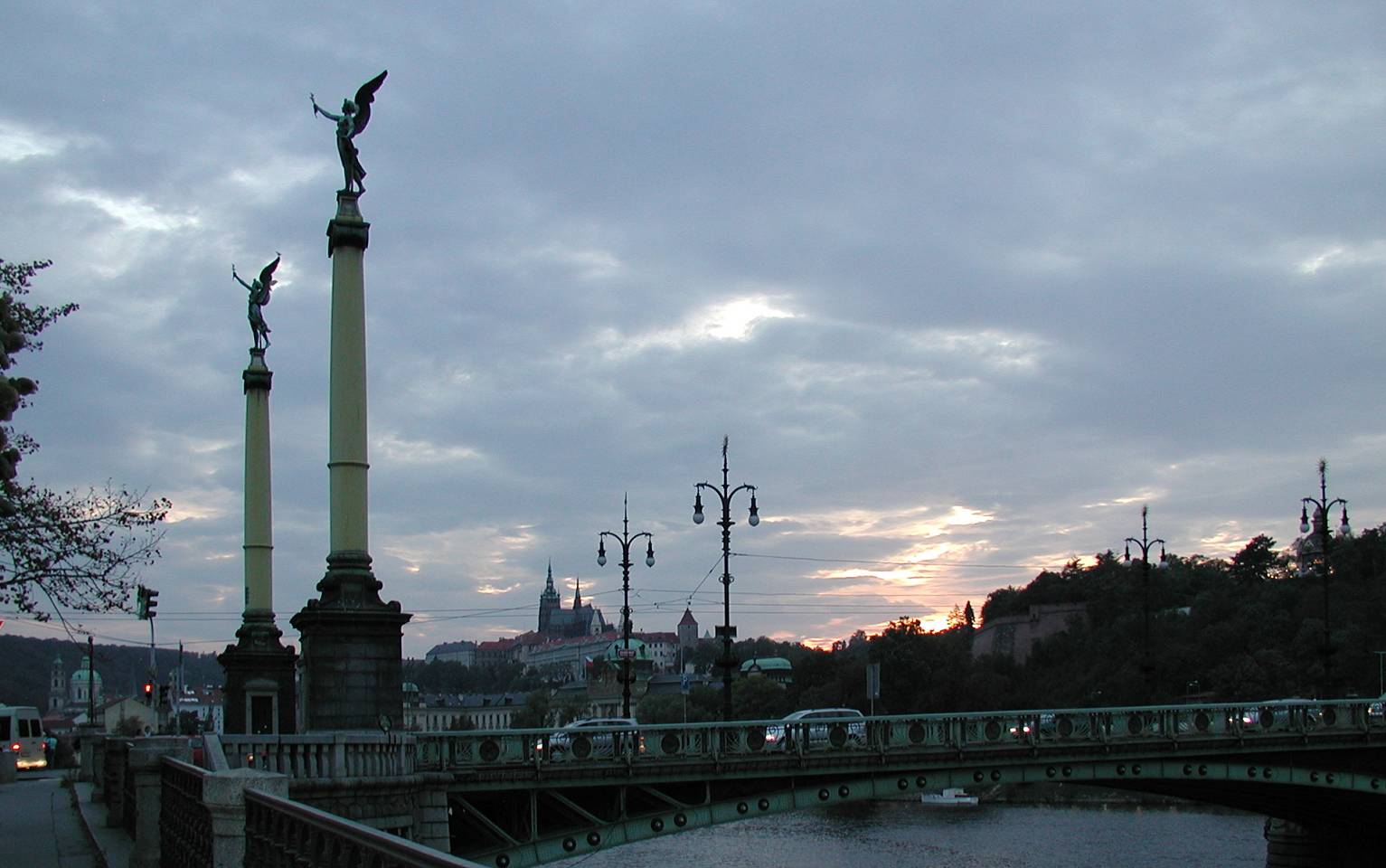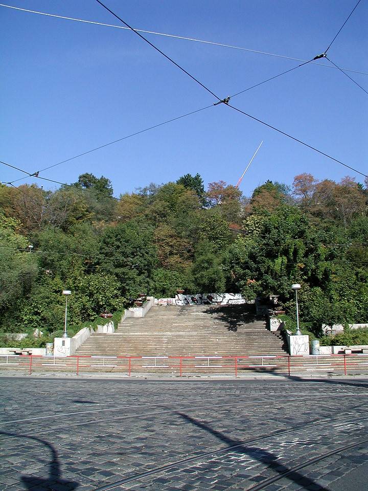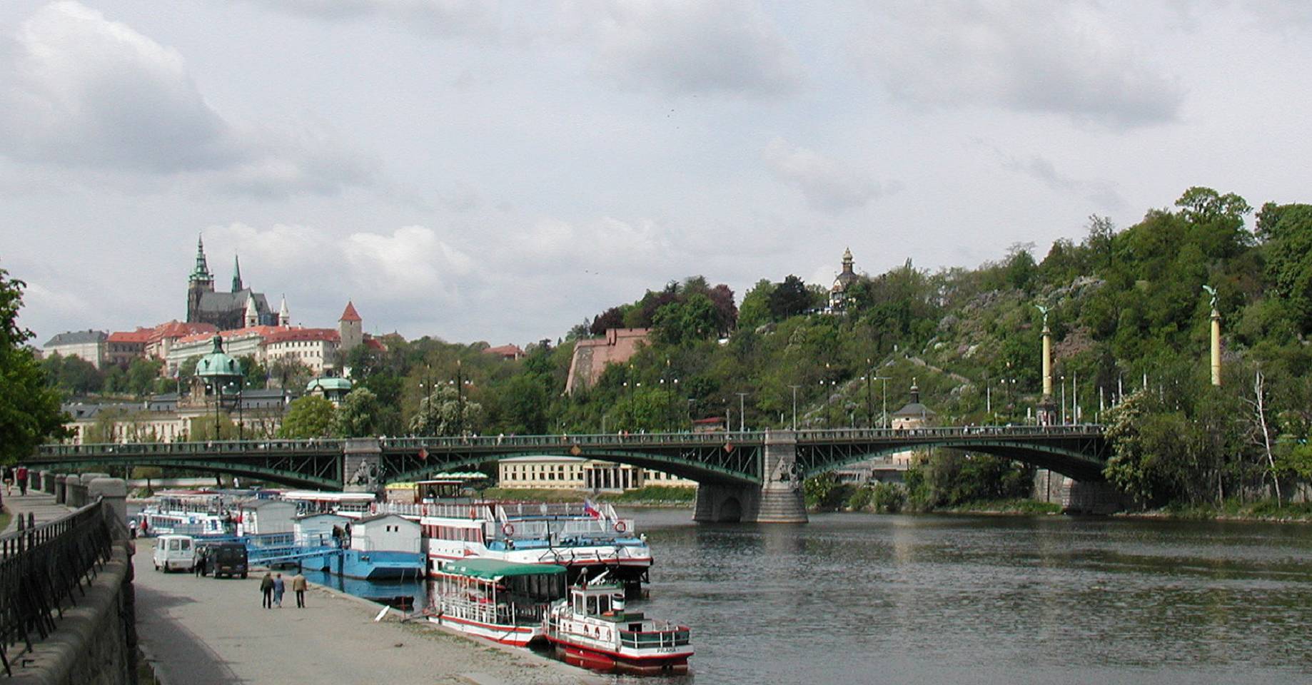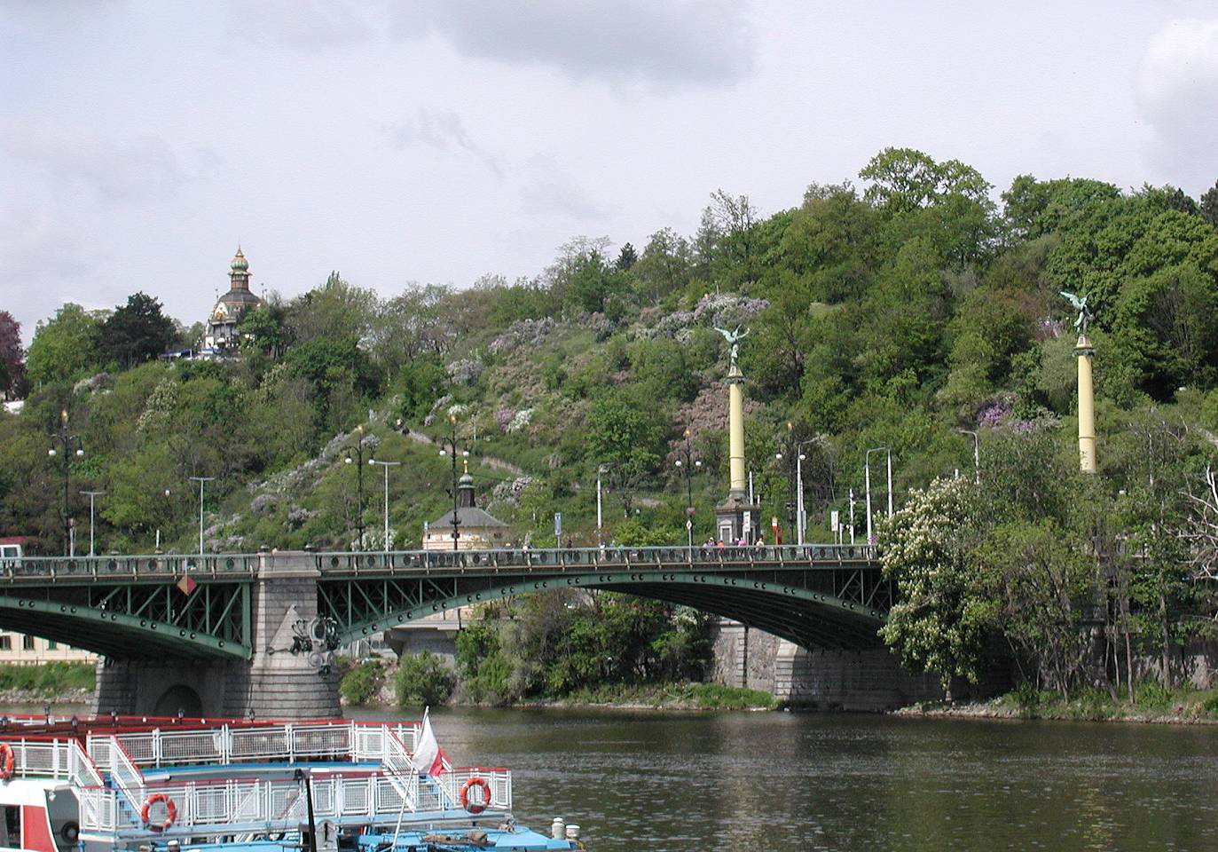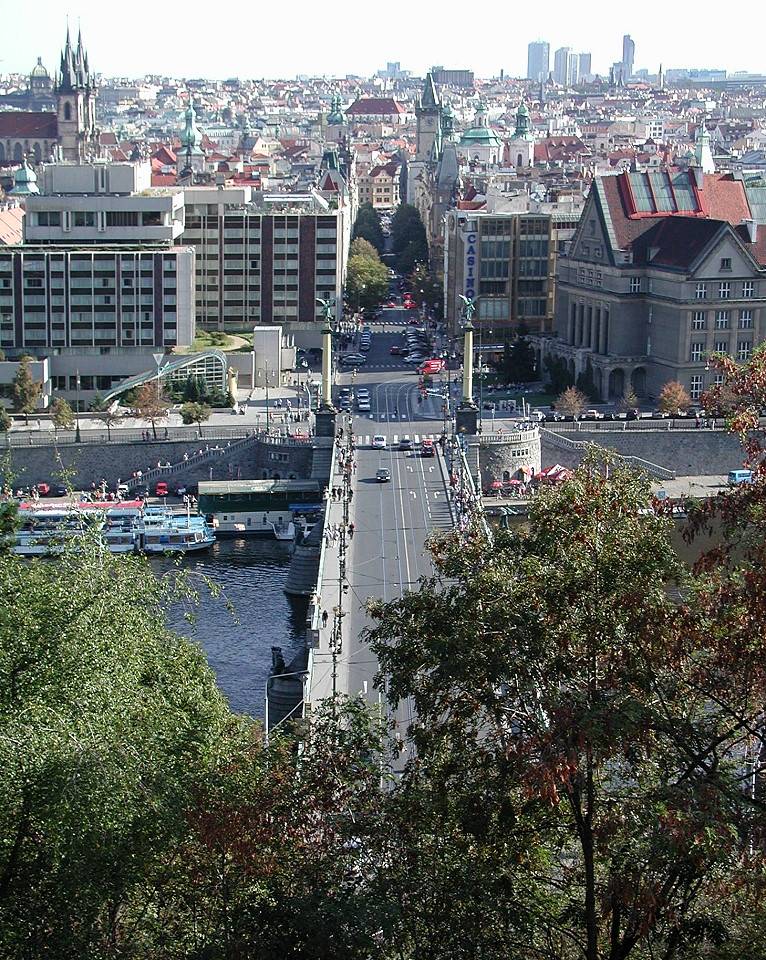 Vom Altstadtring durch die Pariser Str. (Pařížská ul.) gelangt man über die Čech-Brücke zum linken Ufer der Moldau, dem E.Beneš-Ufer unterhalb der Letna-Anhöhe.