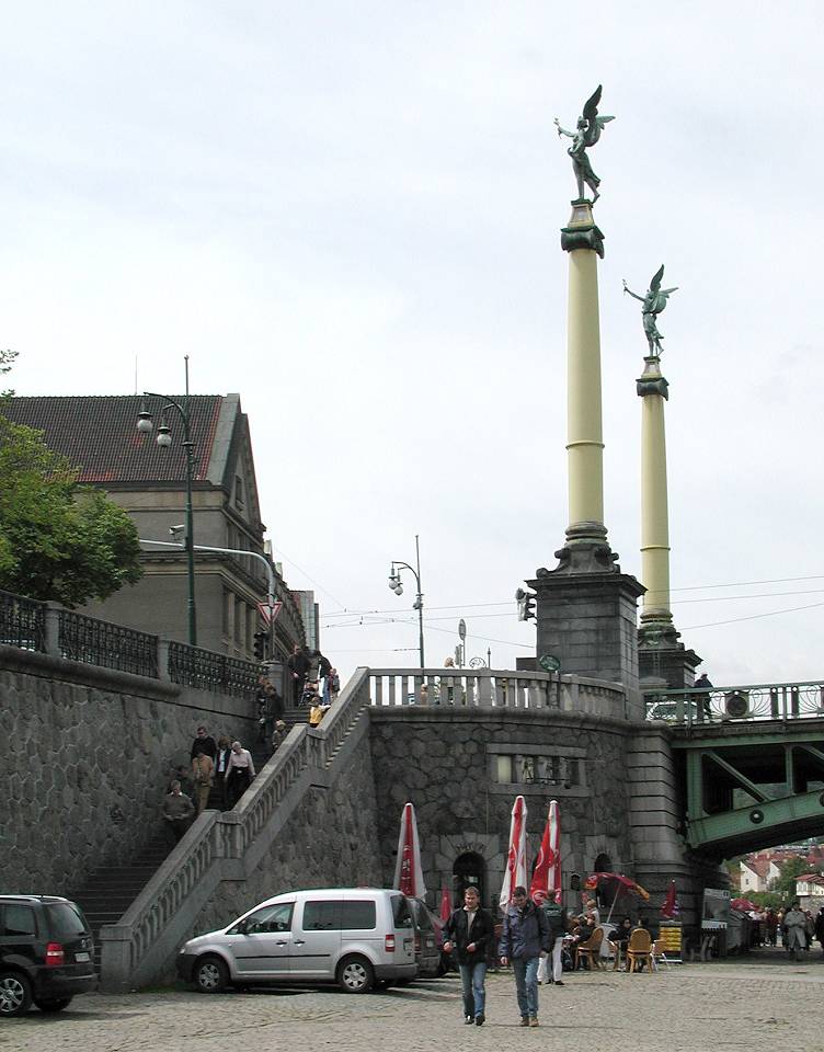 Die 2. Brücke flussabwärts nach der Karlsbrücke ist derzeit die einzige Stahlbogenbrücke in Prag. Die Brücke wurde 1905 -1908 erbaut.