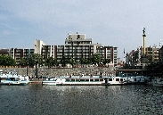 Hier, unterhalb der Rechtsfakultät der Karlsuniversität, befindet sich eine Schiffsanlegestelle für Ausflugschiffe zum Prager ZOO.