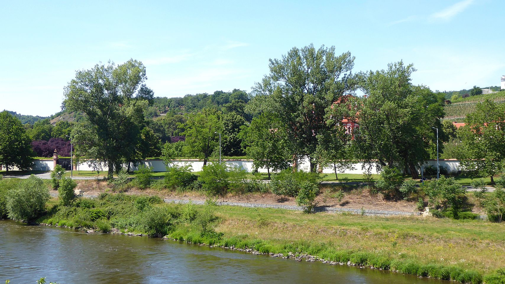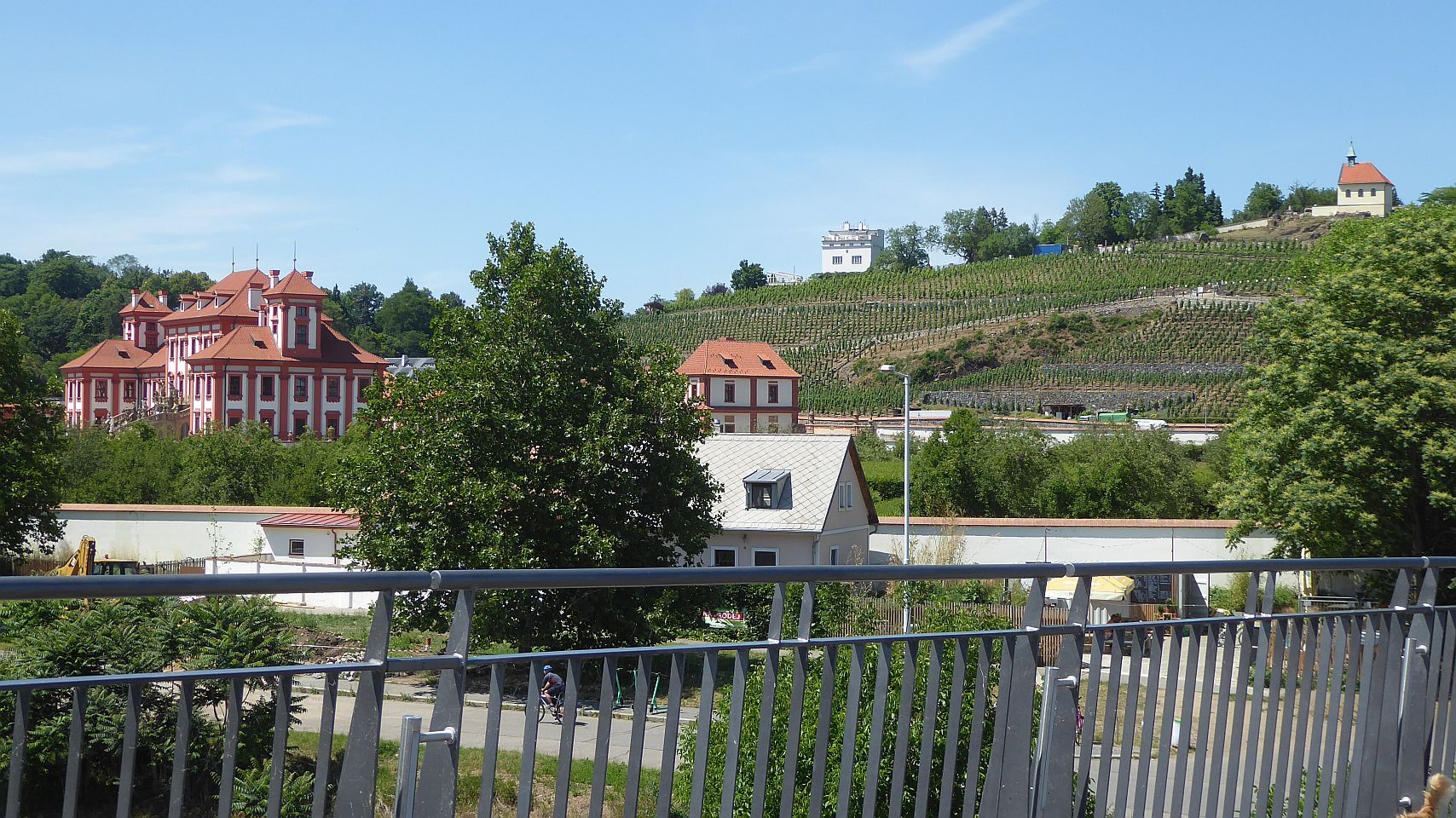 Vom früheren königlichen Wildgehege und heutigen Erholungspark Stromovka führt ein sehr schöner Fußgängerweg über eine kleine Brücke über den Seitenarm der Moldau – dem Schiffs-Kanal – auf die Kaiser-Insel (Císařský ostrov). Von hier geht es auf der Fußgängerbrücke über die Moldau zum nördlichen Ufer, zum Residenz-Stadtviertel Troja.