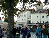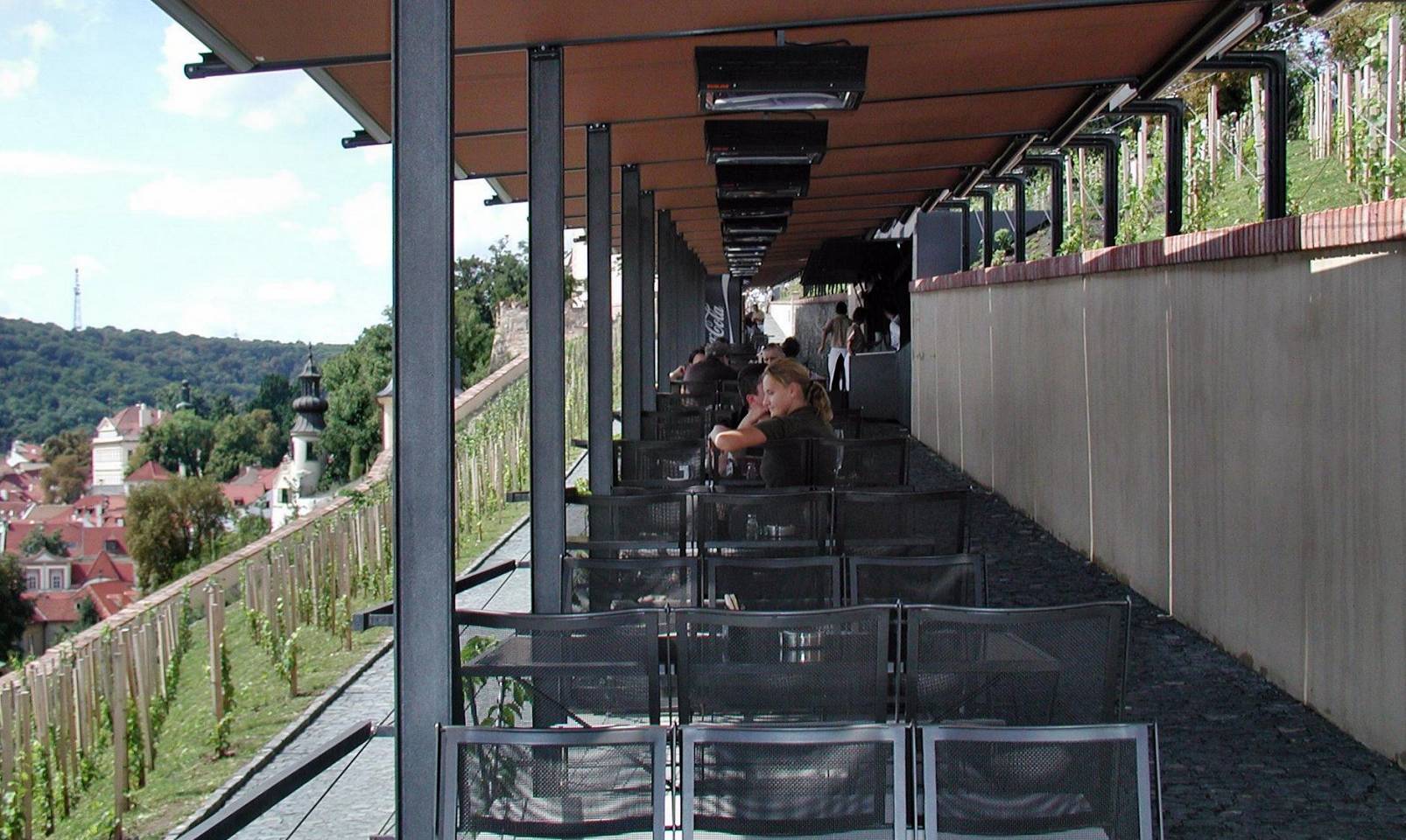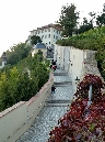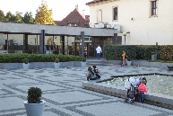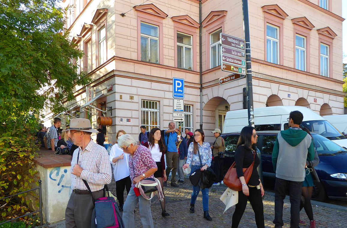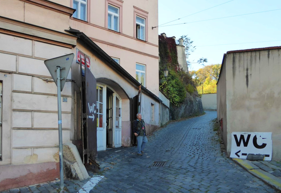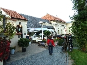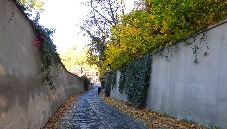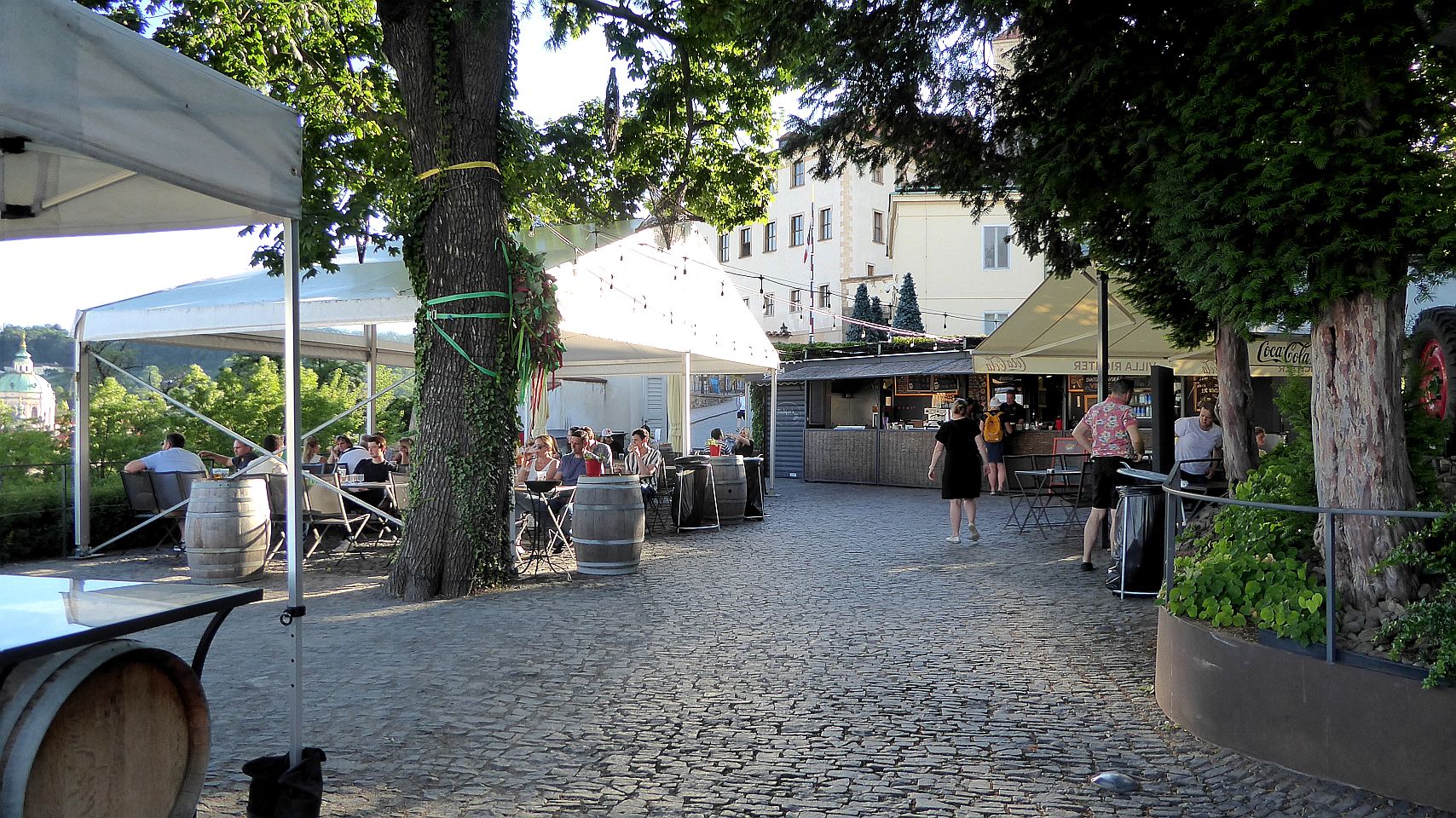 Hier am Ende der alten Schloßstiege ist auch der Eingang zu der Weinberge des hl. Václav mit der Richter-Villa, die bewirtschaftet ist. Der Ausgang führt weiter unten wieder auf die Schloßstiege zurück und somit ist die Besichtigung der Weinberge durchaus eine lohnende Alternative für den Rückweg zur Metrostation.