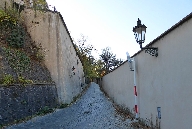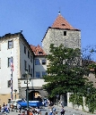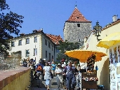 Am Ende öffnet sich eine Aussichtsplattform mit einem sehr schönen Blick über die Stadt. Oberhalb der Aussichtsfläche ist der Eingang zum östlichen Burgtor am Schwarzen Turm.