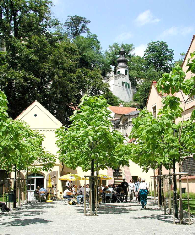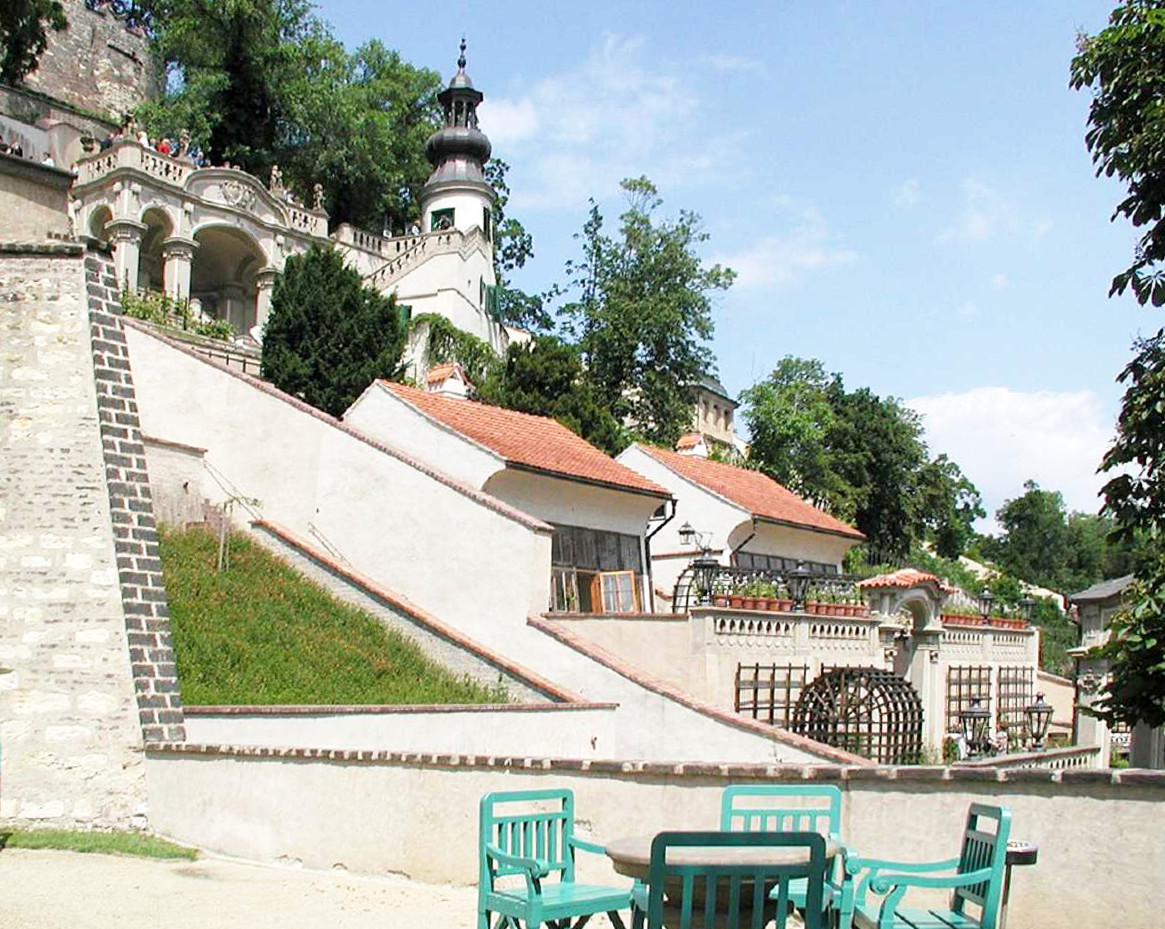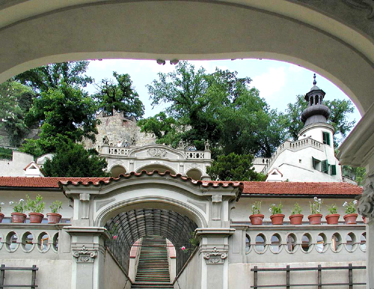 Der Besuch der Burg-Gärten kann auch als Rückweg von der Burg zur Metro dienen. Die Trasse durch die Gärten (einschl. Waldštejn-Garten) bis zur Metro ist ca. 2 km lang