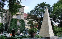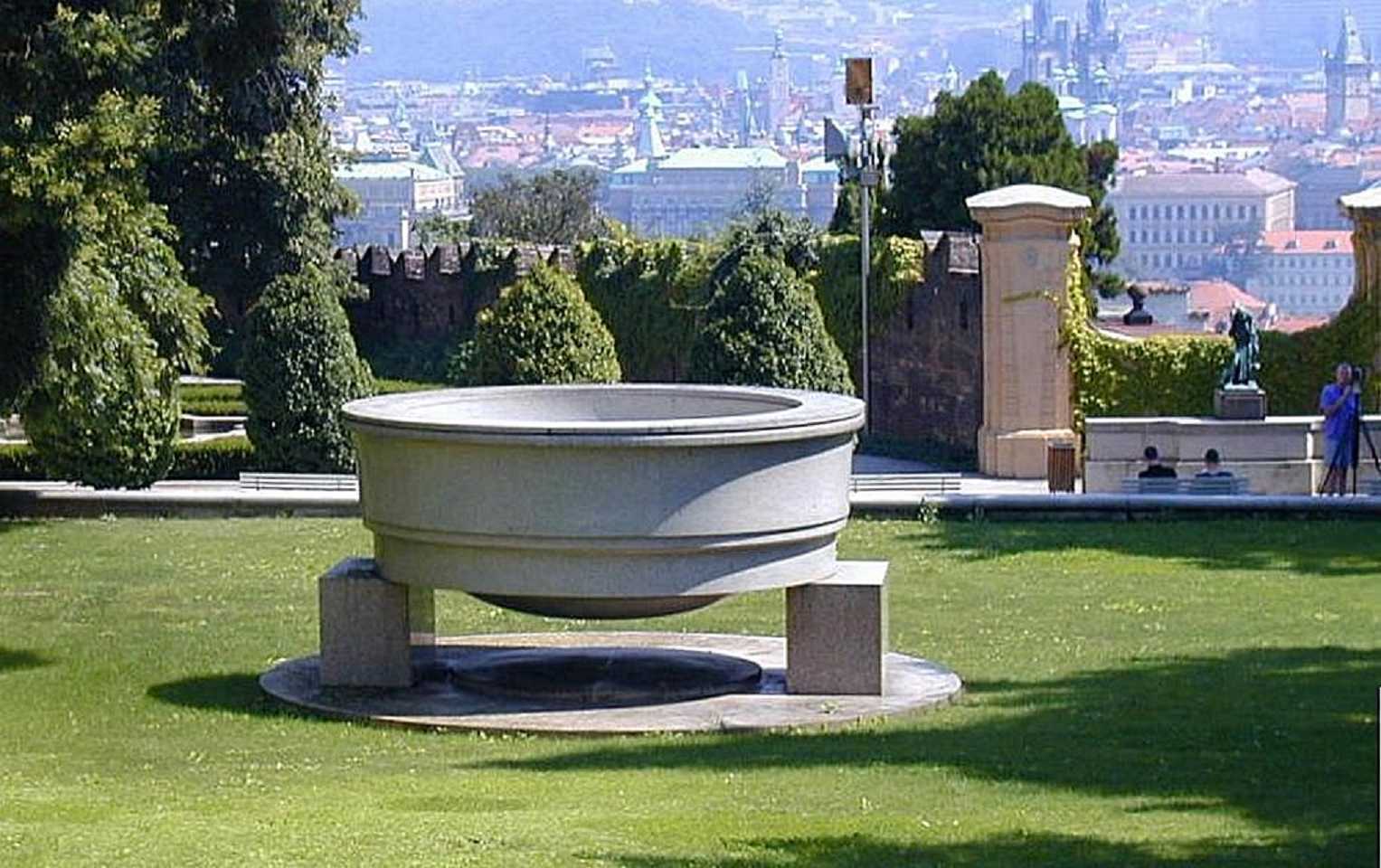 Über die Treppe vom Hradschin-Platz steigen wir herunter zum Paradies-Garten - Rajská zahrada mit einer riesigen (Blumen?)-Schale und einem Säulepavillion.