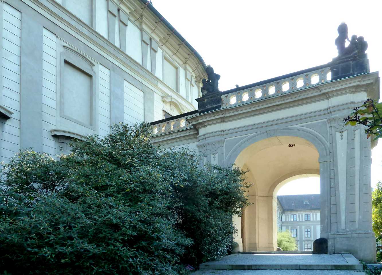 der Ausgang unten am Ledebour-Palast in der Straße Valdštejnská oder am Kleinen Fürstenberger Palast zur gleichen Straße hin.