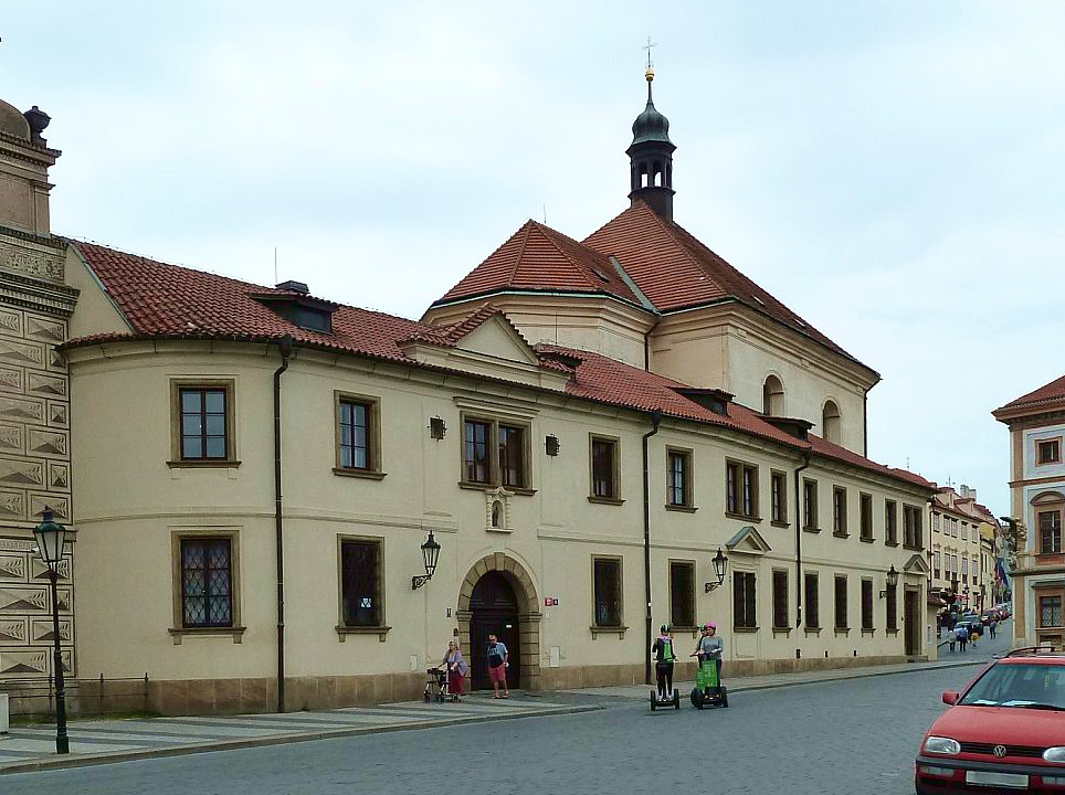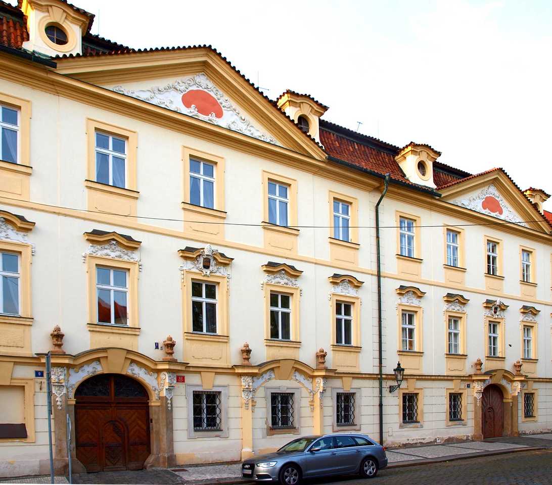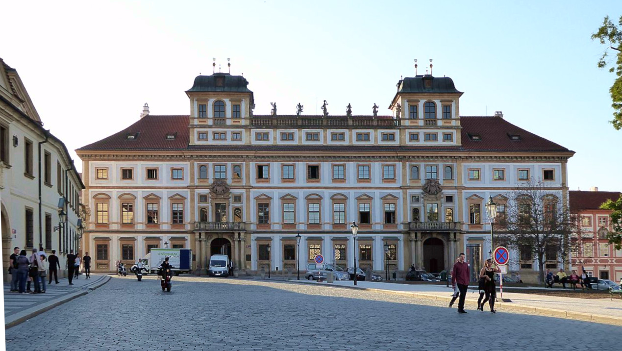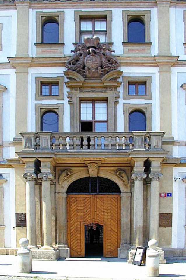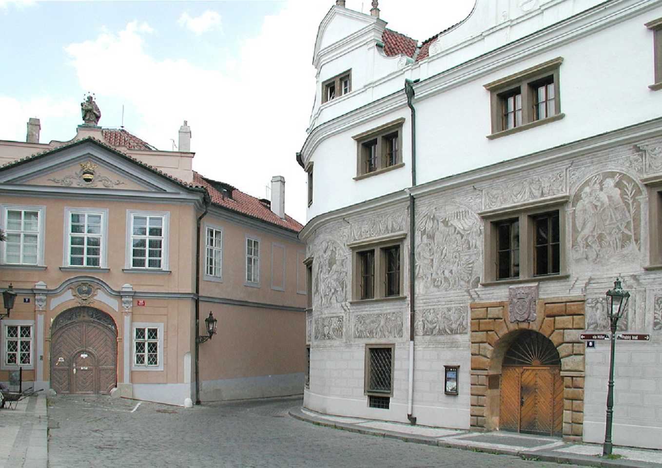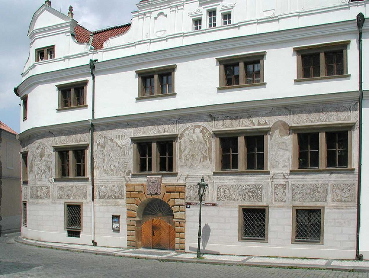 Das 3-flügelige Gebäude wurde zwischen 1545-1567 erbaut als Stadtpalast des Jan den jüngeren Popel aus Lobkovic auf dem verbrannten Grund früherer mittelalterlichen Häuser im Frührenaissance-Stil. Die Fassade fällt durch den reichlich angewandten Sgraffity-Dekor (Kratz-Putz)auf. Wärend der kommunistischen Ära war hier ein historisches Armee-Museum, heute ab 2002 gehört es ebenfalls der Nationalgalerie