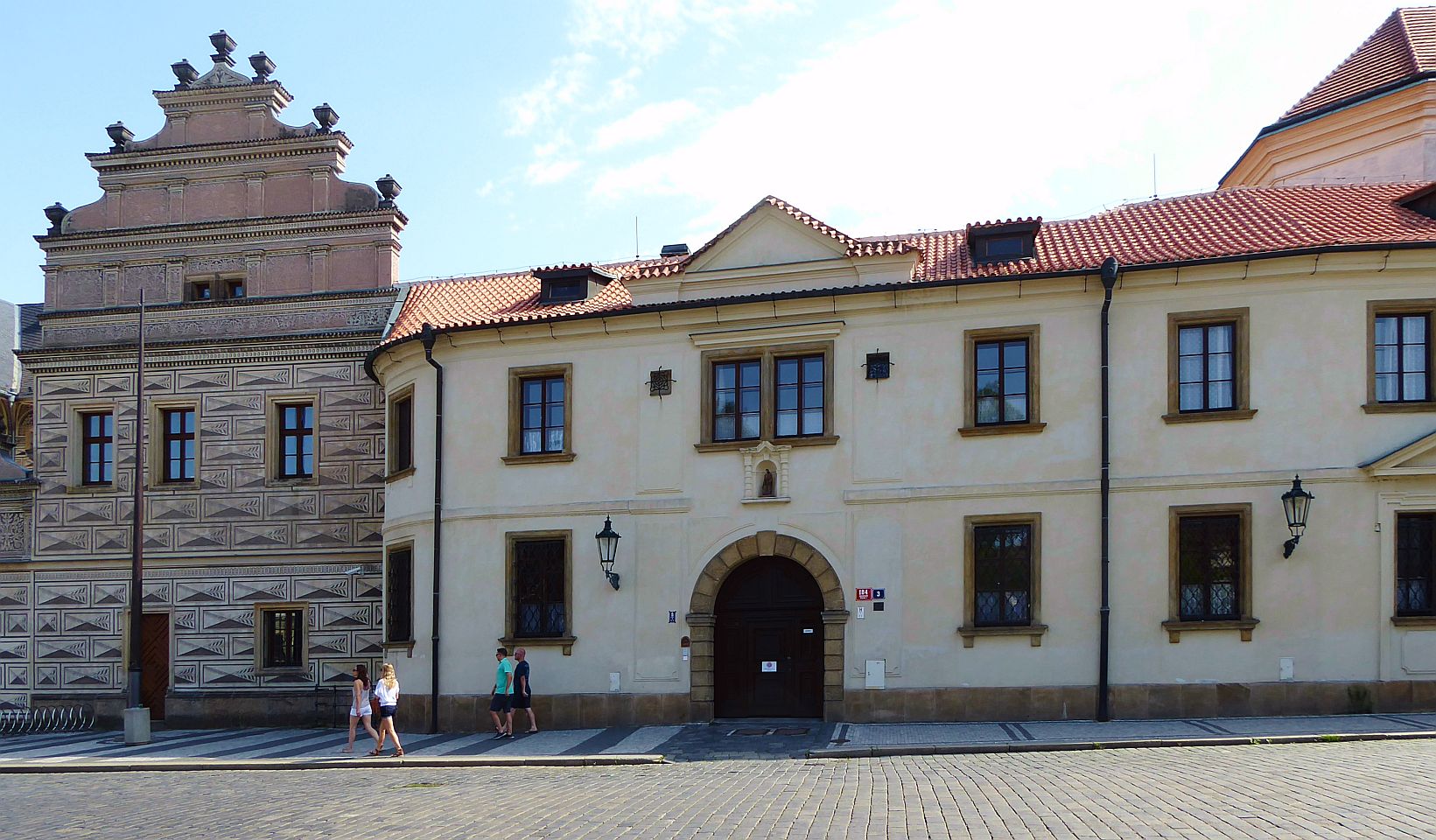 Den Anfang der nördlichen Zeile bildet gleich neben der Burg der Erzbischofs-Palast. Das Gebäude, das ursprünglich Florian Griesbek aus Griespach gehörte, schenkte Kaiser Ferdinand I. am 5.10.1561 als erzbischöfliche Residenz dem Erzbischof Antonín Brus aus Mohelnice. Das Gebäude ursprünglich gotisch, wurde oft umgebaut - zuletzt 1764-1793 im Rokoko-Stil.