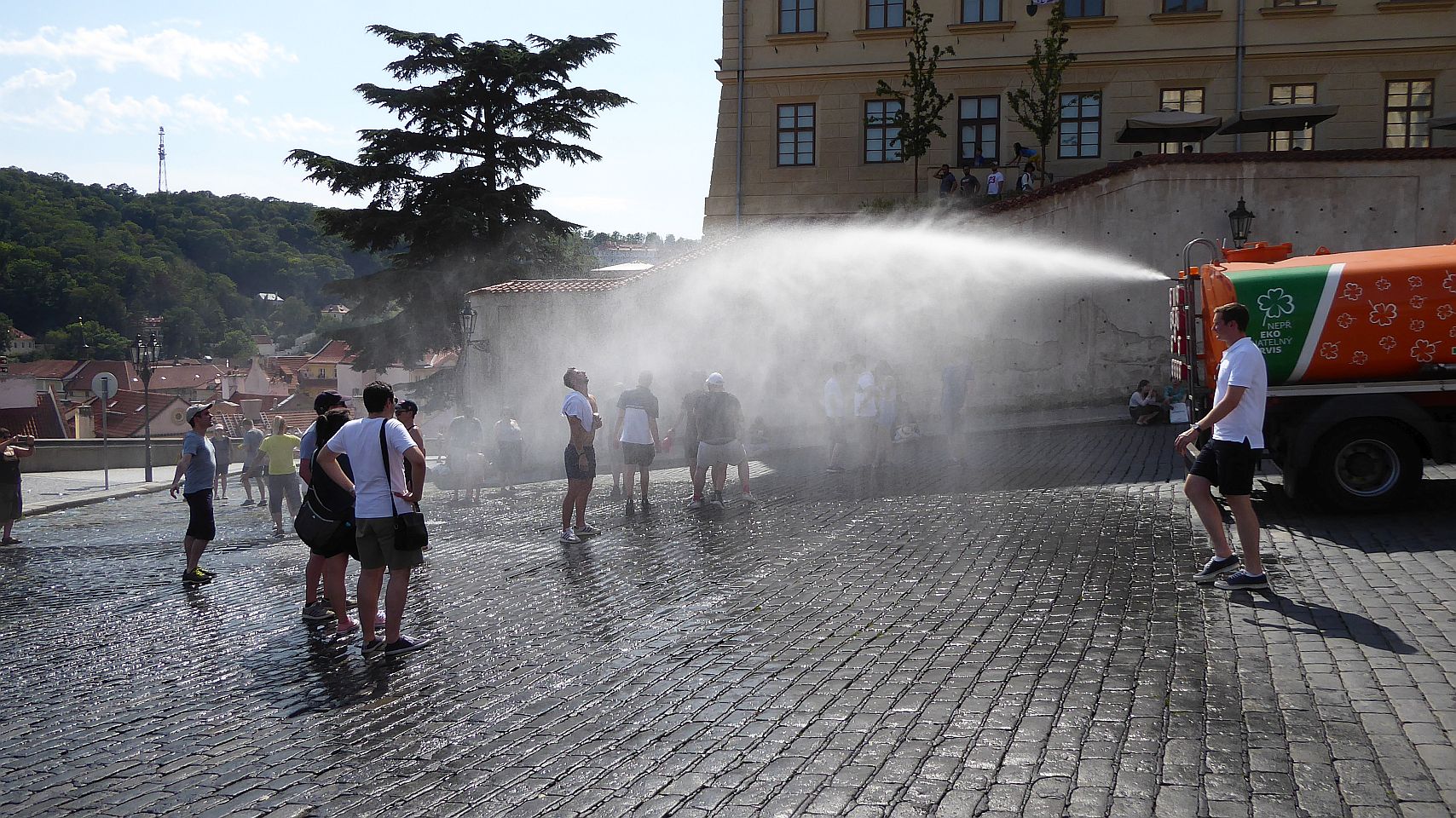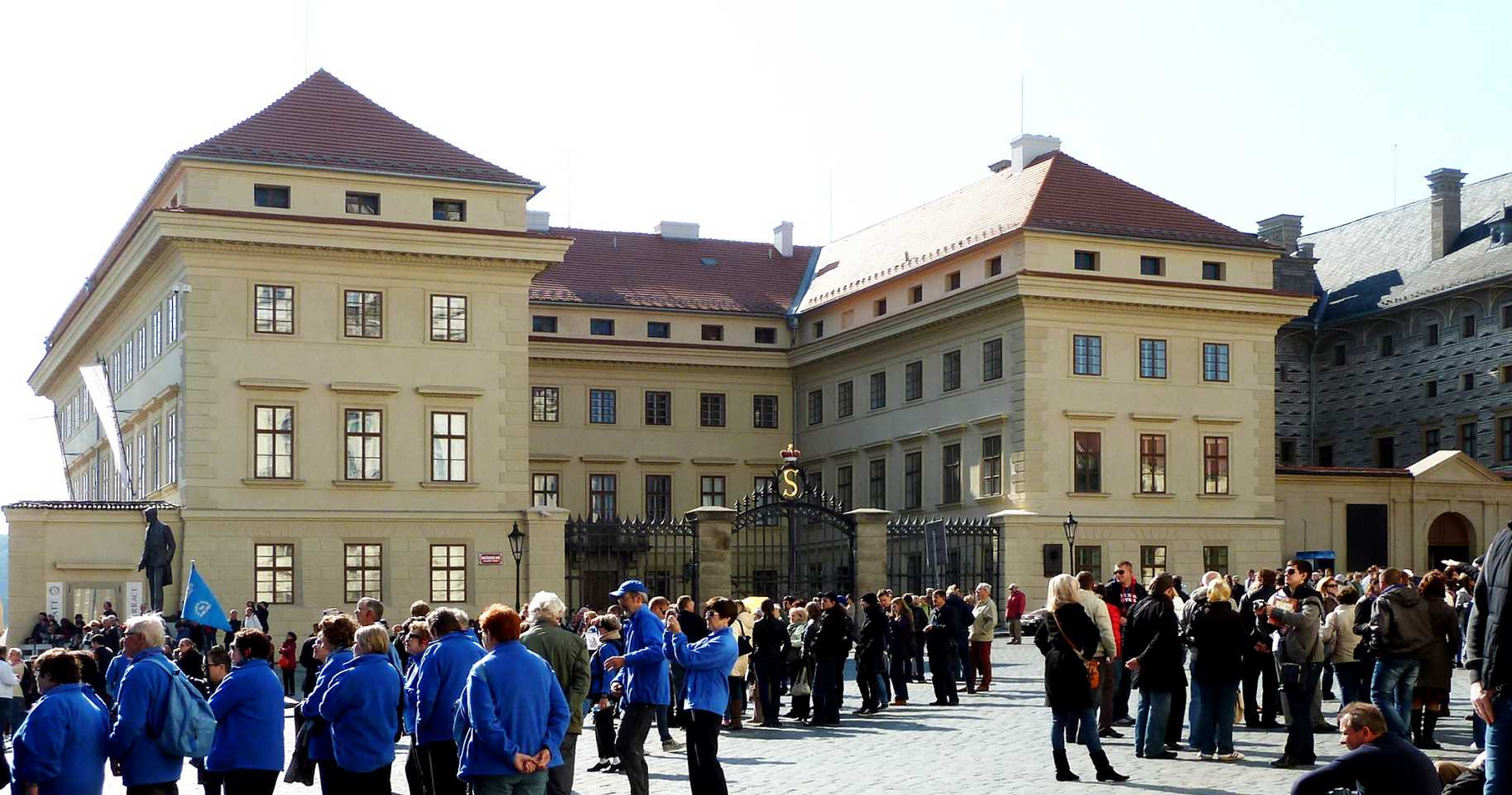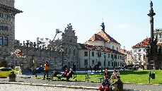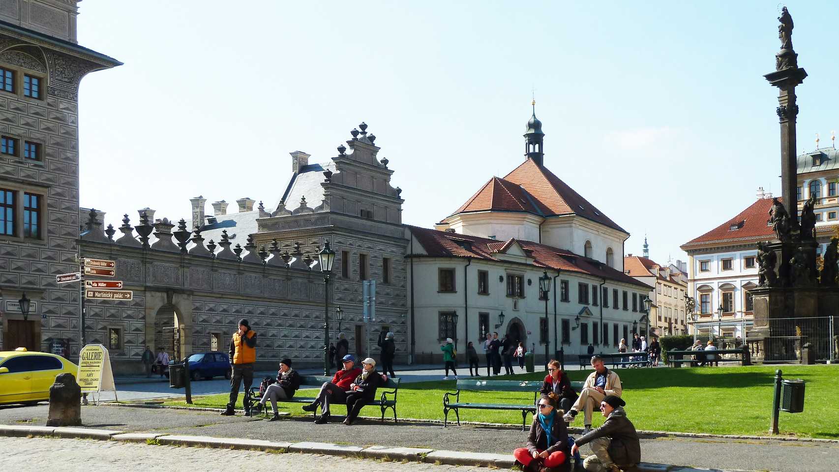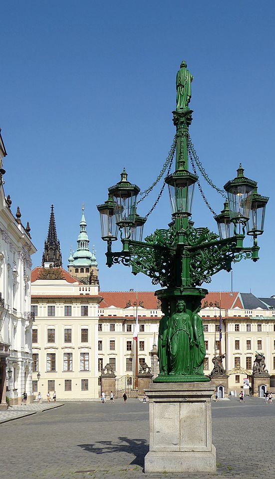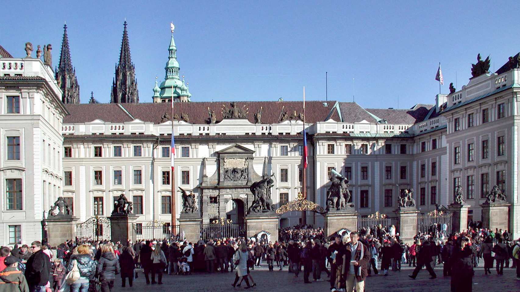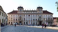 Der Hradschin-Platz erstreckt sich vom Haupteingang der Prager Burg im Osten bis zum Toskanischen Palast im Westen. Hier mündet die Loretánská, die vom Loreto-Platz hierher führt, in den Platz ein.