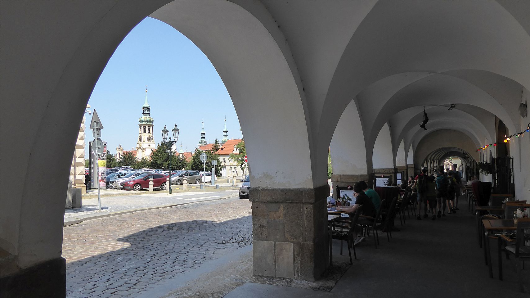 Zum Loreto-Platz gelangt man vom Hradschin-Platz über die Loreto-Str. - Loretánská ul., die dann südlich am Loreto-Platz weiter zum Brandplatz - Pohořelec verläuft (oder umgekehrt vom Pohořelec zum Loreto-Platz).