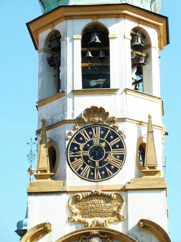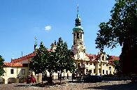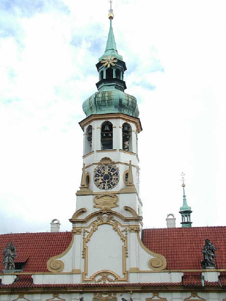 Das Prager Loreto - Pražská Loreta wurde zwischen 1626 und 1750 erbaut. Die barocke Front stammt von Christoph und Kilian Ignaz Dientenzhofer. Das eigentliche Loreto-Heiligtum ist ein kleines fensterloses Häuschen - Casa santa (Svatá chýše) - im Innenhof des gesamten Komplexes. Das berühmte Glockenspiel, bestehend aus 30 Glocken, entstand 1694 in Amsterdam und der Prager Uhrmacher Petr Neumann konstruierte das komplizierte Uhrwerk, das stündlich das Marienlied Gegrüßt seiest du tausendmal, oh Maria abspielt.