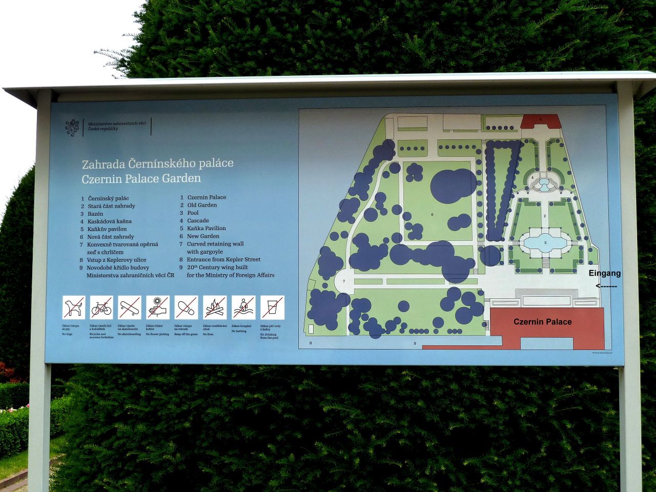 Den westlichen Abschluß des Platzes bildet der mächtige Czernin-Palast - Černinský palác) mit einem großen Garten neben dem Gebäude und einem großflächigen Parkplatz vor dem Palast.