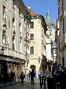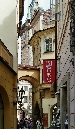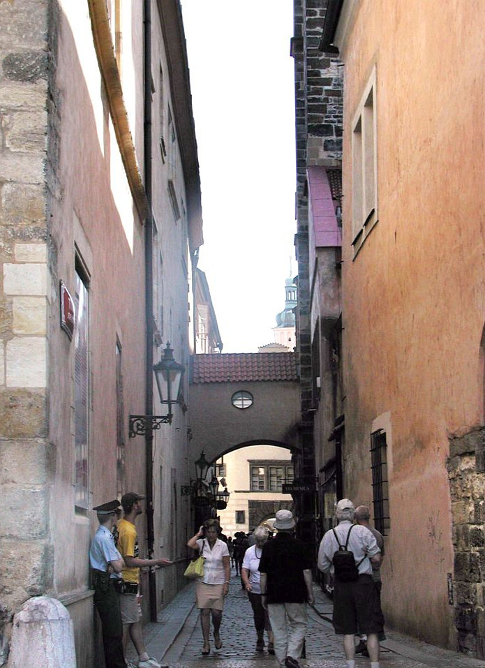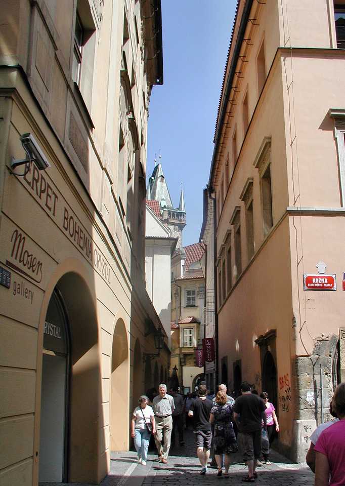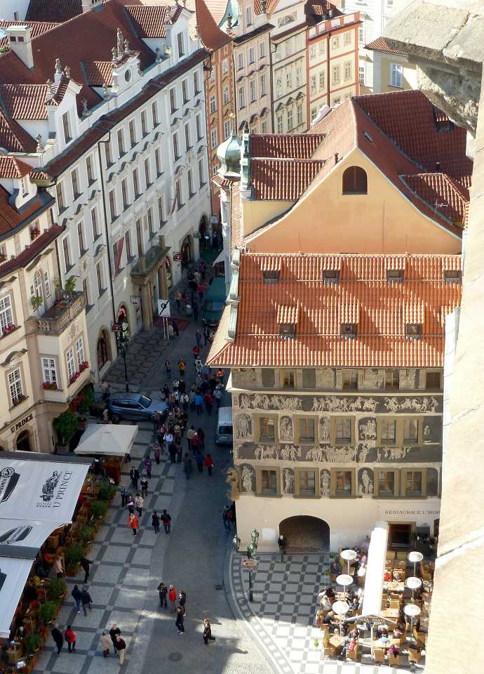 Oder durch die Celetná-Str. die vom früheren alten Königshof, der auf dem heutigen Platz der Republik stand und als der Königsweg an der unteren östlichen Ecke in den Platz mündet (siehe Spaziergänge - Königsweg).