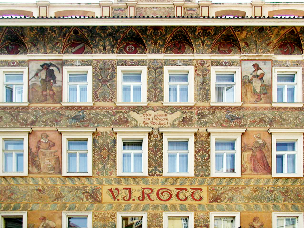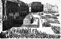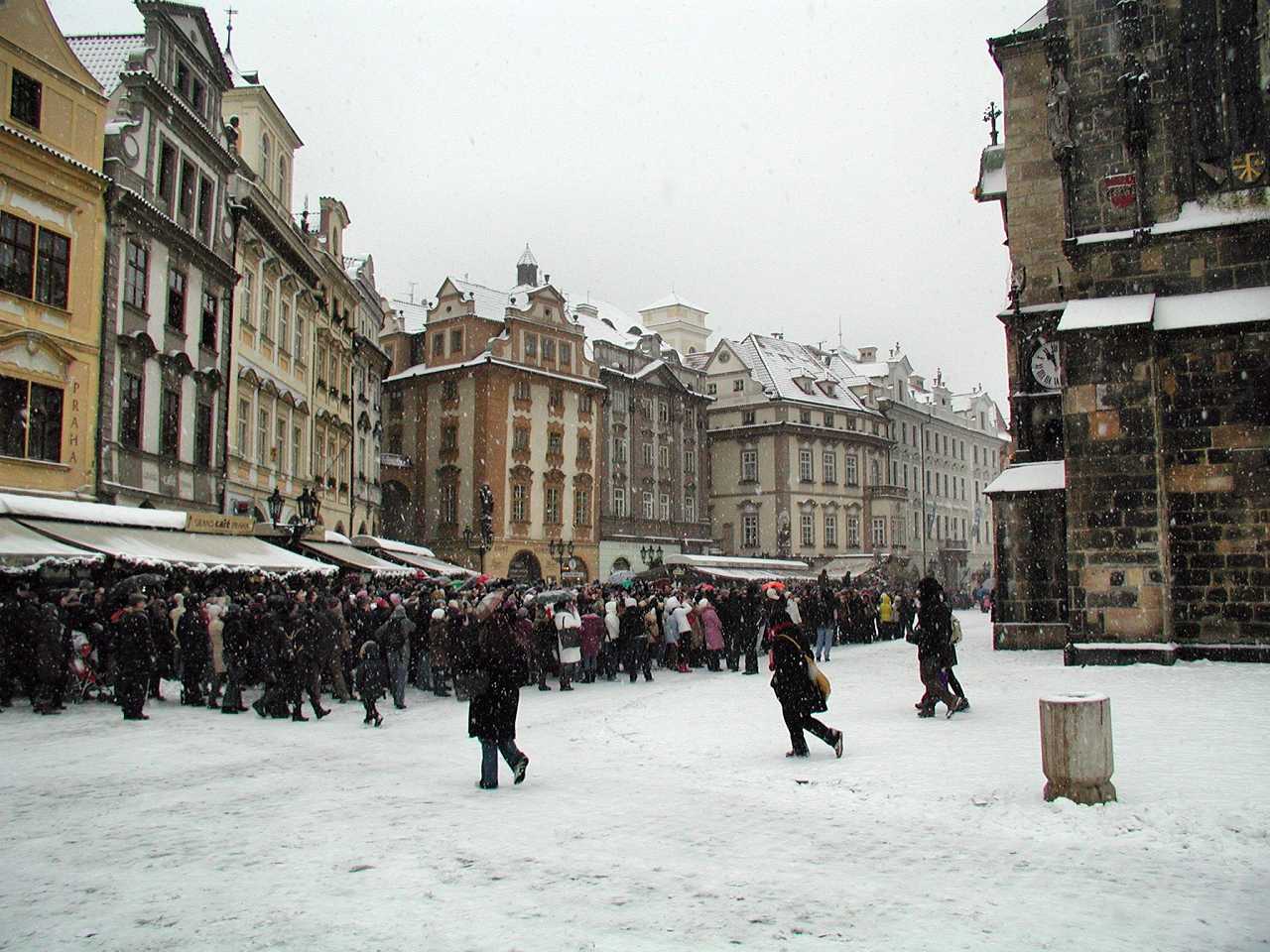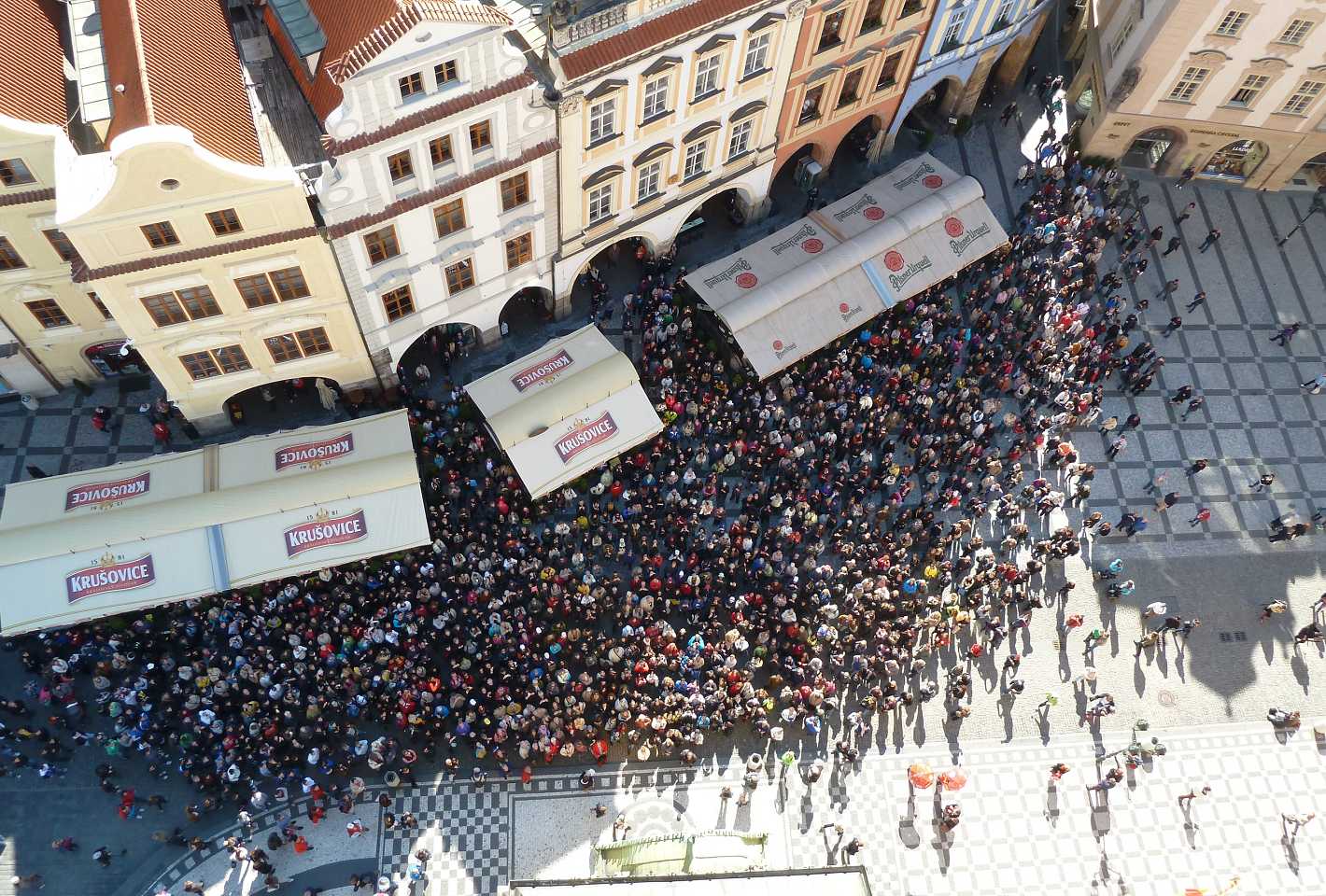 Vor dem Rathaus ist mit Kreuzen die Fläche gekenzeichnet, an der am 21.Juni 1621 auf Befehl von Ferdinand II, Steierer-Habsburger auf dem tschechischen Königsthron, 27 tschechische Representanten des evangelischen Ständeaufstandes hingerichtet und deren Köpfe am Brückentum der Kalsbrücke an Pfählen aufgespiest wurden zur Einschüchterung aller Widersacher der katholischen Kirche und der Habsburger Obrigkeit.