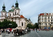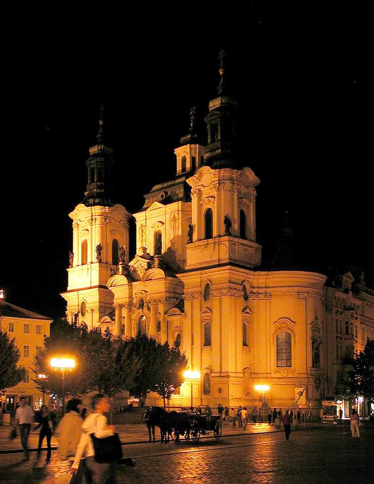 In der Nord-westlichen Ecke des Platzes steht die protestantische Nikolaus-Kirche, die nach Plänen von Kilian Ignaz Dietzenhofer 1732-35 erbaut wurde, an der Stelle an der bereits eine, durch Brand zerstörte Kirche stand. Zeitlang wurde die Kirche als Lagerhaus zweckentfremdet und diente dann auch als Garnisonskirche. Ab 1871 war sie eine russisch-orthodoxe Kirche und seit 1920 dient sie der Tschechischen Hussitischen Kirche, die hier auch gegründet wurde.