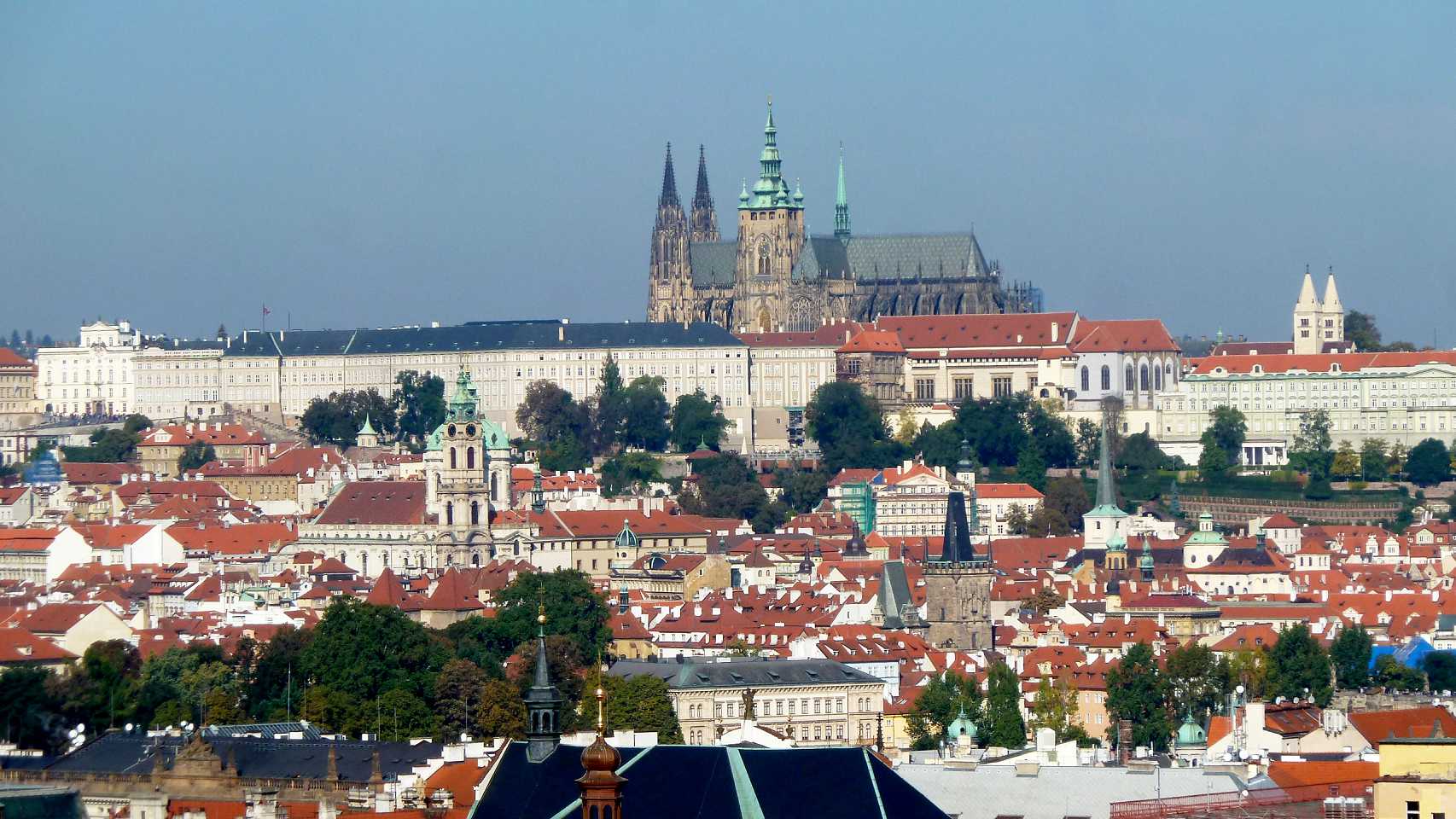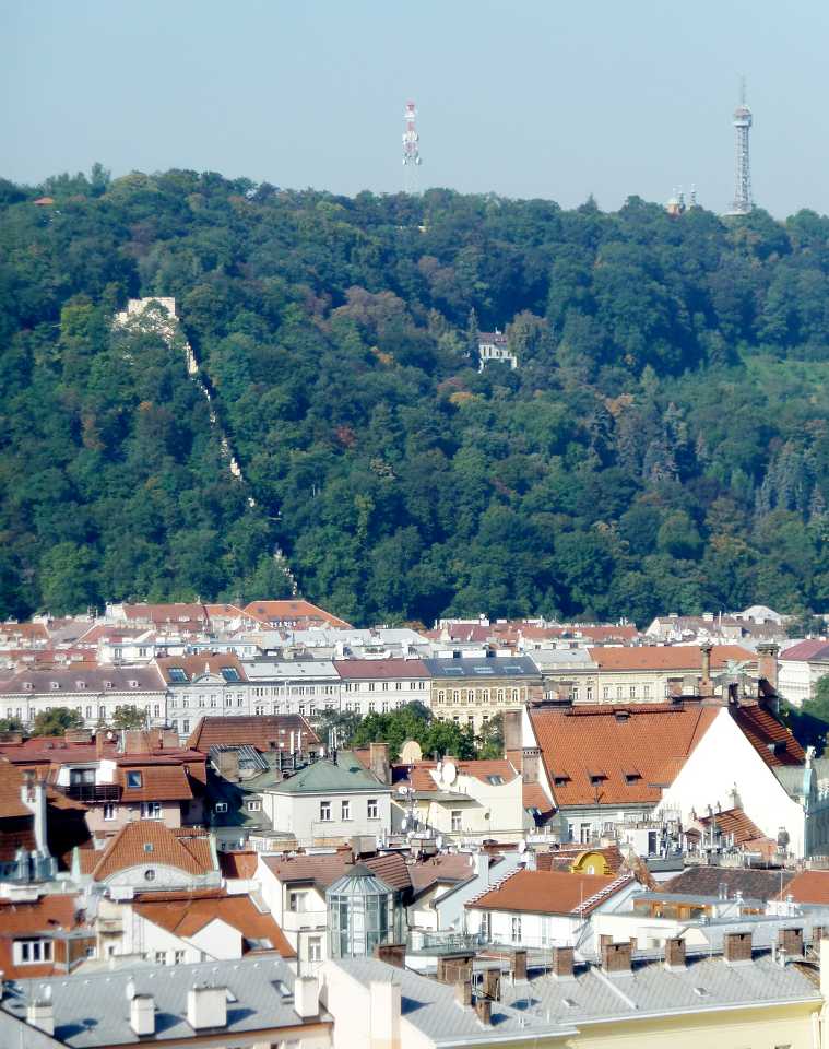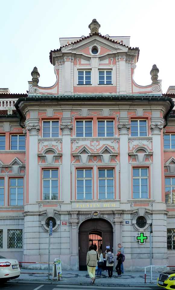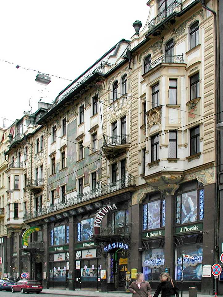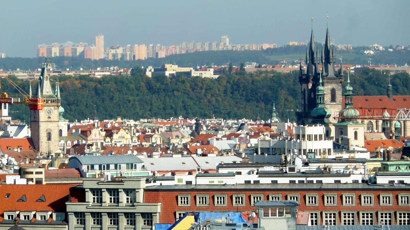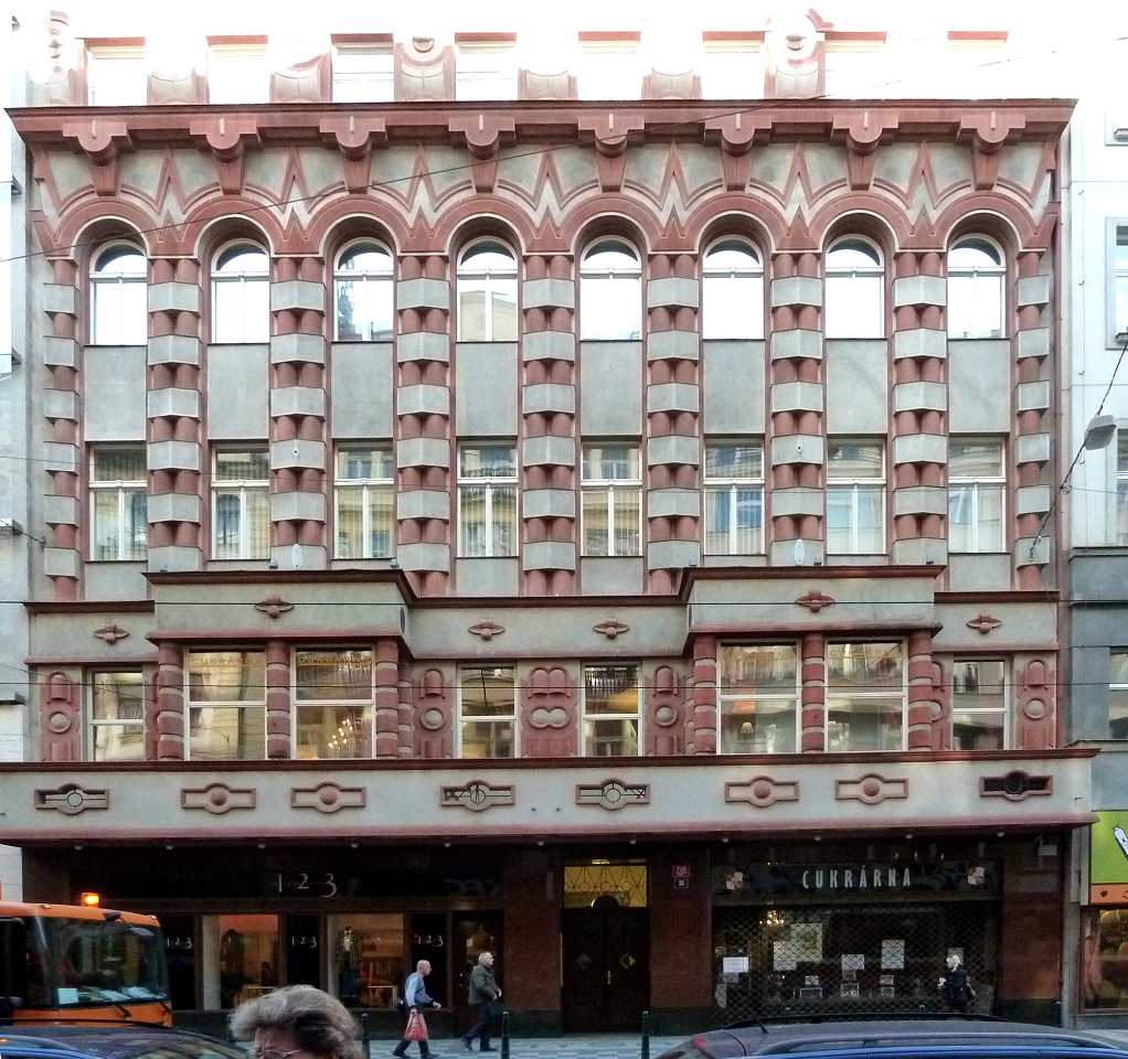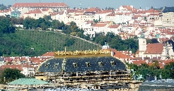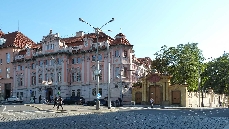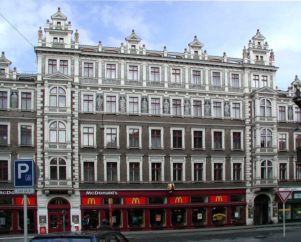 Die Ječná kommt vom Platz des Friedens - Náměstí Míru im Stadteil Vinohrady und führt zur Moldau und der Jirásek-Brücke. Dort an der Ecke des Jirásek-Platzes steht Das Tanzende Haus - Tančící dům.