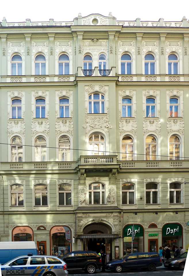 Die Straße Vodičkova trägt ihren Namen unverändert seit ca. 500 Jahren, nach einem reichen Metzger Jan Vodička, der im 15.Jh. das größte Haus in der damaligen Straße bewohnte. Auch die Namen der Nebenstraßen dürften aus der Zeit oder sogar etwas früher stammen - V Jámě (In der Grube), Nad Jámou (Über der Grube), Na Louži (In der Pfütze), V Močále (Im Sumpf) usw.