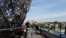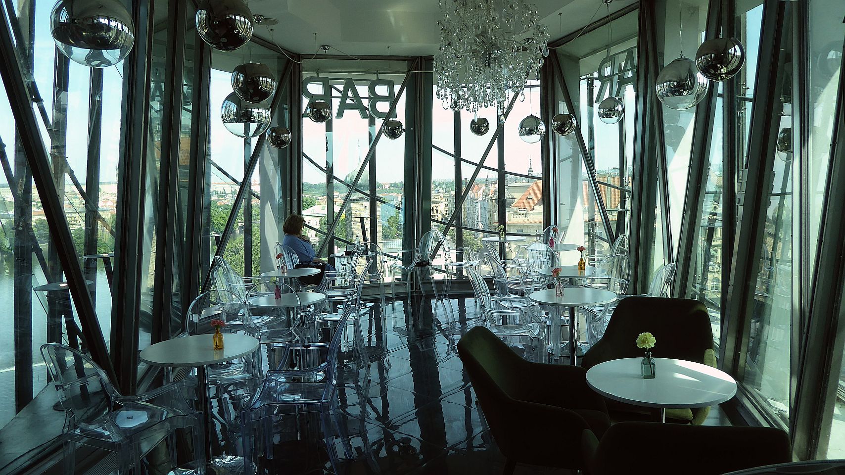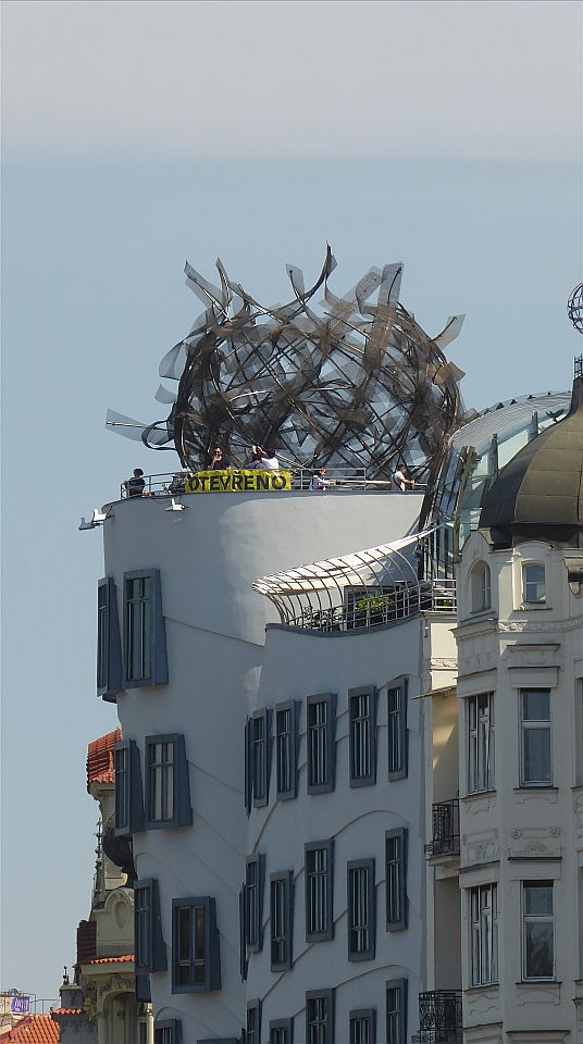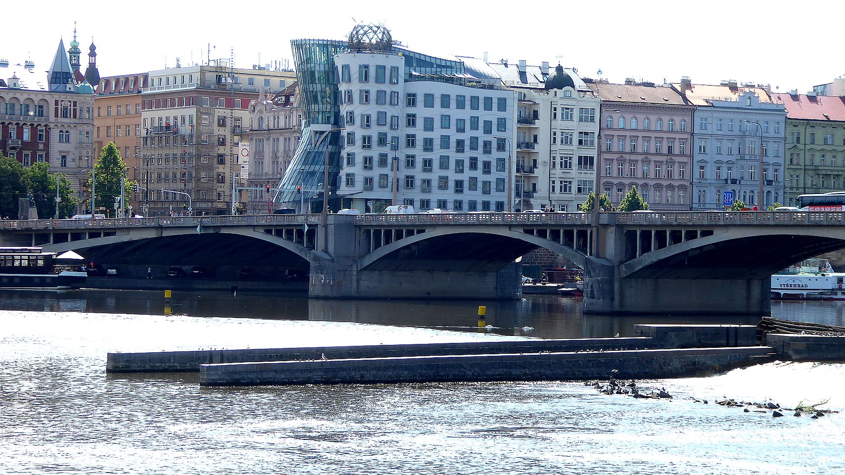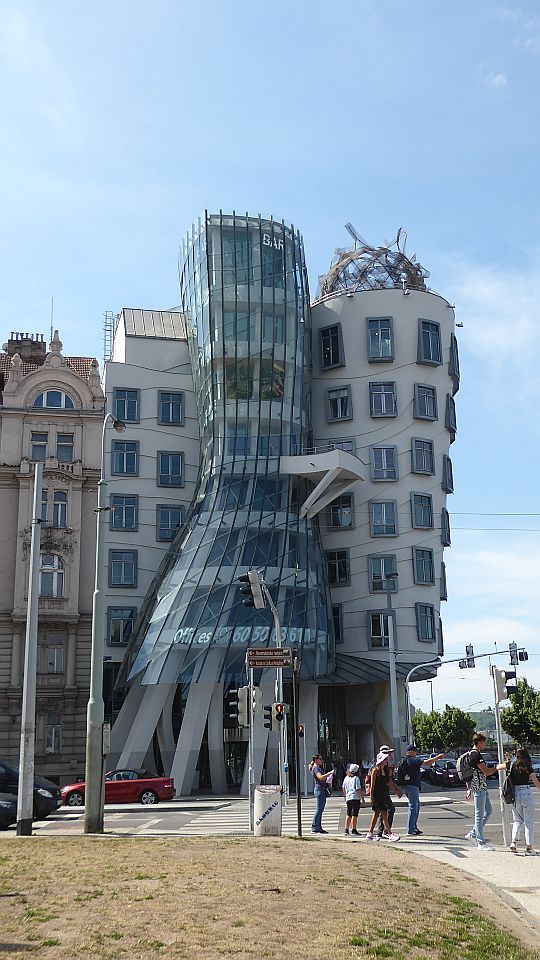 Gegenüber dem Platz an der Ecke der Straße Resslova steht Das tanzende Haus, seit 1996 ein Bau der modernen Prager Architektur. Das Gebäude stammt von den renommierten Architekten Vlado Milunić und Frank O. Gehry. Die Idee zu diesem Haus wurde von dem Tanzpaar, der in 9 Filmen tanzte, inspiriert – Fred Astair wird vom steinernen Turm symbolisiert, seine Partnerin Ginger Rogers durch den gläsernen Turm. Im Tanzenden Haus können wir die Galerie, das Restaurant und die Bar mit Aussichtsterrasse besuchen und die herrliche Rundumsicht genießen.