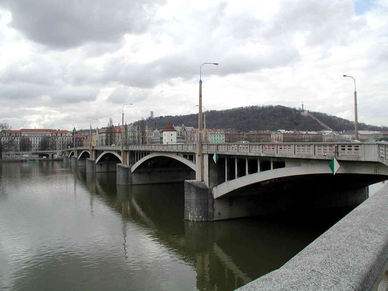 Sie wurde erbaut wegen der steigenden Notwendigkeit der besseren Anbindung des Industriestadtviertels Smíchov an die Neustadt, da die Palacký-Brücke zwischenzeitlich überlastet war.