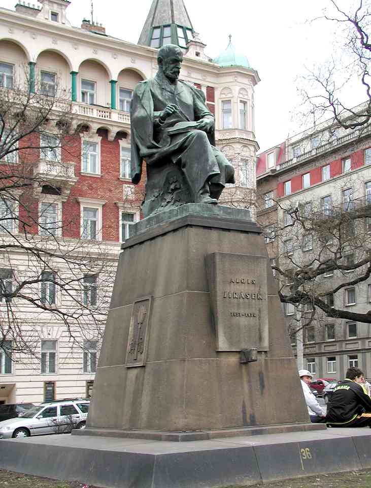 Den Namen erhielt die Brücke nach dem tschechischen Schriftsteller Alois Jirásek, der im Haus Nr. 1775 am Neustädter Ufer, dem heutigen Jirásek Platz, von 1903 bis 1933 lebte, seine Werke schrieb und auch verstarb. Eines seiner berühmten Werke sind Die alten tschechischen Sagen - Staré pověsti české. Die Jirásek-Statue auf dem Platz wurde erst 1960 aufgestellt. Biografie und Werke.