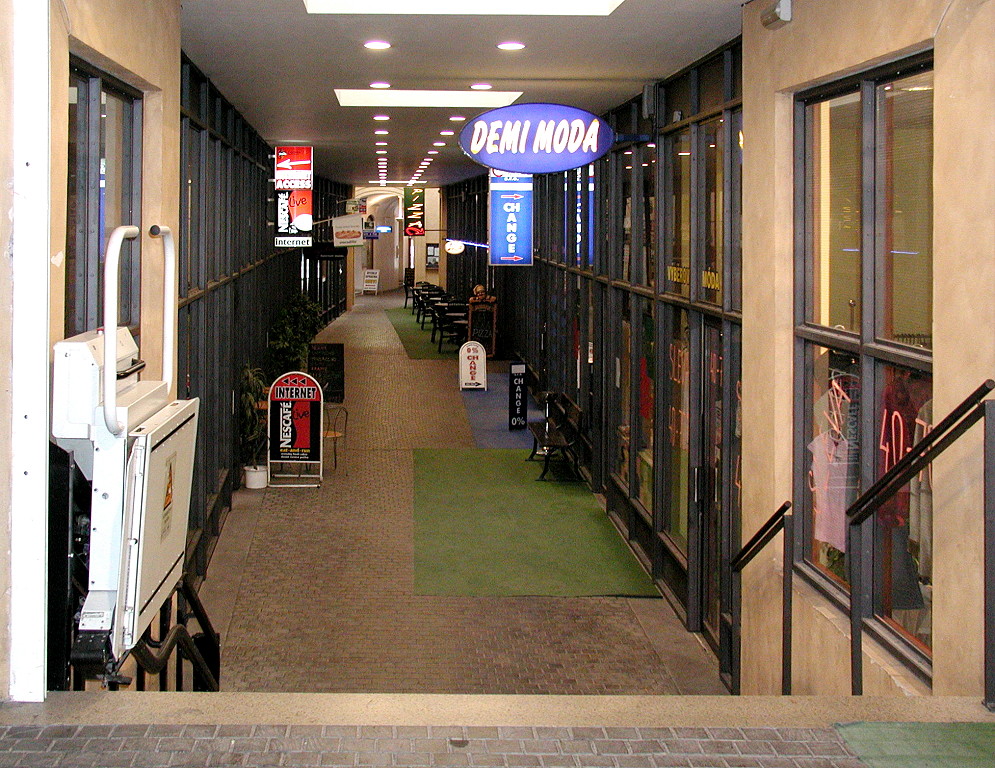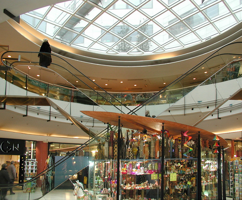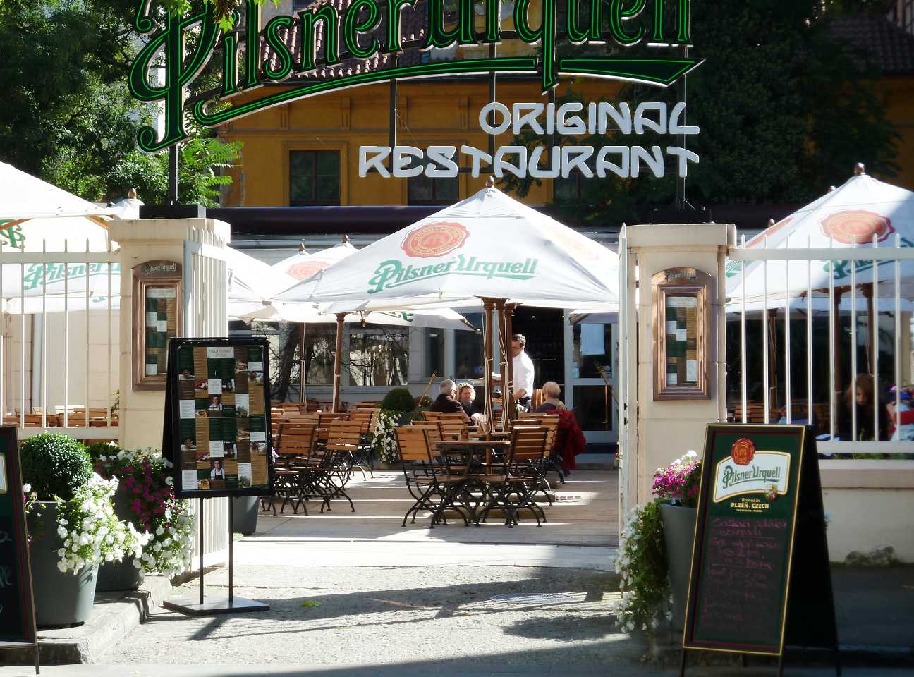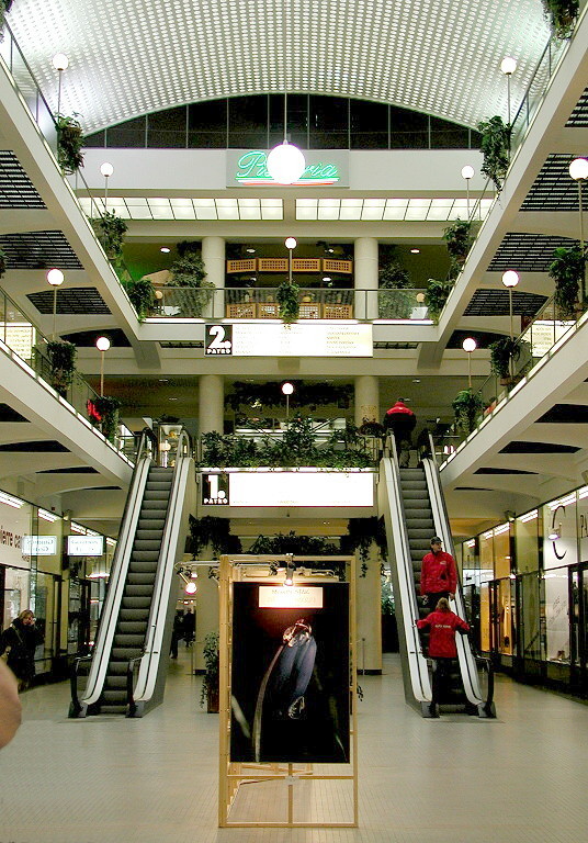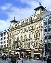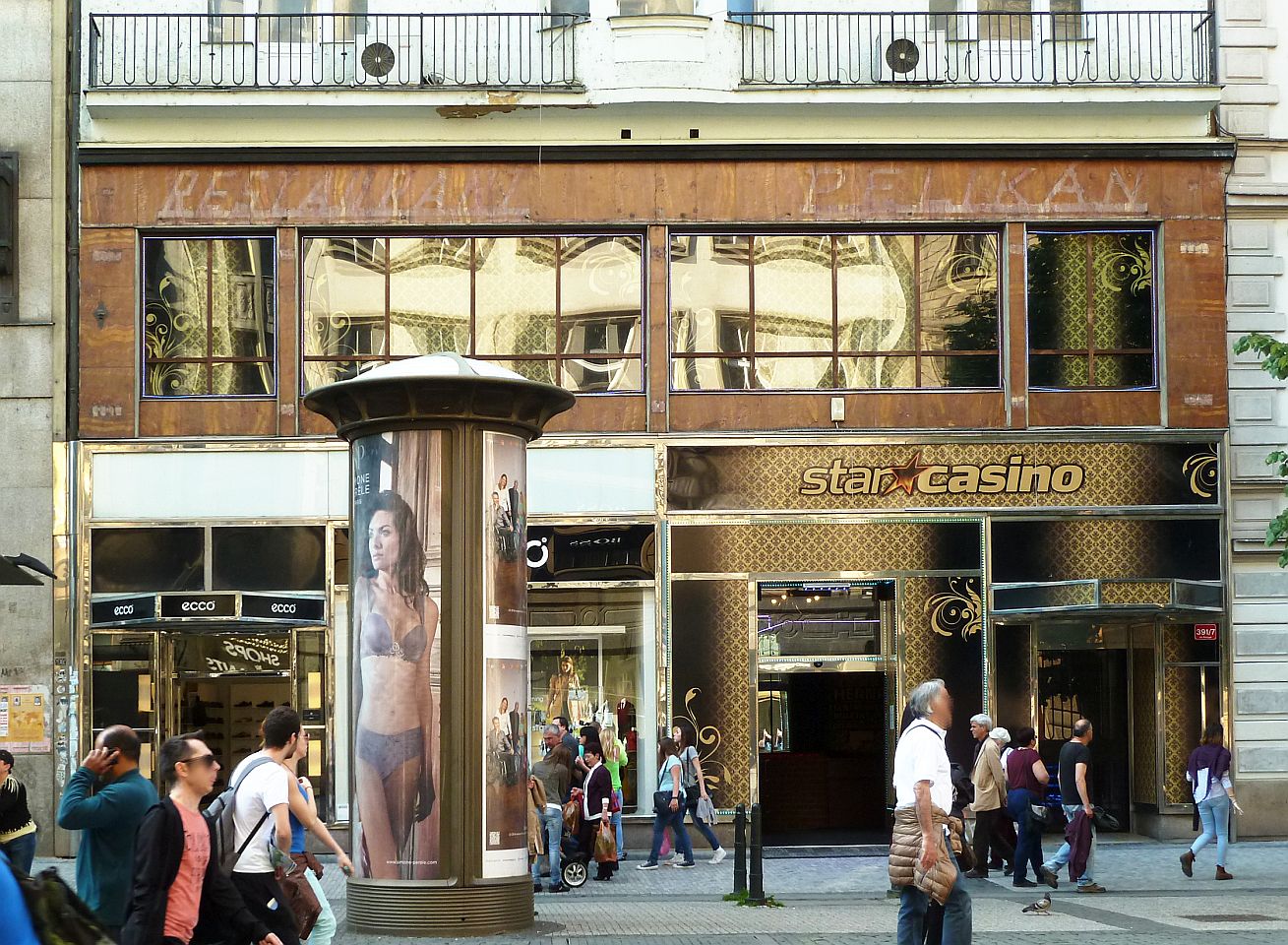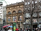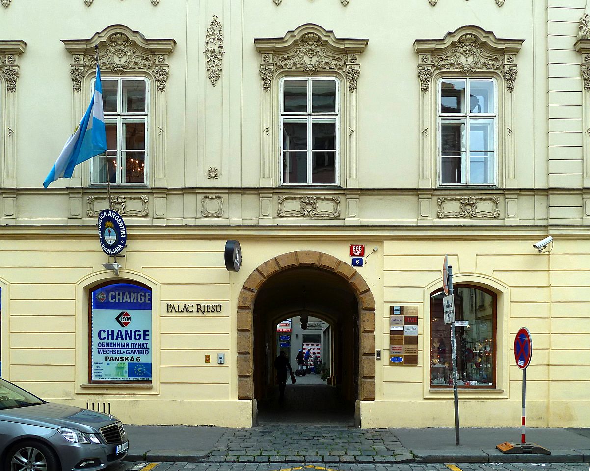 --> Die Straße, die hier nach rechts zum Platz der Republik abbiegt, trägt sinnigerweise den Namen Am Graben - Na Příkopě. Sie bildet die Grenze zwischen Altstadt und Neustadt. Es handelt sich um die Fortsetzung der Fußgängerzone des unteren Wenzelplatzes in Richtung zum Platz der Republik und Pulverturm. Hier münden die Palastpassagen von der unteren rechten Wenzelsplatz-Seite ein. Im weiteren Verlauf stehen hier historische Gebäude, die im Wandel der Zeit u.a. auch zu Einkaufszentren geworden sind. Die Straße Na Příkopě ist die Einkaufs- und Amüsiermeile im Zentrum der Stadt.Hier beginnt unser Neustadt-Spaziergang - Am Graben, Platz der Republik, Masaryk-Bahnhof.