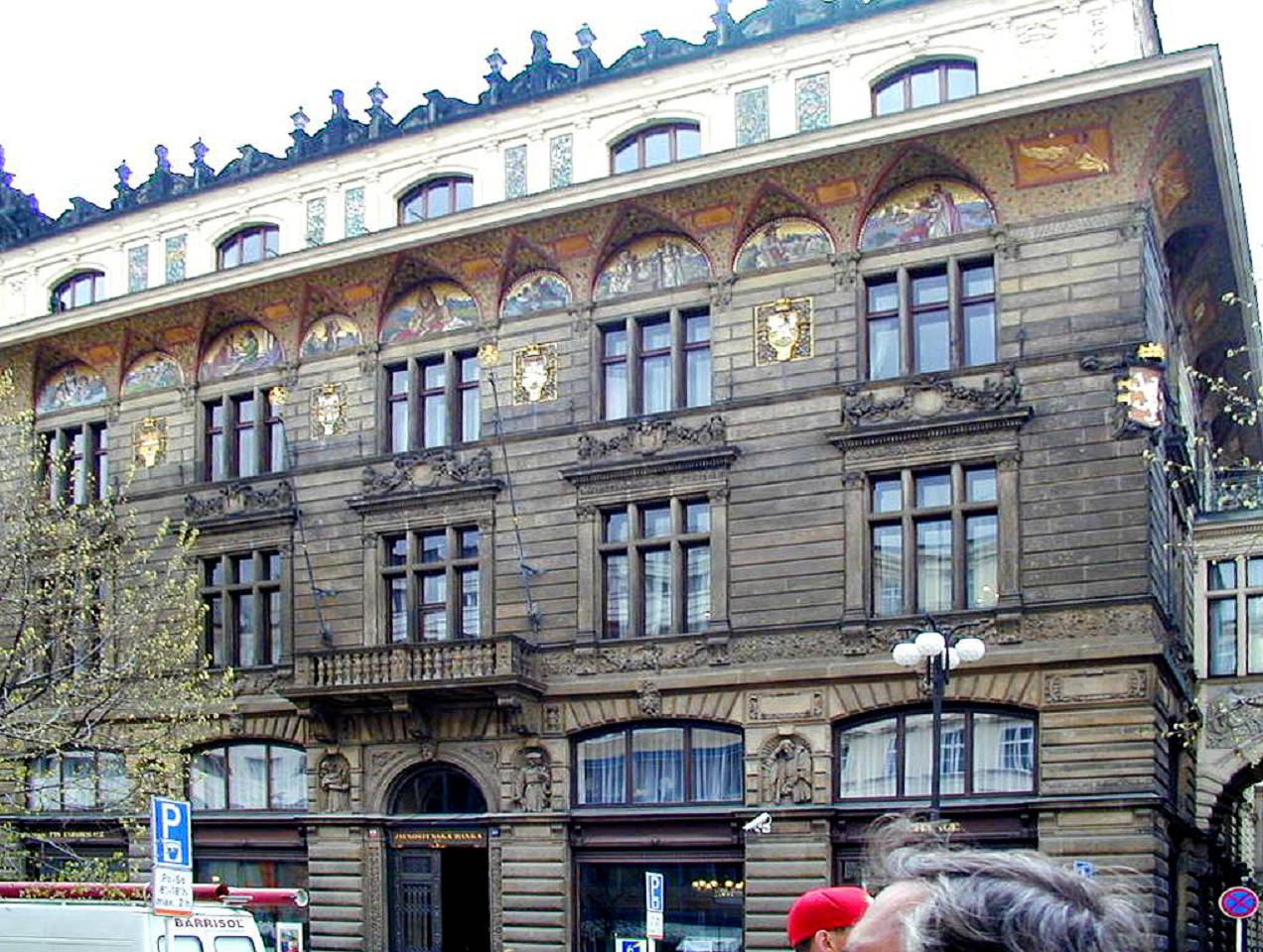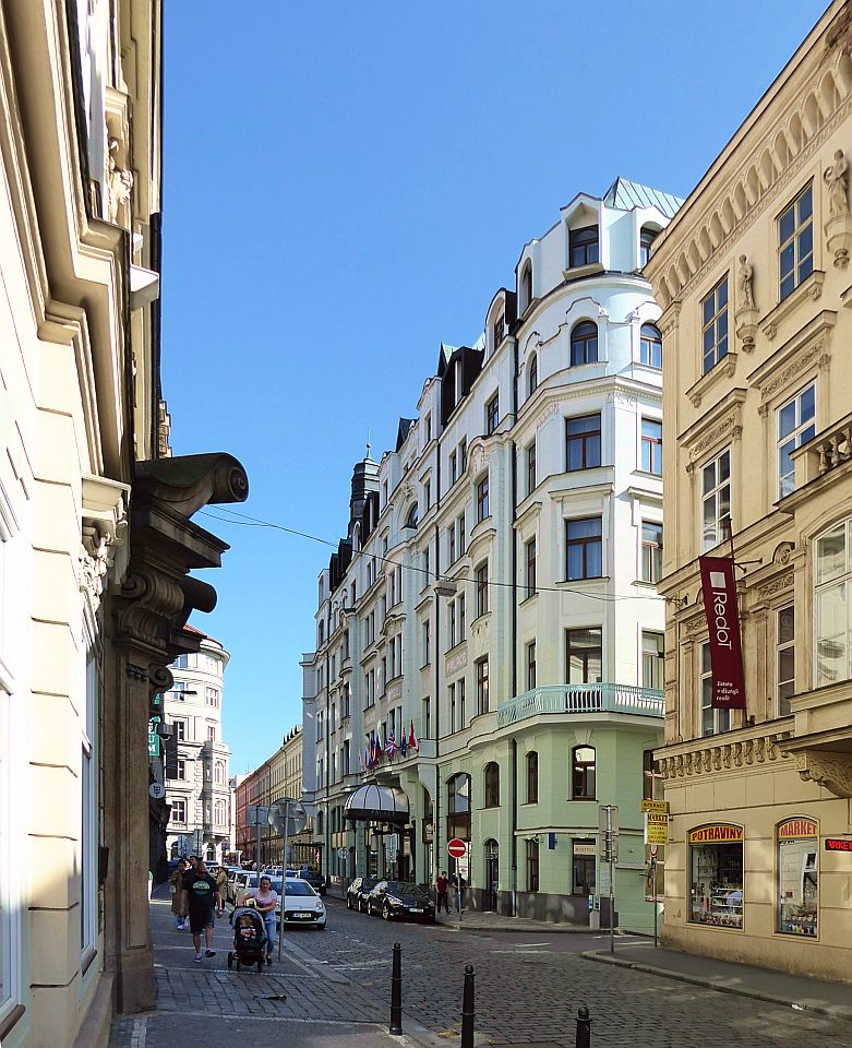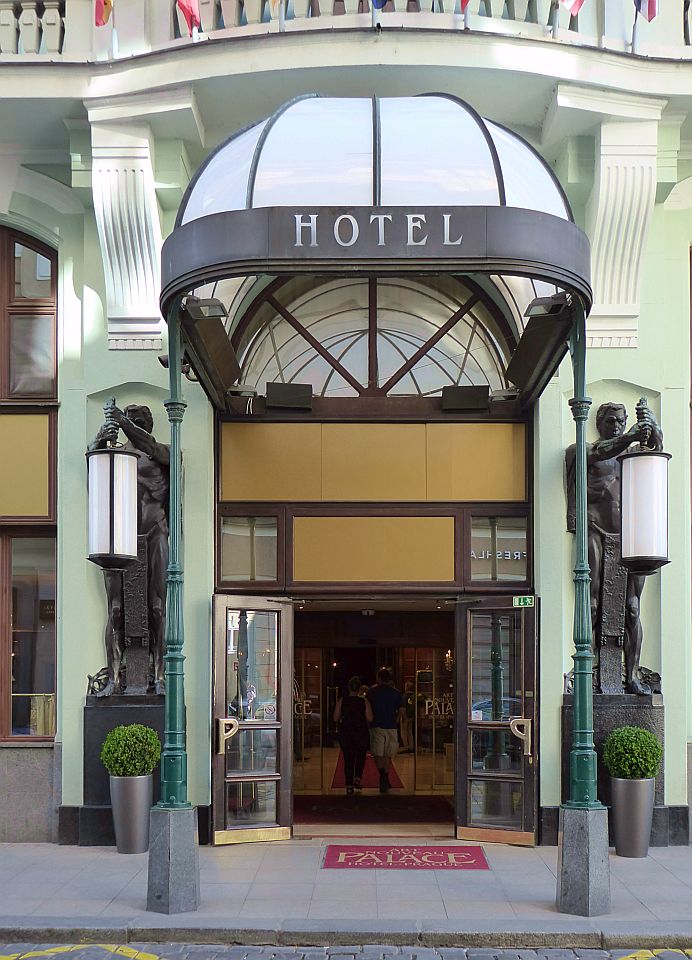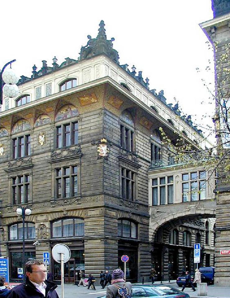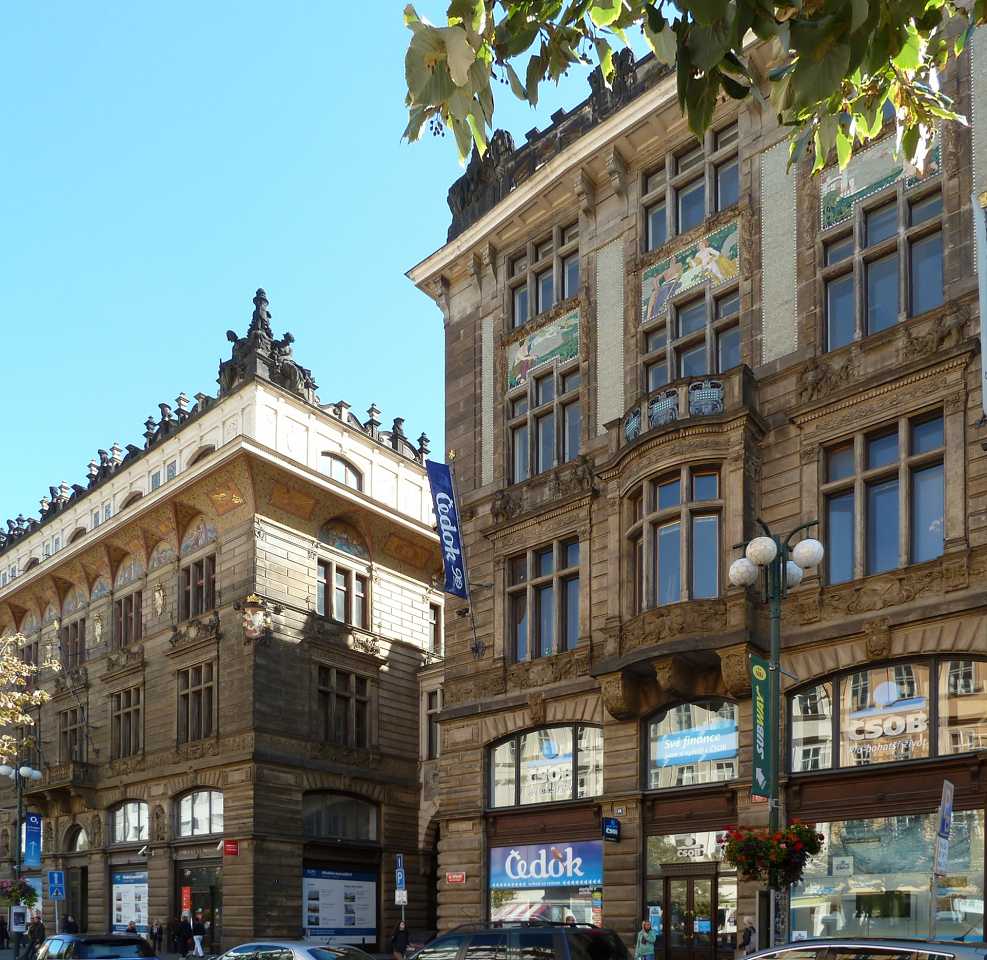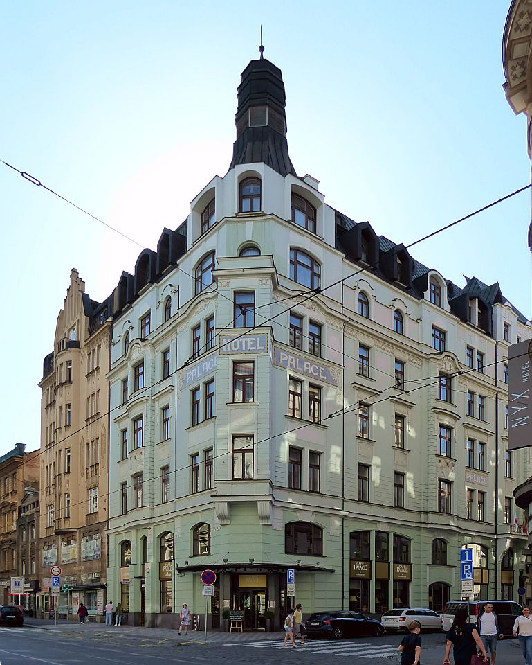 Am Ende der Straße Ecke Jindřišská steht das Art Nouveau Palace Hotel im Stil des Wiener Jugendstils erbaut. Das Haus hat eine lange und interessante Geschichte