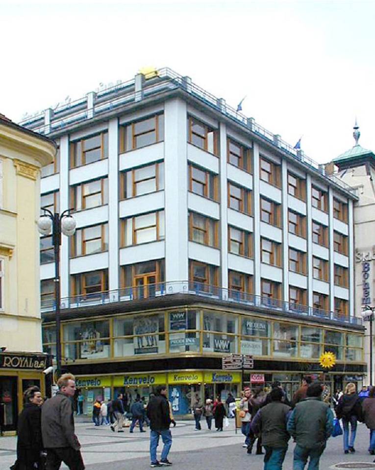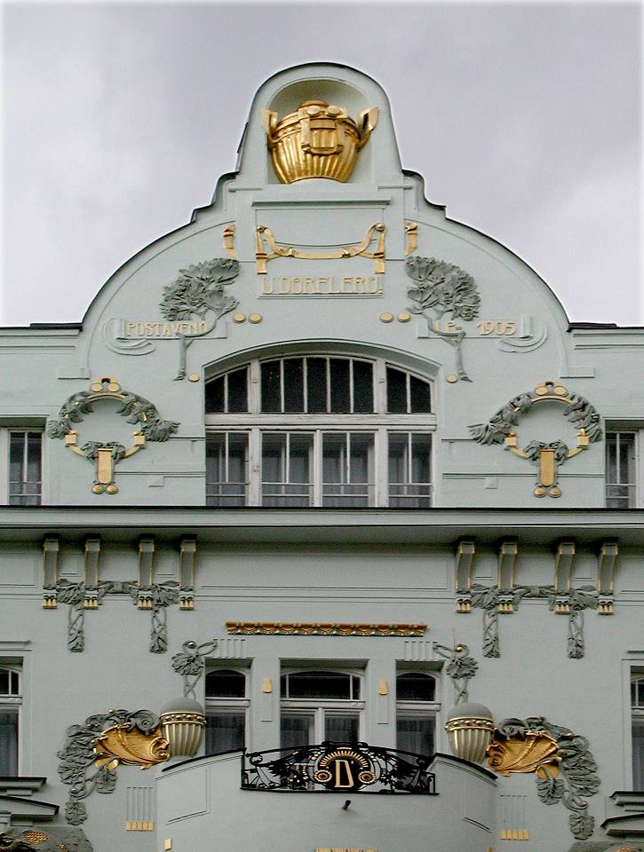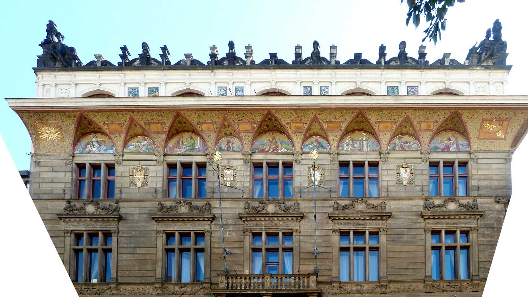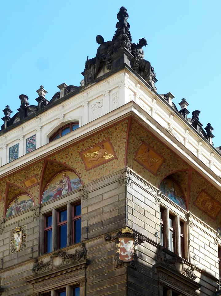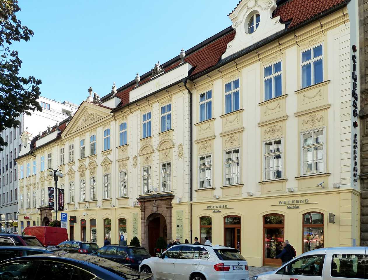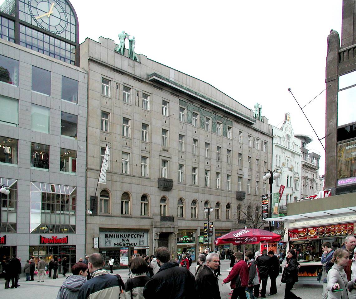 Am Ende der Straße Ecke Jindřišská steht das Art Nouveau Palace Hotel im Stil des Wiener Jugendstils erbaut. Das Haus hat eine lange und interessante Geschichte