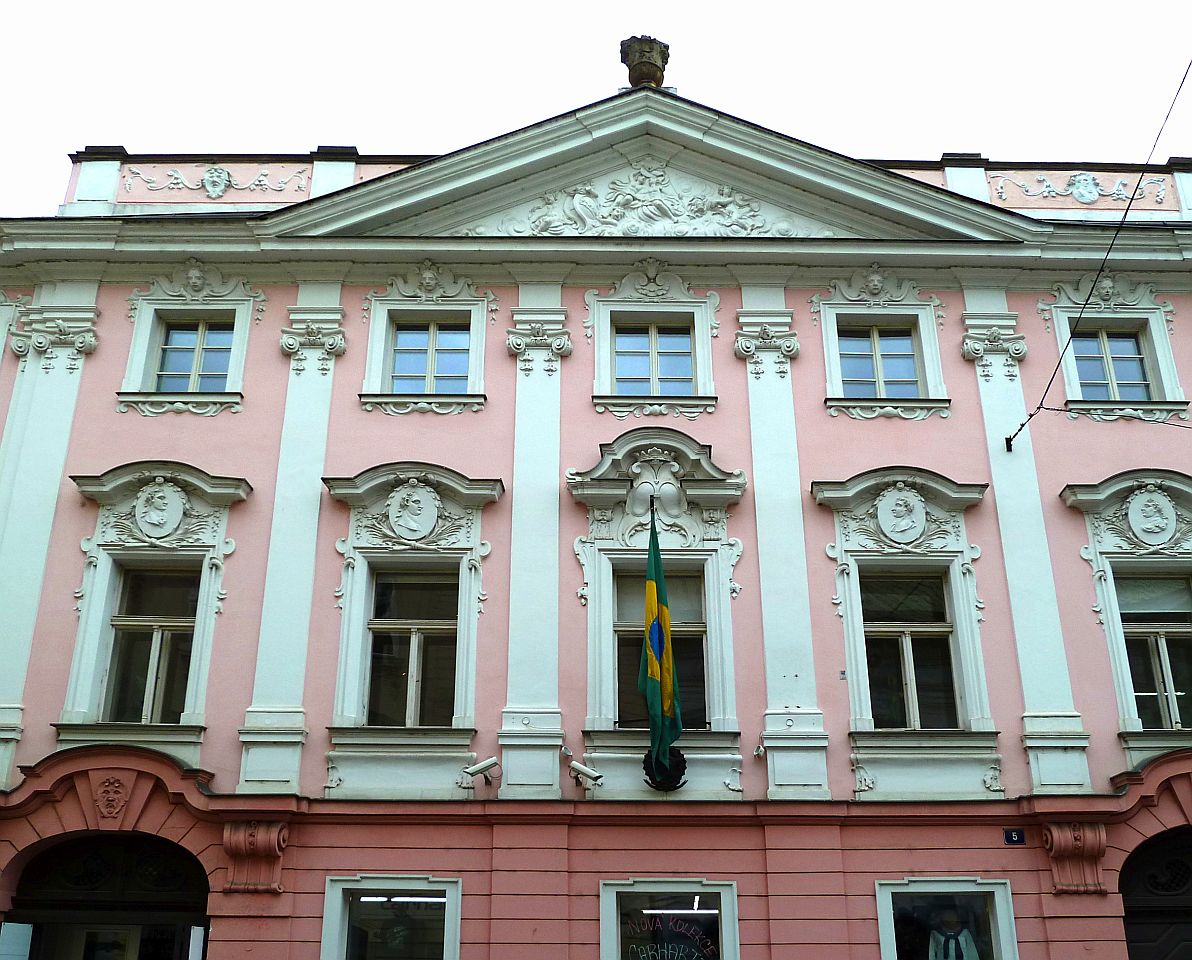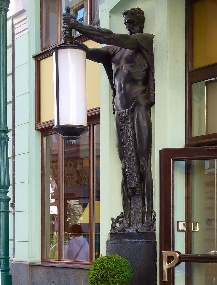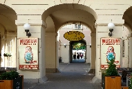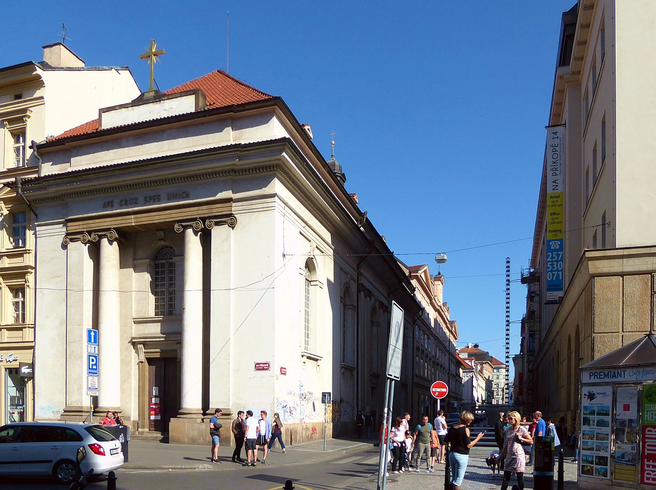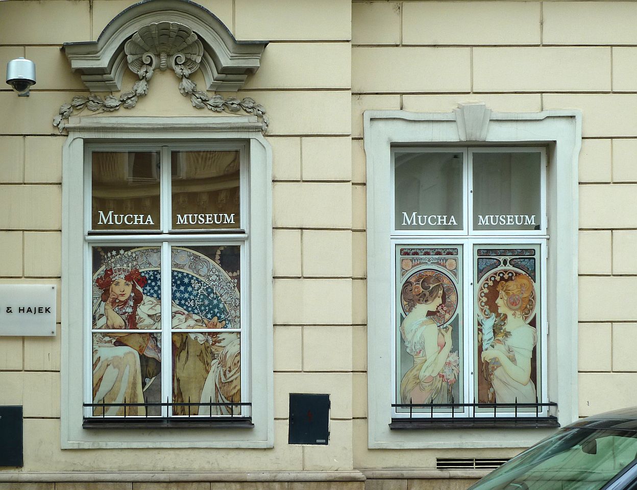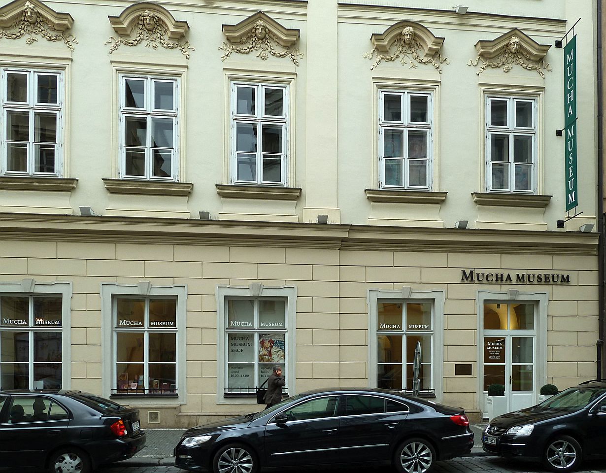 Auf unserem Spaziergang kommen wir zu der Heiligkreuz-Kirche - Kostel Svatého kříže, an der wir nach rechts einen Abstecher durch die Seitenstraße Panská zum Mucha-Museum einlegen. Hier wird das Leben und die Werke des bedeutendsten tschechischen Plakatkünstlers, Grafikers, Illustrators, Malers, Amateurfotografen und Kunstgewerbler, der als einer der herausragenden Repräsentanten des Jugendstils gilt, Alfons Mucha, dargestellt. Seine Werke können wir auch auf der Kunstkopie.de-Seite bewundern und erwerben. Sein Hauptwerk Das Slawische Epos ist auf der Wikipedia-Seite dargestellt.