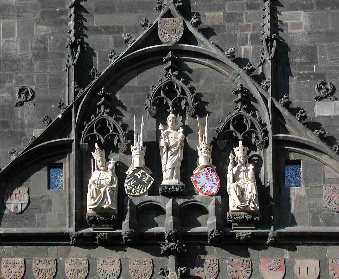 Der Grundbaustein wurde am 9.7.1357 vom Karl IV. gelegt. Die Arbeiten wurden der Bauhütte Peter Parler übertragen, die ebenfalls die St. Veit-Kathedrale auf der Burg errichtete.