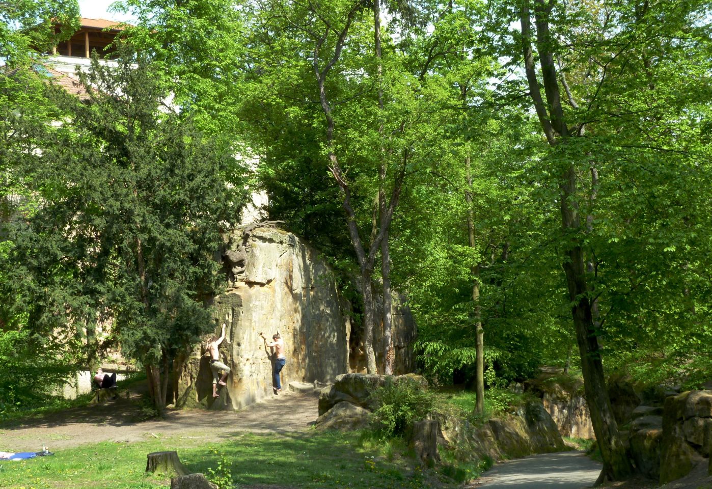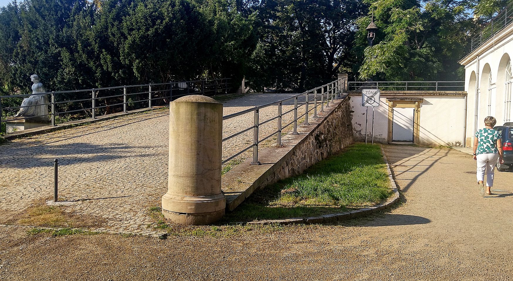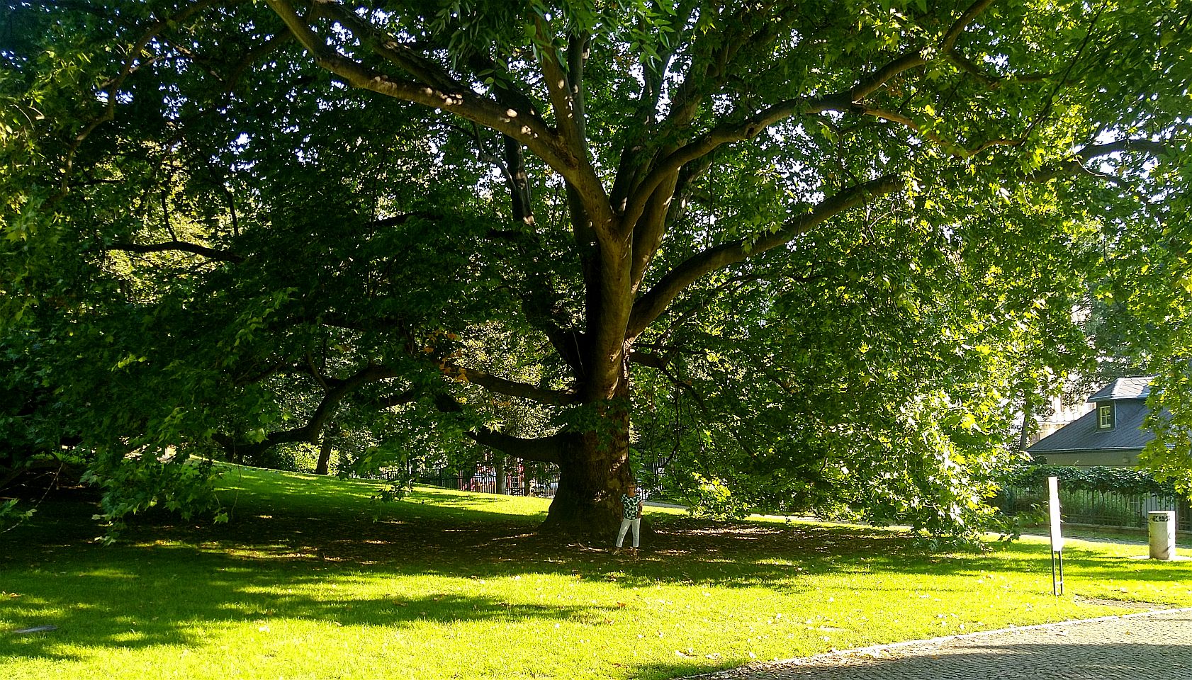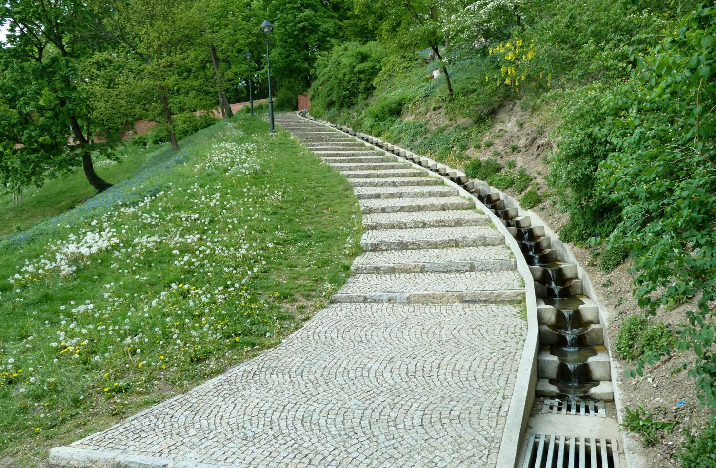 Dann den Petřín-Hügel hoch fahren - hier galt früher der Umsteige-Fahrschein der Straßenbahn, jetzt leider nicht mehr. Oben angelangt, geht es rechts zum Aussichtsturm und links zum Rosengarten und an dem Planetarium vorbei in die Straße Šermířská, wo sich gleich links der Eingang zum Kinsky-Garten befindet. Von hier aus gehen wir bequem den Hang herunter.