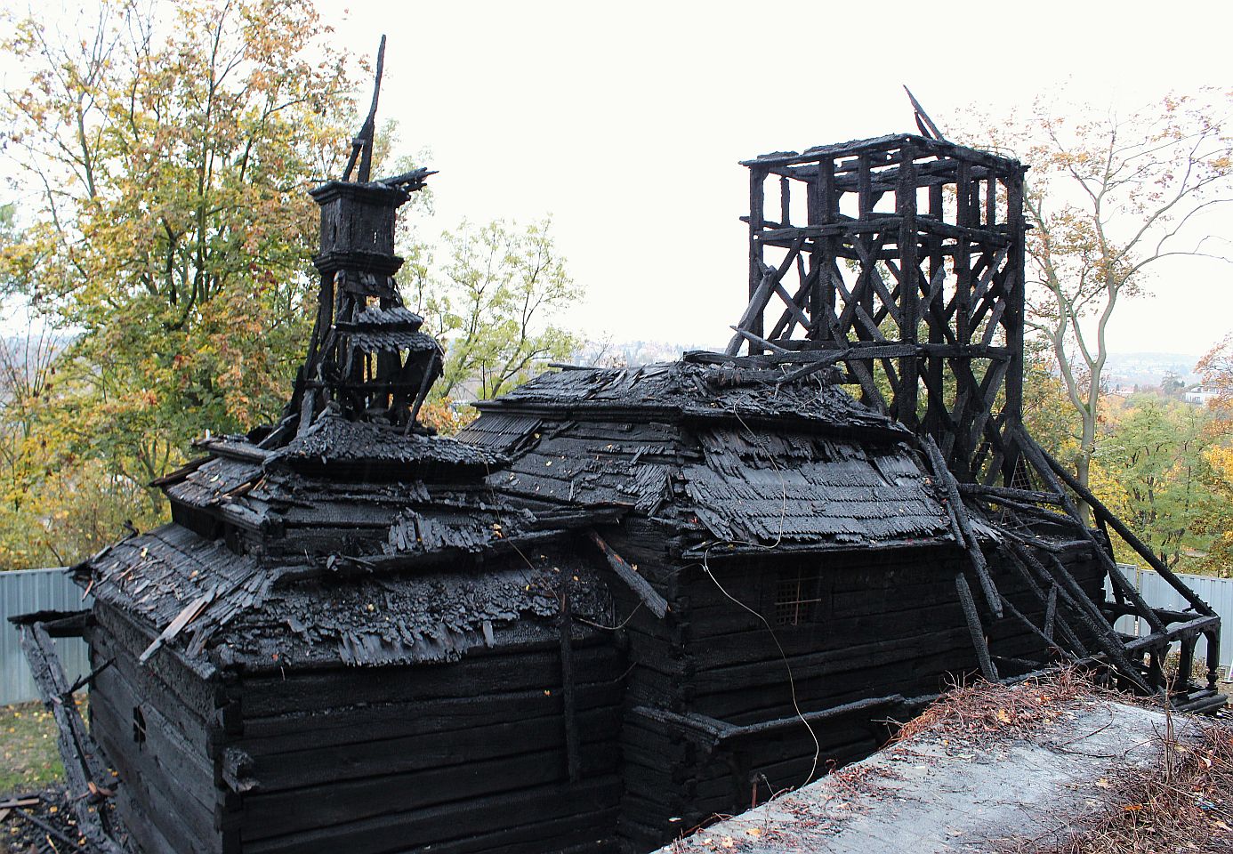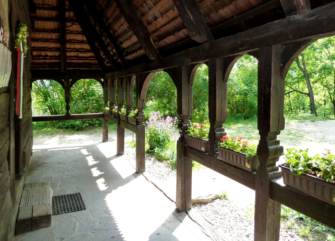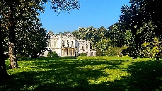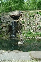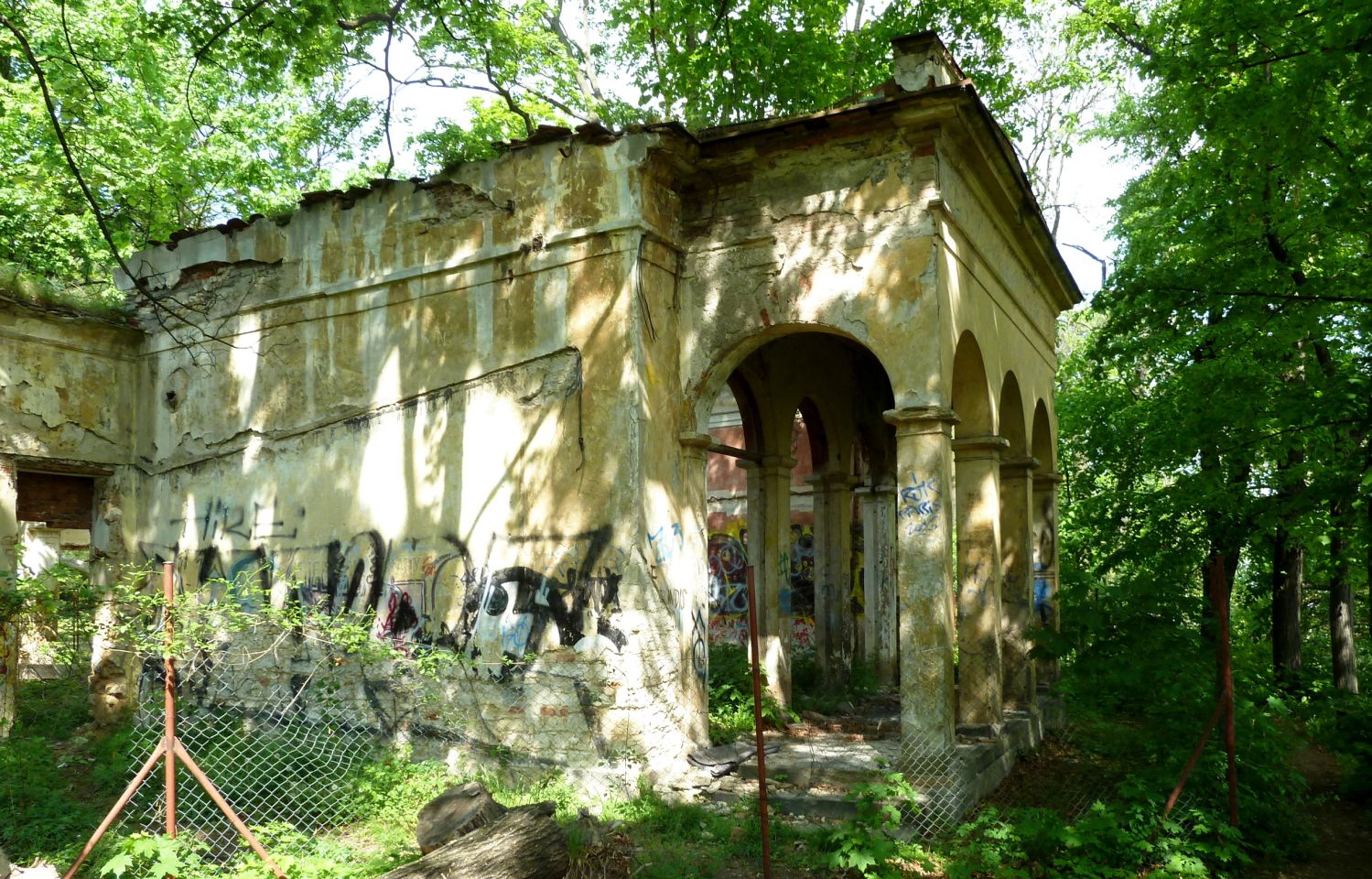 Auf dem Weg den Hang herunter kommen wir an einer Ruine eines früheren Ausflufsrestaurants und eines kleinen Anwesens, sowie an einer Holzkirche des hl. Michael vorbei, die 1927 aus der Karpatenukraine, die damals noch zur Tschechoslowakei gehörte, hierher übersiedelt wurde. Leider wurde die Holzkirche im Oktober 2020 Opfer der Flammen. Prager Magistrat plant eine Rekonstruktion. Weiter geht es vorbei, an kleinen Seen mit Wasserfall, an einem Neptunbrunnen und ganz unten zum Sommerschlößchen der Kinskys.