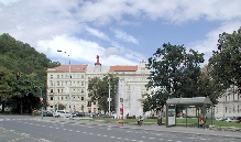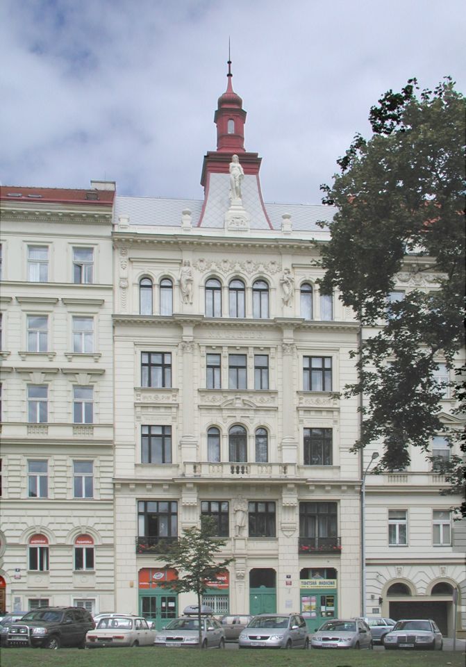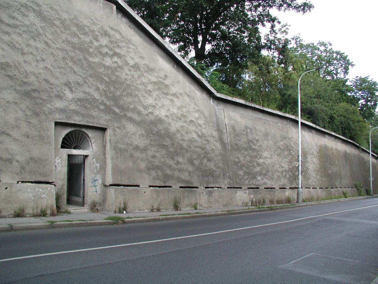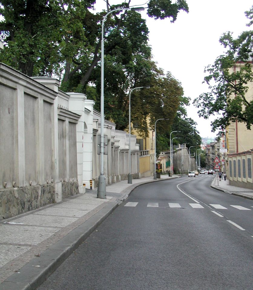 Vor der Hunger-Mauer - Hladová zed´, im Stadteil Smíchov, erstreckt sich der Kinski-Garten - Kinského zahrada gegen Süd-West bis zum benachbarten Grundstück mit der Schule für Gehörgeschädigte dem sich das Klosterareal der Benediktinerinnen von St.Gabriel anschließt.