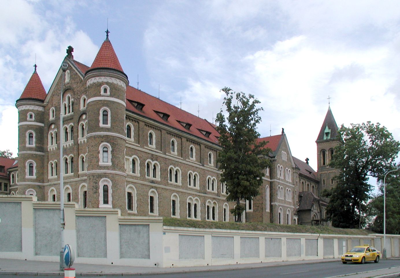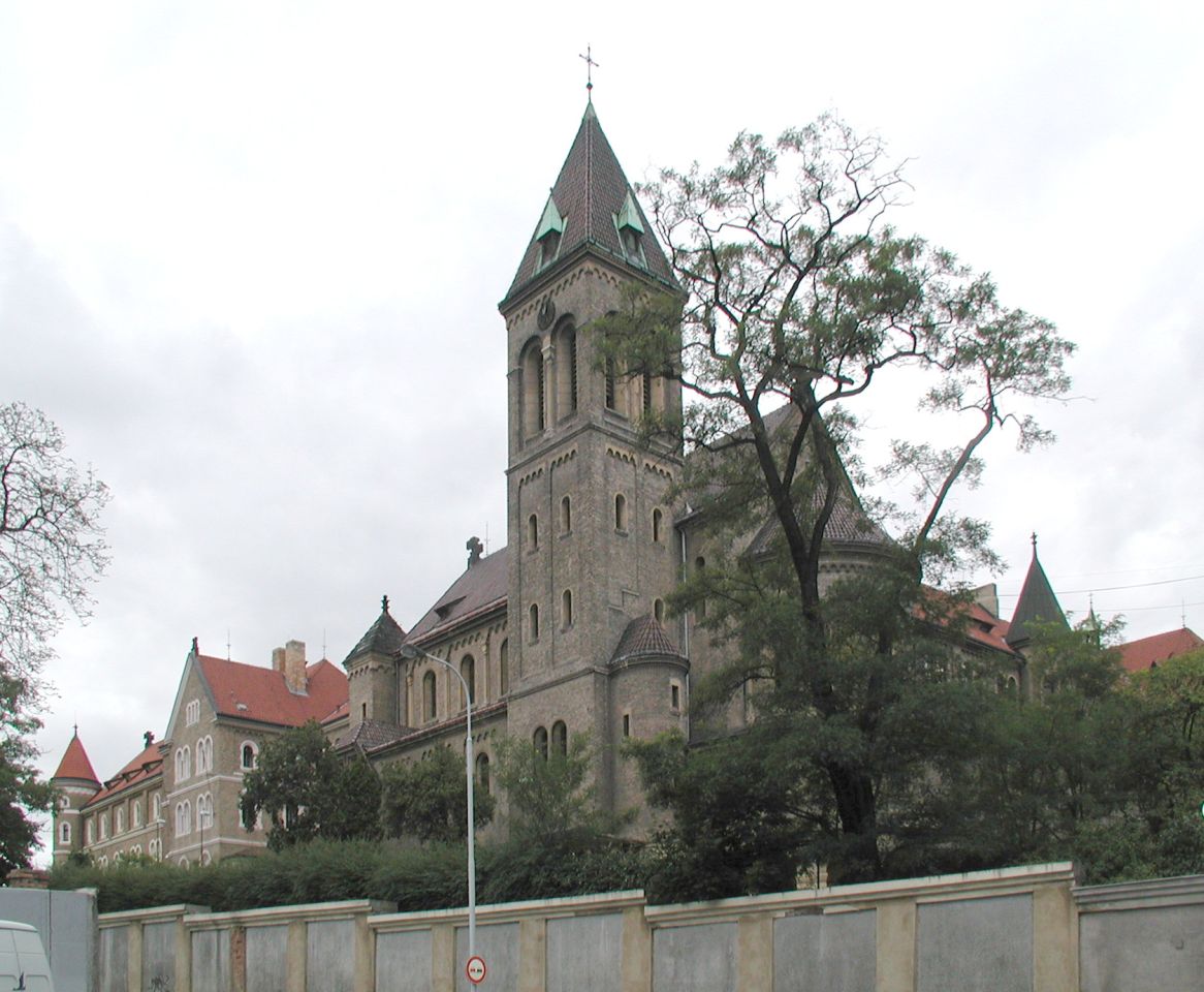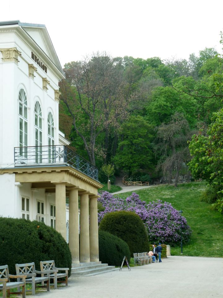 Am Schlößchen können wir durch einen kleinen Ausgang in der Gartenmauer einen Abstecher zum früheren Hlg.Gabriel-Kloster unternehmen. Anschließend zurück in den Garten und zum Haupteingang und zur Straßenbahn am Kinský-Platz gehen.