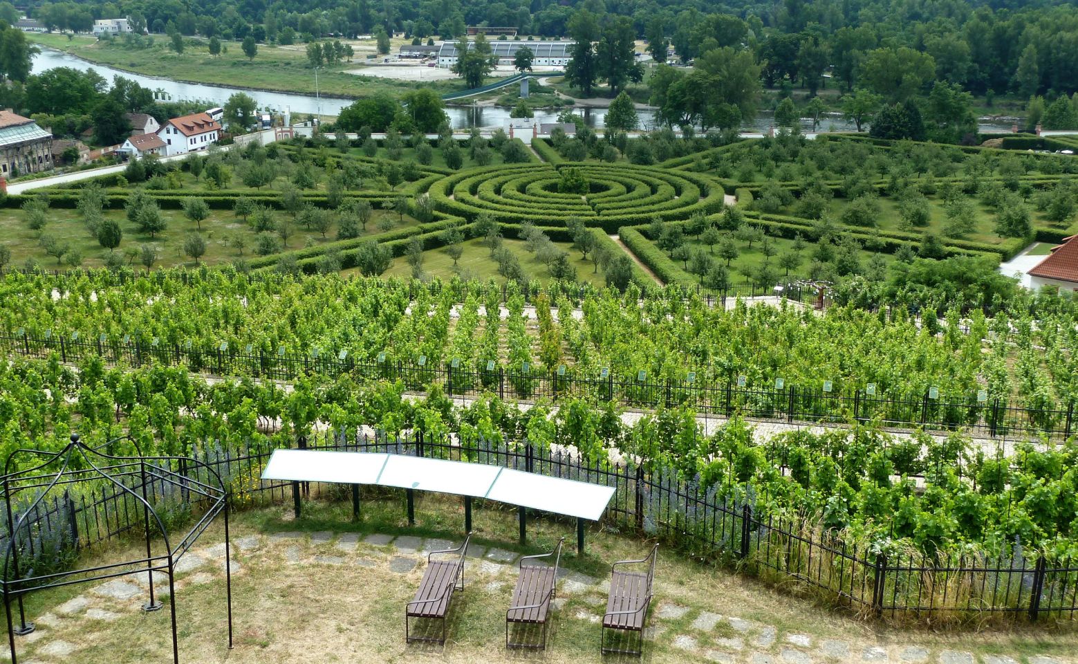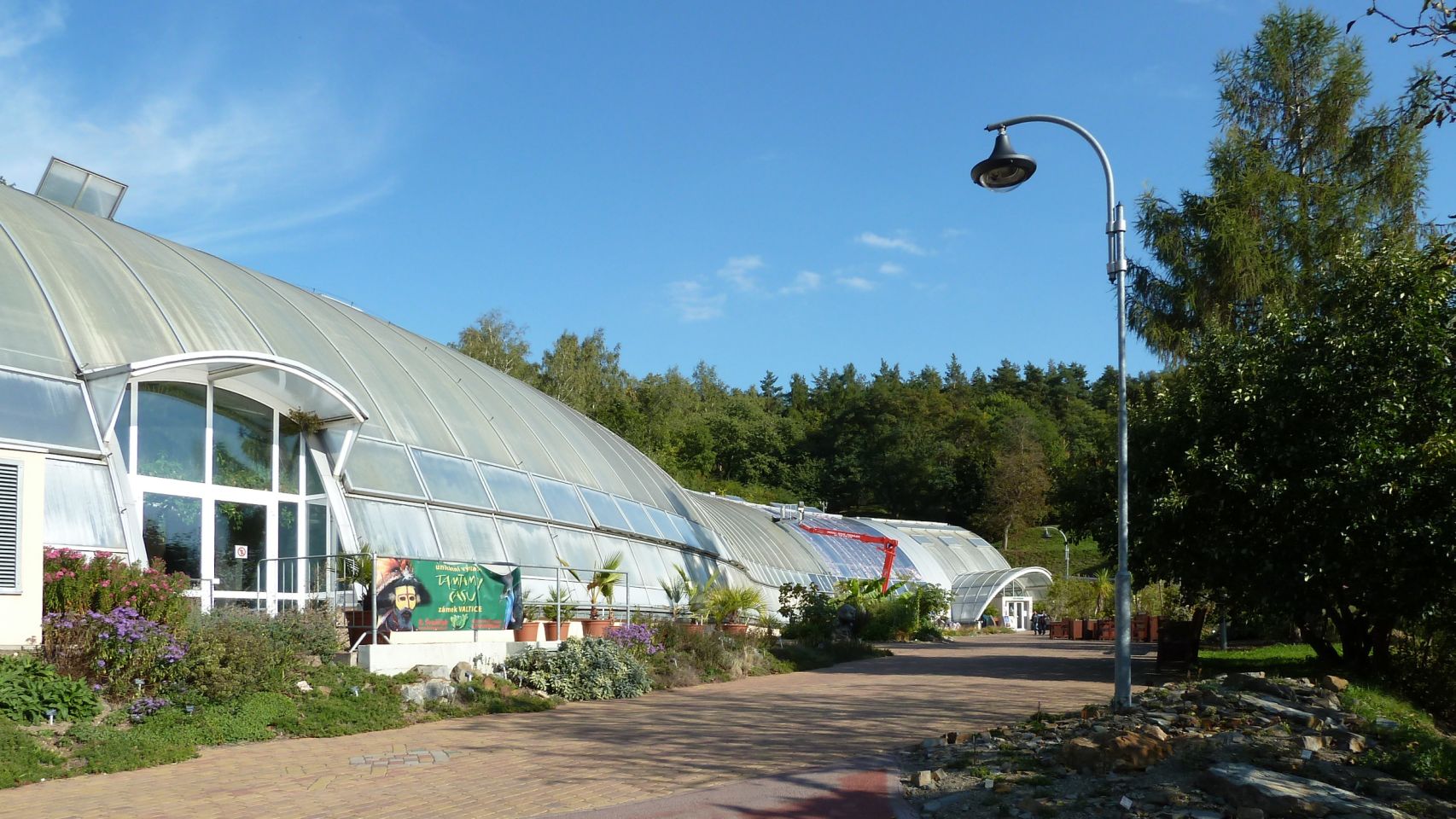 Im unteren Bereich angekommen erreicht man den südlichen Eingang, bzw. Ausgang zu der Straße Nádvorní. Zur Besichtigung des Gewächshauses Fata Morgana geht es rechts etwa 200-300 m.