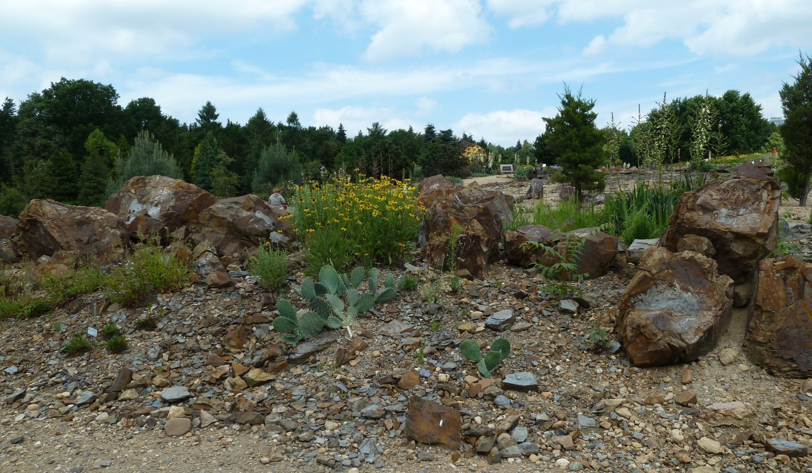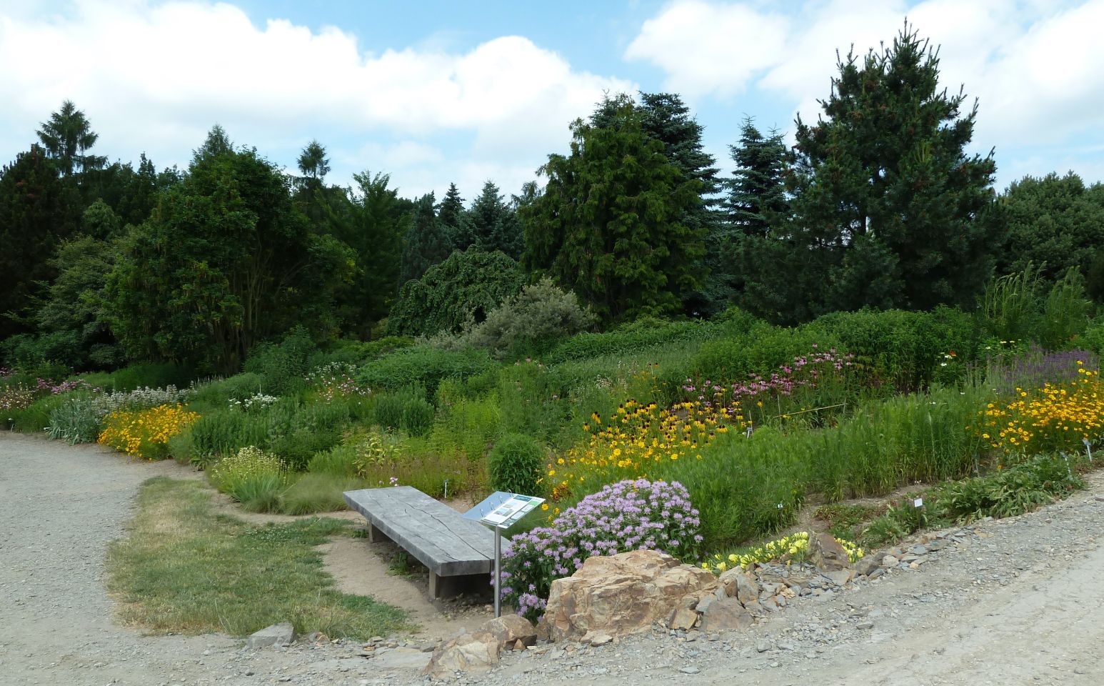 Der Garten ist aufgeteilt in verschiedene Bereiche mit geografisch spezifischer Bepflanzung, z.B. Japanischer Garten, Nordamerikanische Halbwüste, Prärie und Waldbiotope, Waldbiotope Ostasiens, Mittelmeer-Flora, Pfingstrosen-Garten und andere.