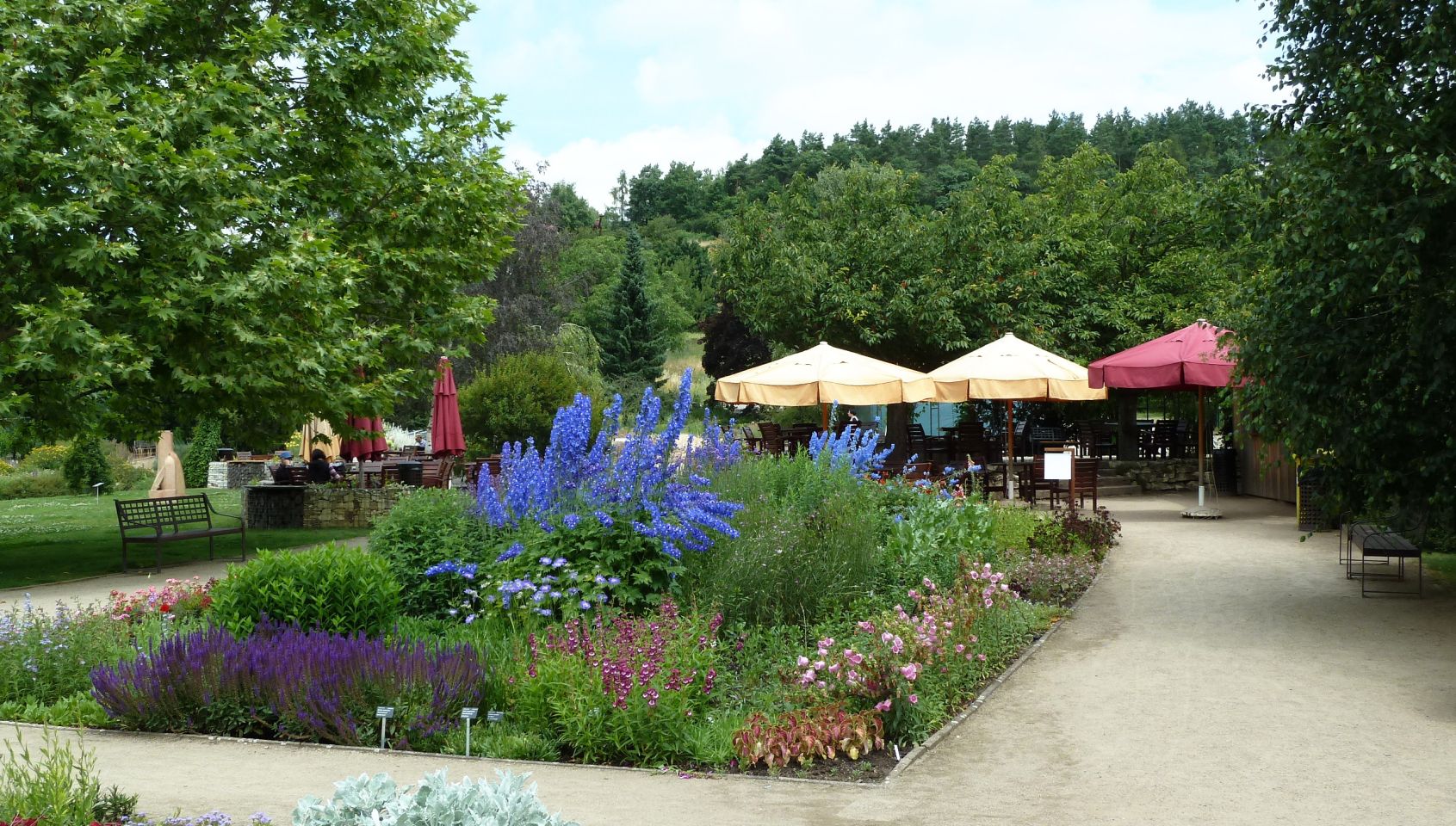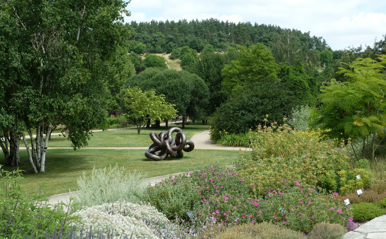 Der Garten wird auch zu Ausstellungen zeitgenössischer Bildhauer, deren Arbeiten im ganzen Areal verstreut aufgestellt werden, genutzt.