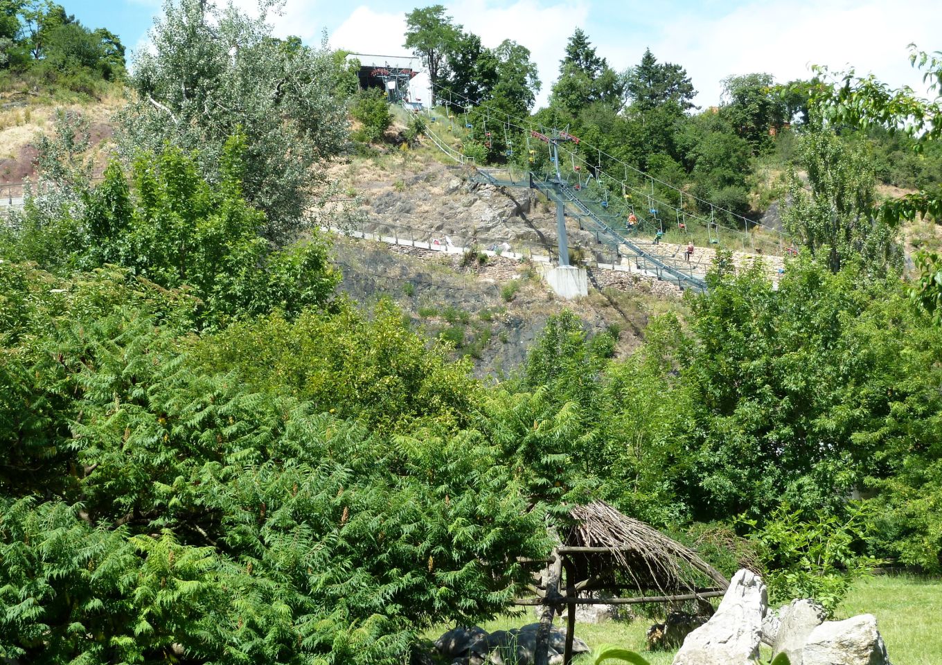 Um die Höhenunterschiede bequemer überwinden zu können, ist hier eine Sessel-Seilbahn in Betrieb. Auch ein Aussichtszug auf Rädern hilft bei aufkommender Müdigkeit.