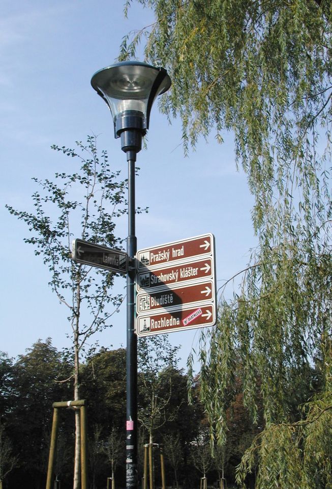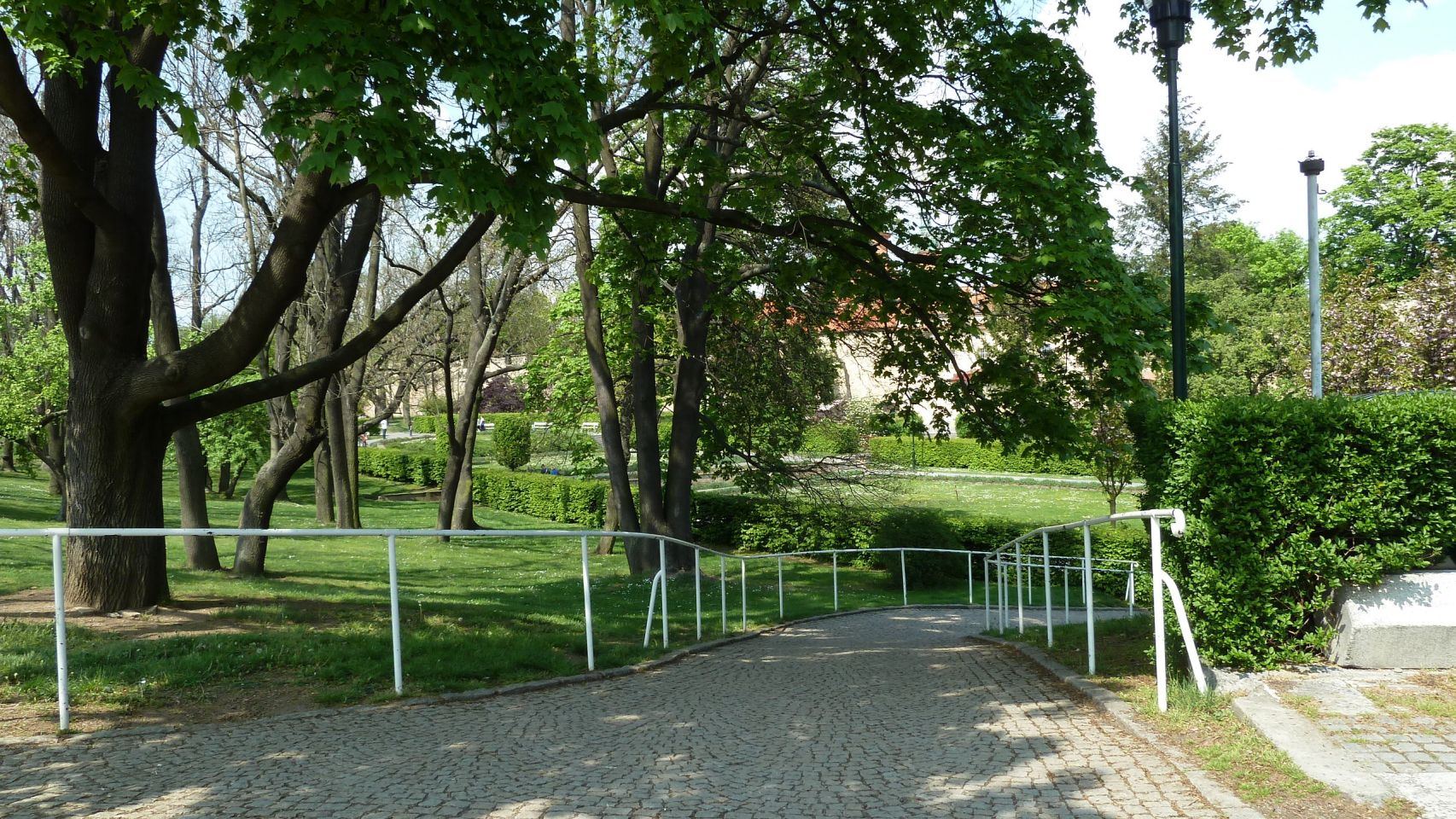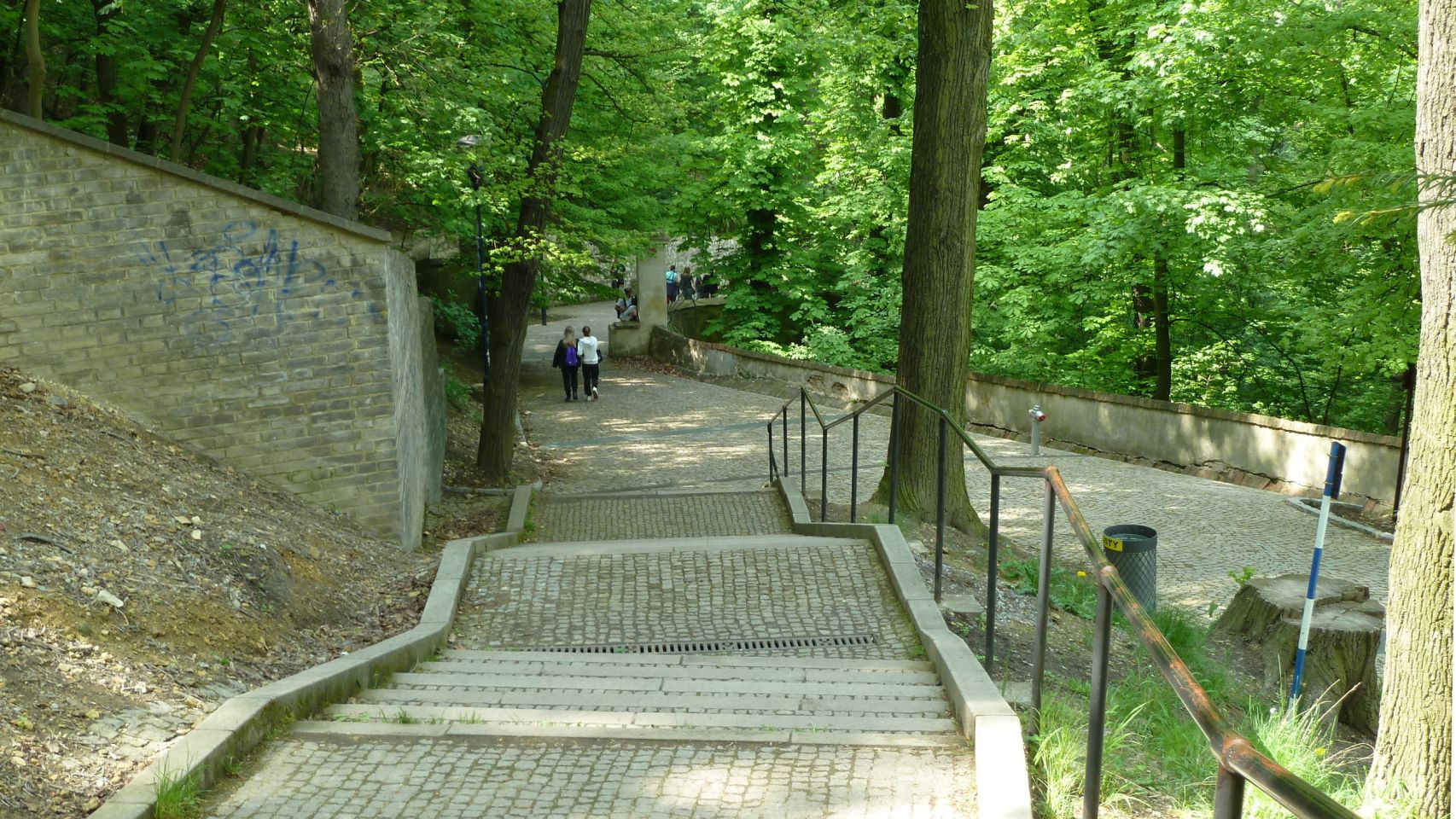 zuerst rechts von der Bergstation außerhalb der Mauer zum Aussichtsturm und dann zurück und weiter zum Rosengarten, dem Štefanik-Planetarium und weiter bis zum Eingang des Kinský-Gartens im südlichen Teil Petříns, wenn wir einen Spaziergang zum Kinský-Garten unternehmen wollen,
