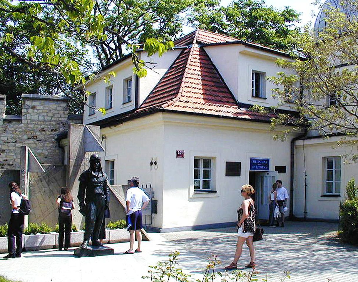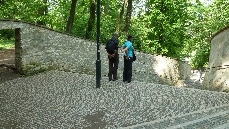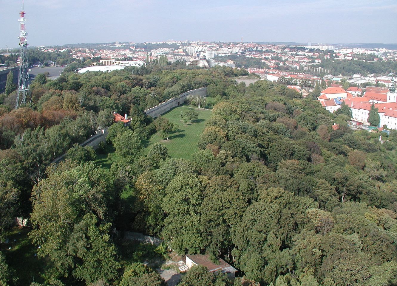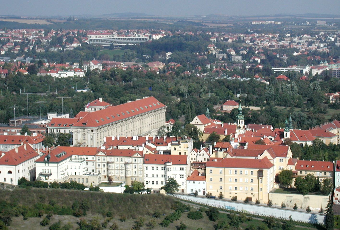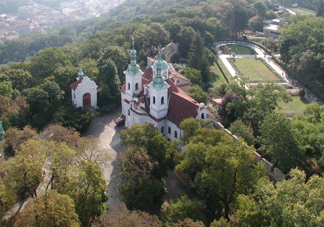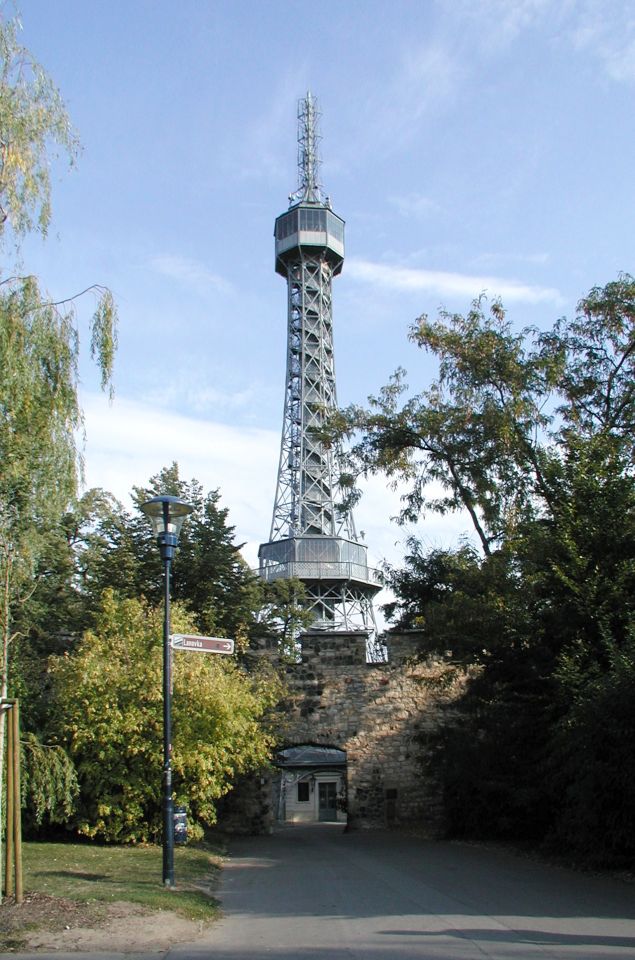 zuerst links von der Bergstation zum Planetarium und Rosengarten und dann zurück und entlang der Hungermauer, hinter der man die St.Laurentius-Kirche sieht, kommen zu einem Durchgang durch die Mauer und stehen direkt vor dem Aussichtsturm, wenn wir einen Spaziergang zum Strahov-Kloster und zur Burg unternehmen wollen,