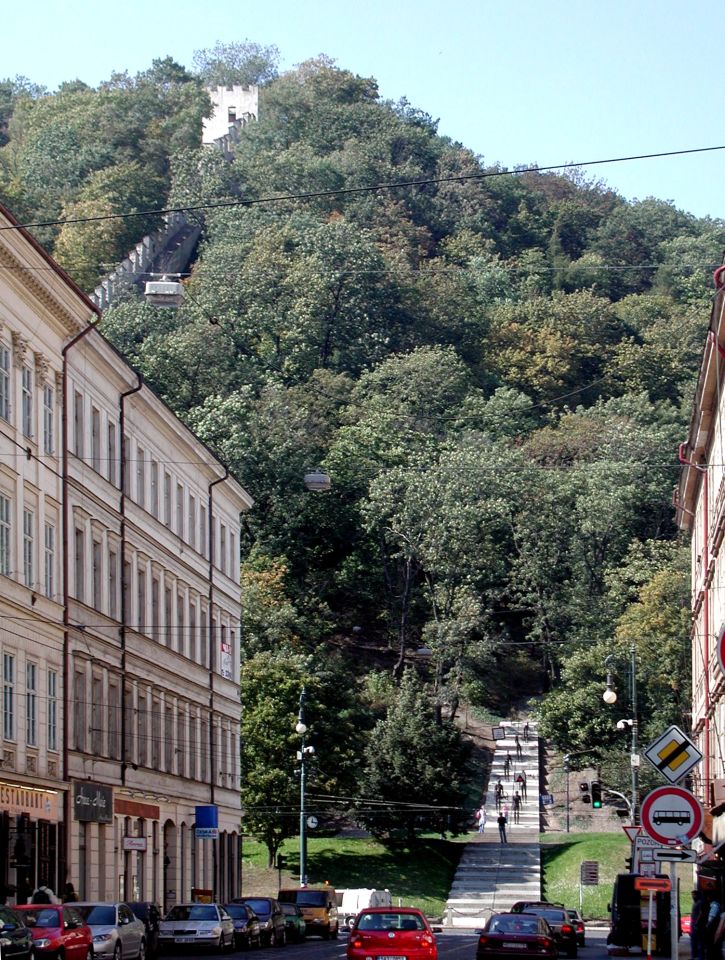 Eine schnelle (klassische) Besichtigung des Peřín-Hügels erfolgt mit der Stand-Seilbahn. Die Talstation befindet sich ein paar Schritte von der Straßenbahnstation Újezd in der gleichnamigen Straße im Stadteil Kleinseite. In die Seilbahn kann man mit dem Straßenbahn-Fahrschein umsteigen. Hierher gelangt man z.B. von der Straßenbahnhaltestelle Václavské náměstí, in der Mitte des Wenzelplatzes.