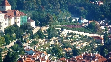 Die Seilbahn hält an der Mittelstation Nebozízek, einem herrlich gelegenen Ausflugsrestaurant. Für eine kleine Zwischenrast mit einer sehr schönen Aussicht hervorragend geeignet.