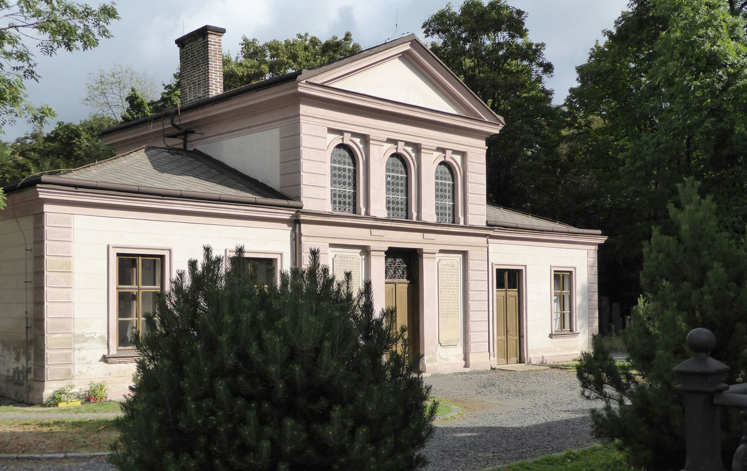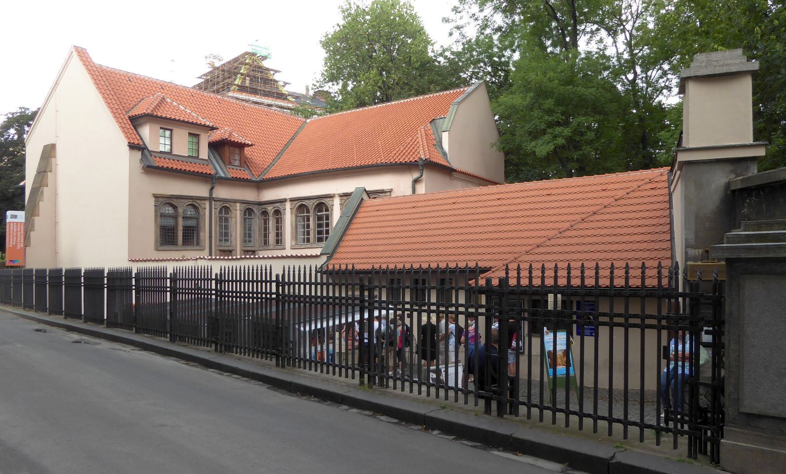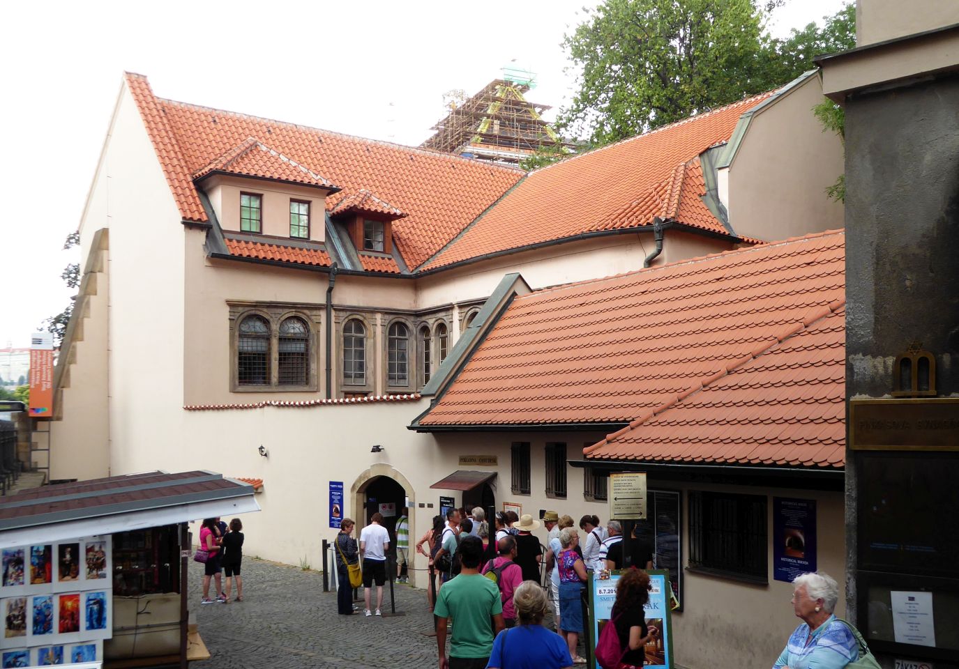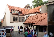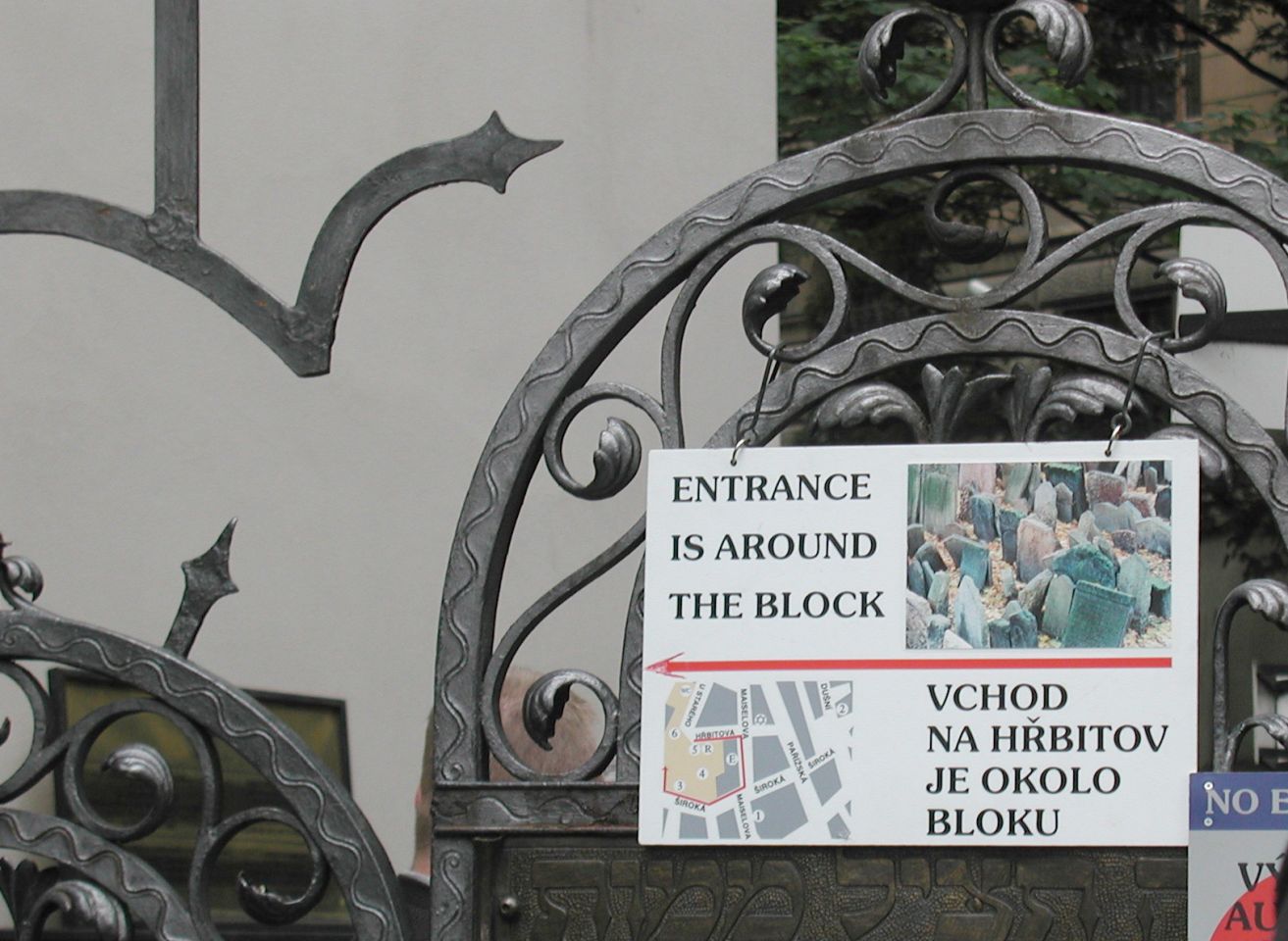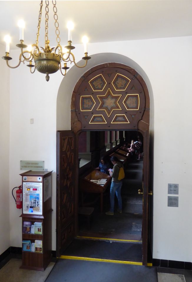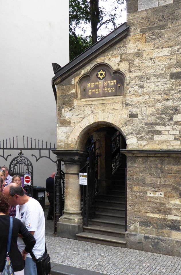 Durch die Pařížská gehen wir bis zur der Altneu-Synagoge, hier biegen wir links ein und gehen bis zum Alten jüdischen Friedhof, wo wir an der Kasse in der Klaus-Synagoge die Besichtigung-Tickets für alle oder nur die ausgesuchten Objekte kaufen. Hier ist zwar die Zeremonie-Halle des Friedhofs aber kein Eingang.