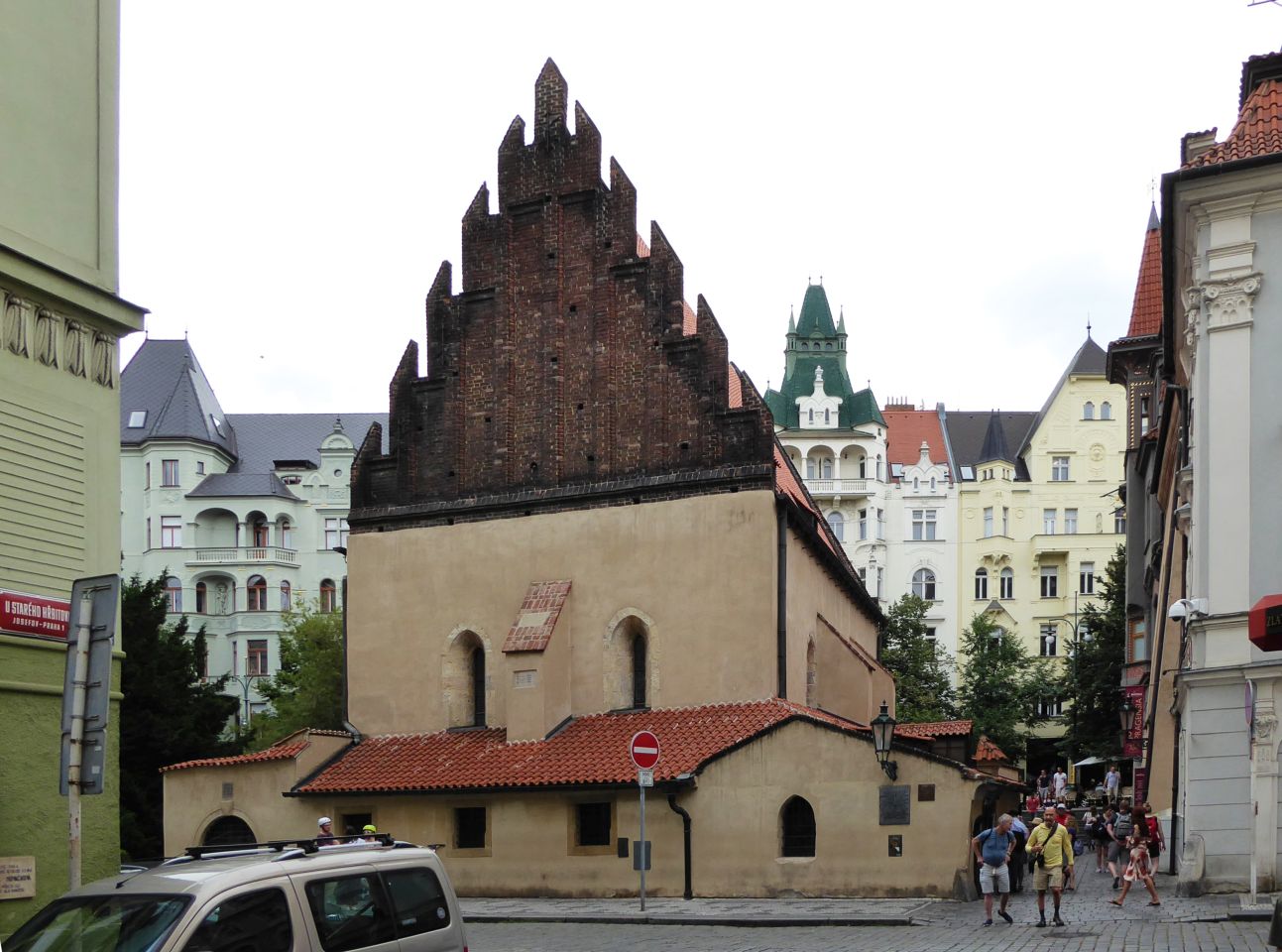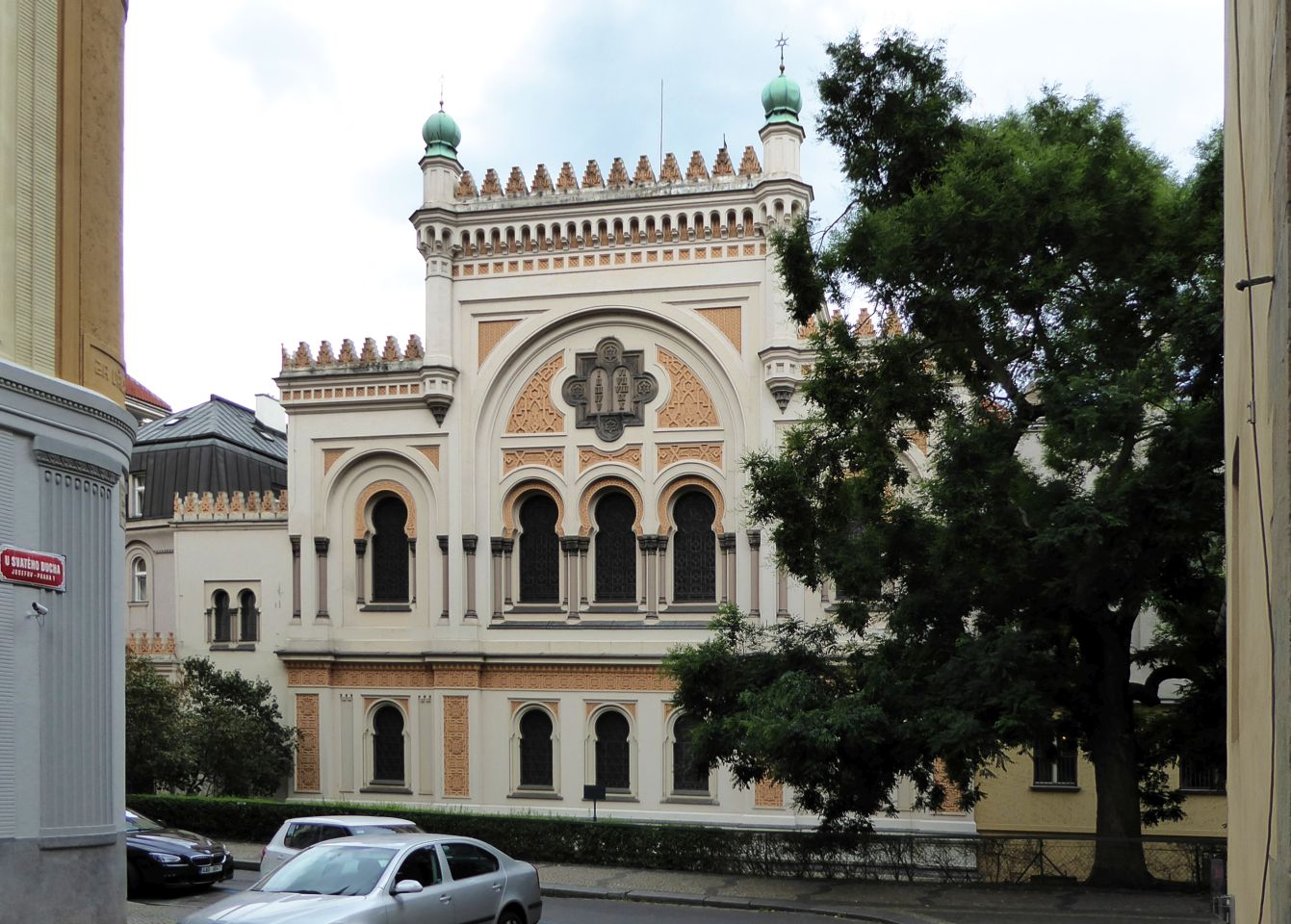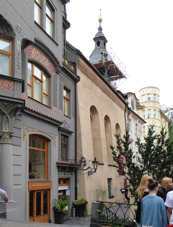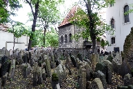 Wir gehen wieder zurück in Richtung Pařížská, besichtigen das Jüdische Rathaus, die Hohe Synagoge und die Altneu Synagoge. Durch die Meisselstraße gehen wir bis zu der Meisel-Synagoge, dann zurück nur bis zur Breiten Gasse - Široká. Hier links eingebogen, kommen wir zu der Pinkas-Synagoge. Hier ist dann auch der Eingang zum Alten jüdischen Friedhof. Den Fridhof verlassen wir an der Zeremonie-Halle.