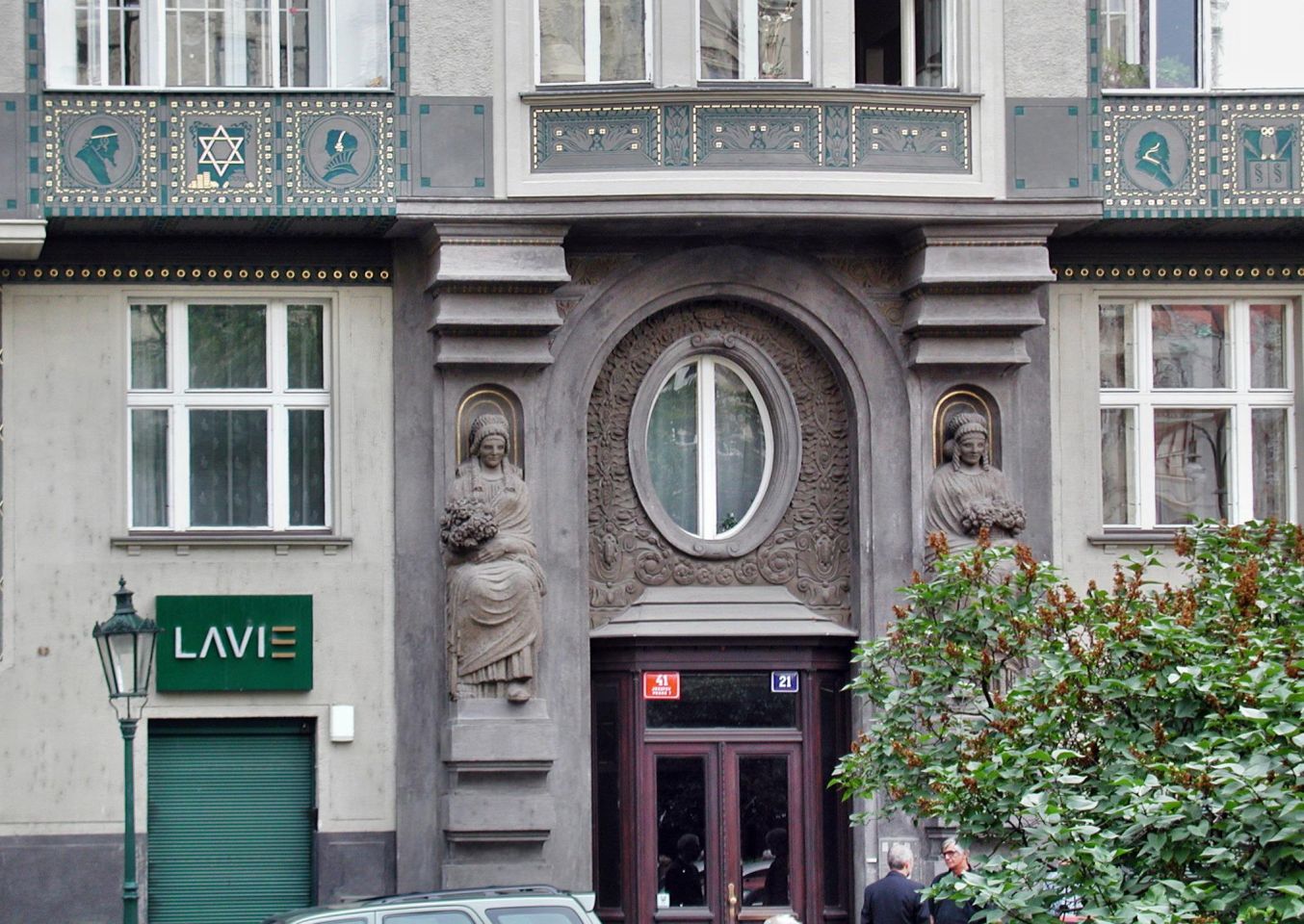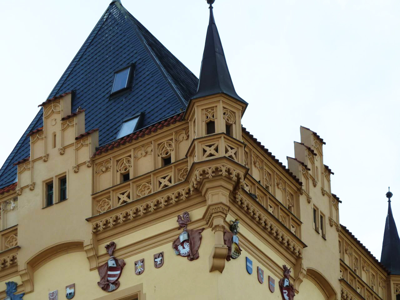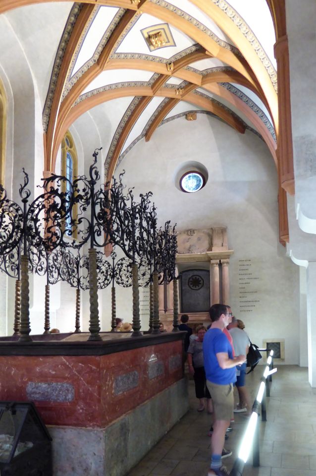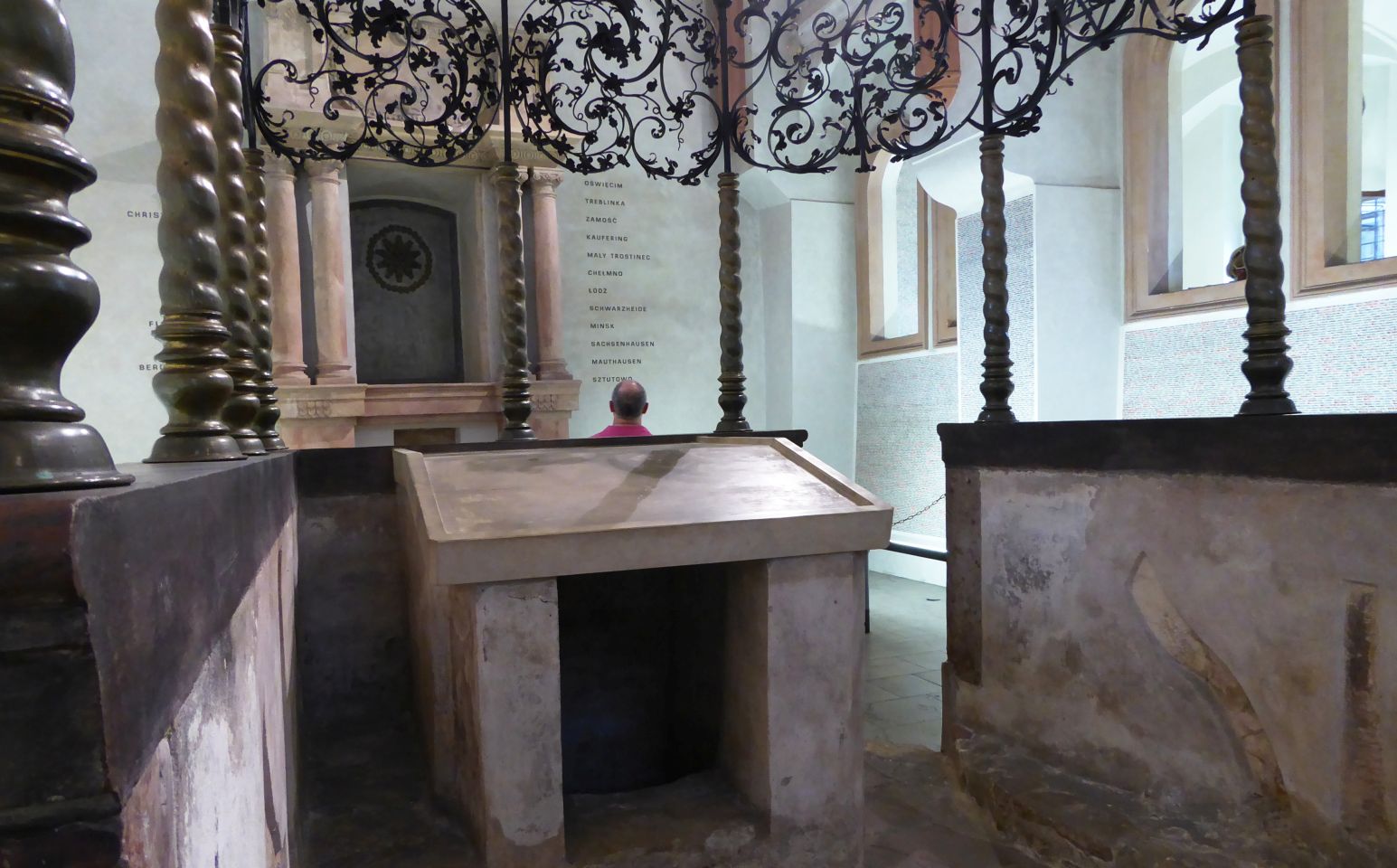 Wir gehen wieder zurück in Richtung Pařížská, besichtigen das Jüdische Rathaus, die Hohe Synagoge und die Altneu Synagoge. Durch die Meisselstraße gehen wir bis zu der Meisel-Synagoge, dann zurück nur bis zur Breiten Gasse - Široká. Hier links eingebogen, kommen wir zu der Pinkas-Synagoge. Hier ist dann auch der Eingang zum Alten jüdischen Friedhof. Den Fridhof verlassen wir an der Zeremonie-Halle.