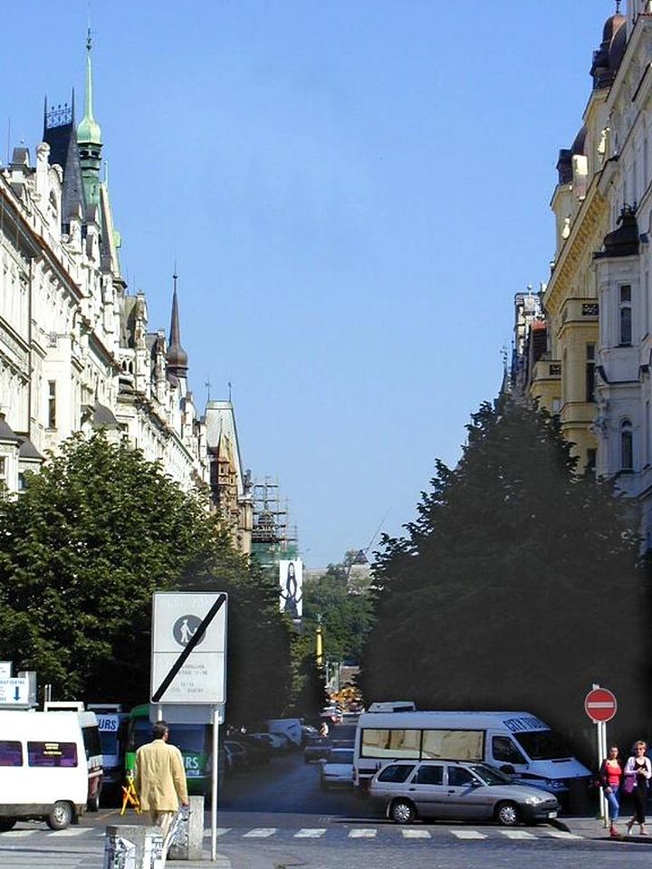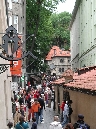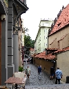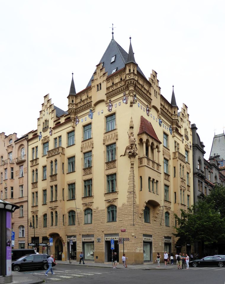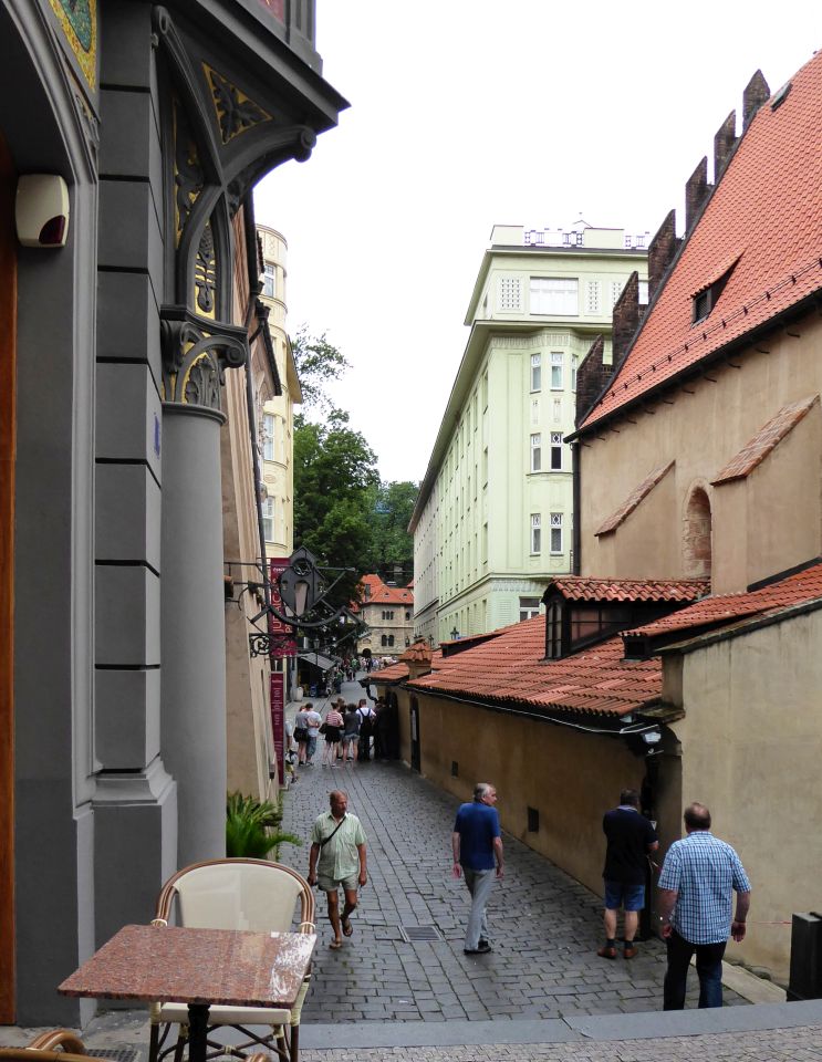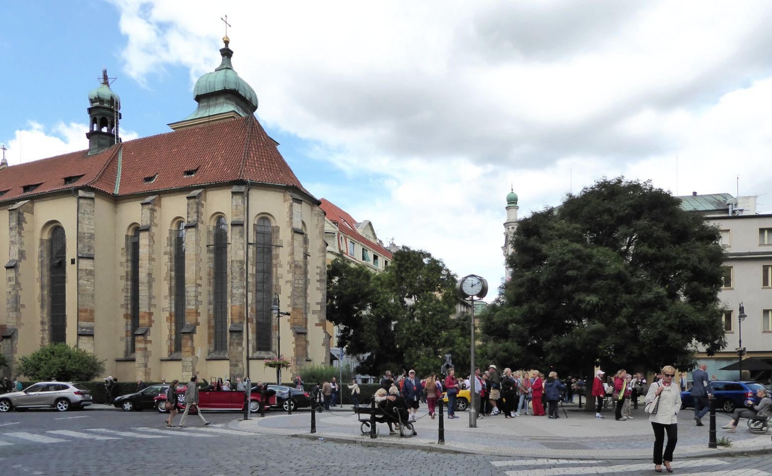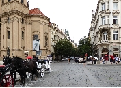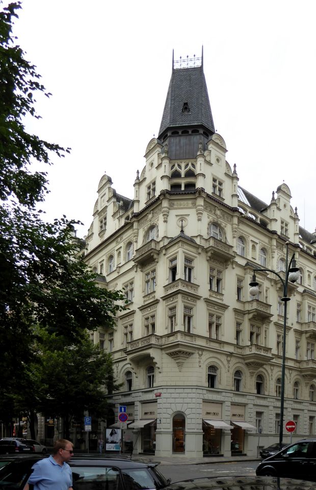 Von der Metrostation gehen wir rechts durch die Kaprova zum Franz Kafka Platz, an der St.Nikolaus-Kirche vorbei bis zur Pariser Str. - Pařížská, unserem Ausgangspunkt.