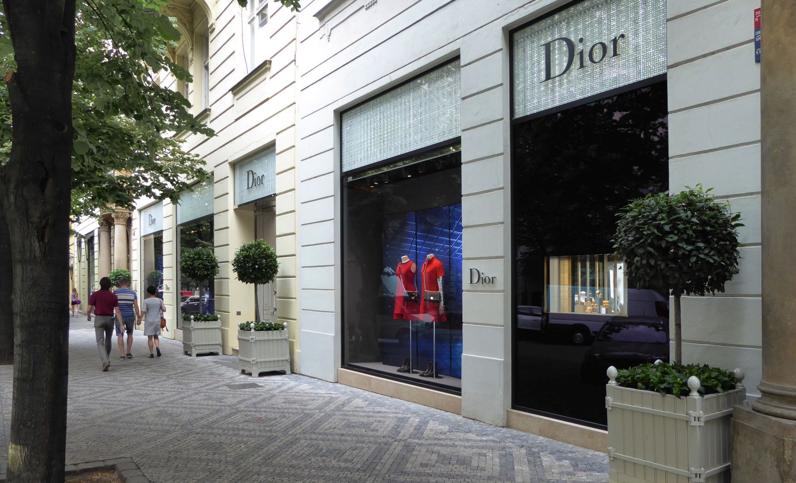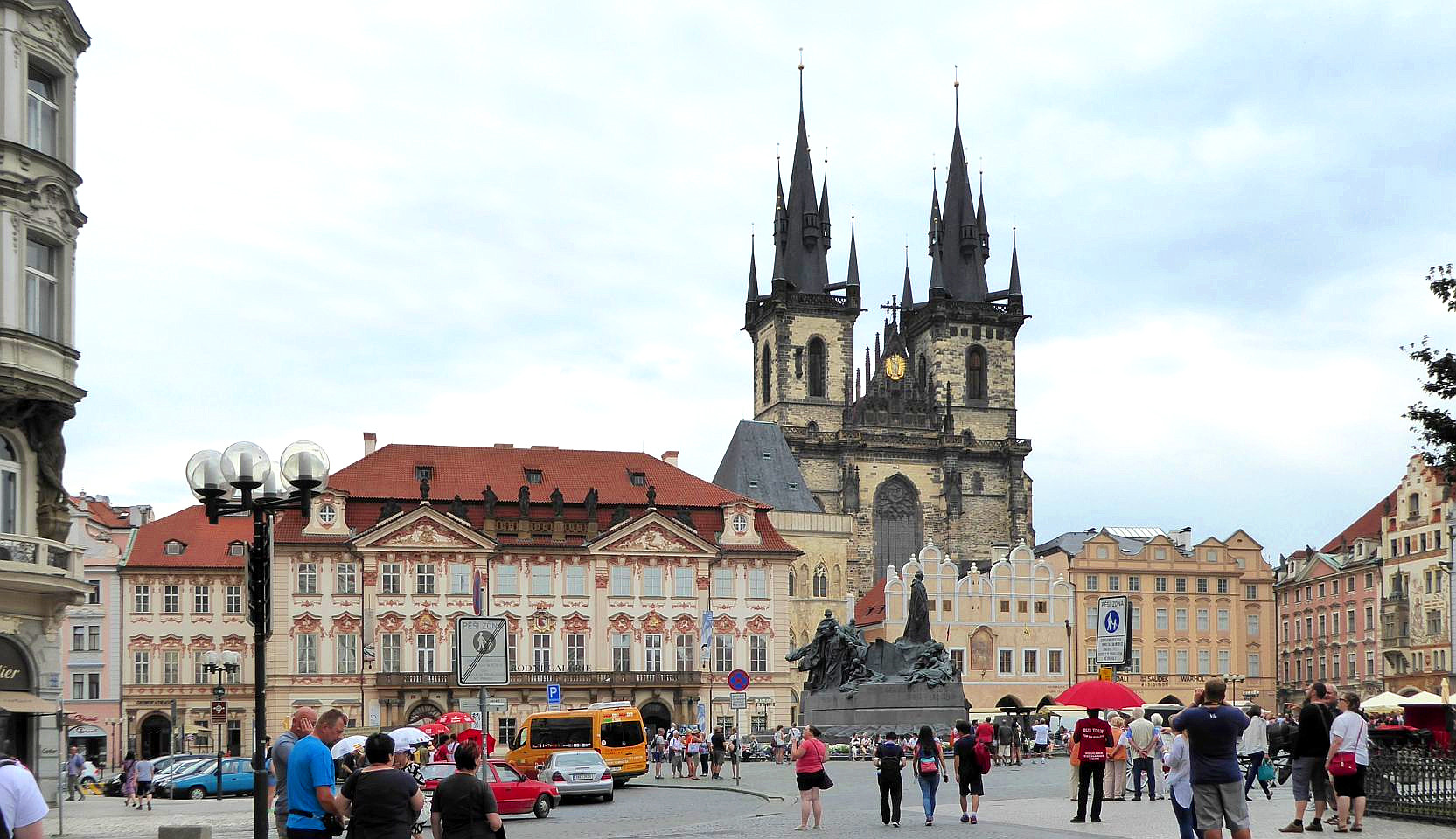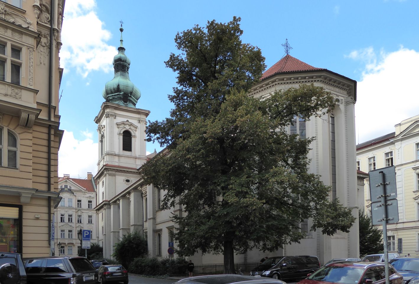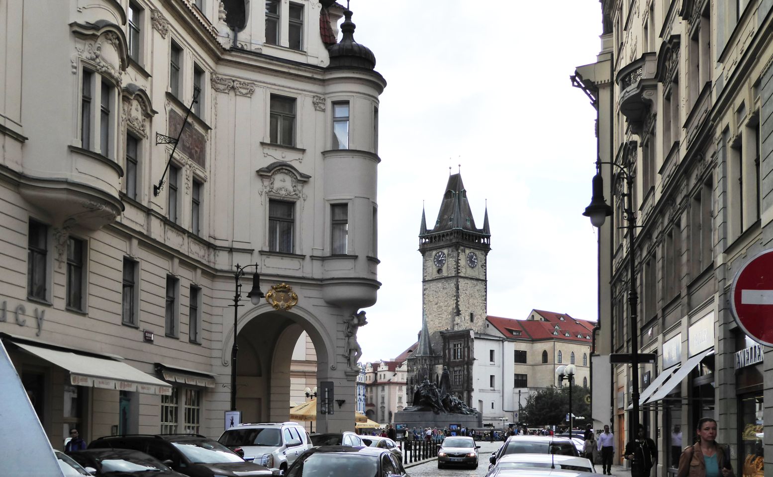 Von der Metrostation gehen wir rechts durch die Kaprova zum Franz Kafka Platz, an der St.Nikolaus-Kirche vorbei bis zur Pariser Str. - Pařížská, unserem Ausgangspunkt.