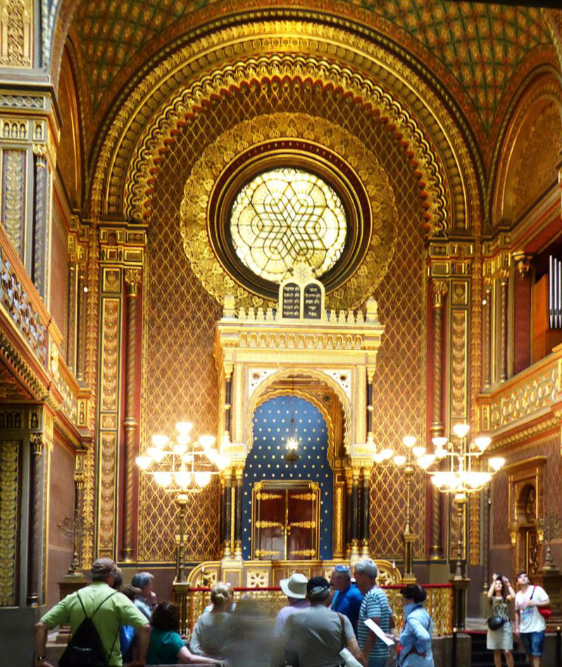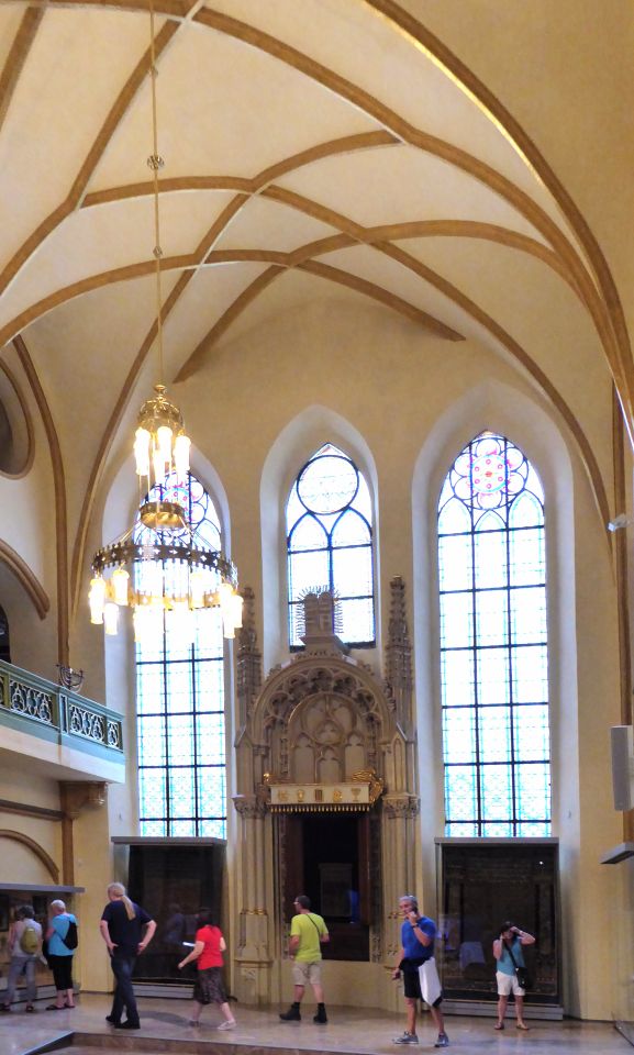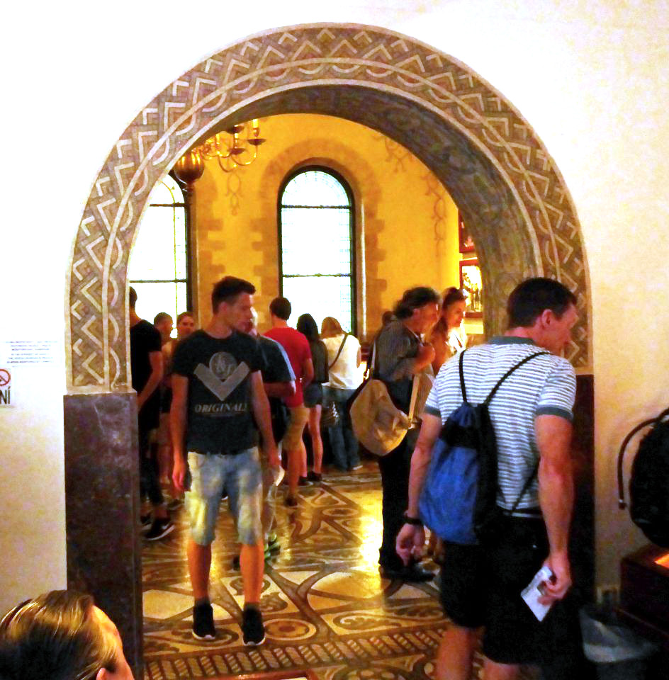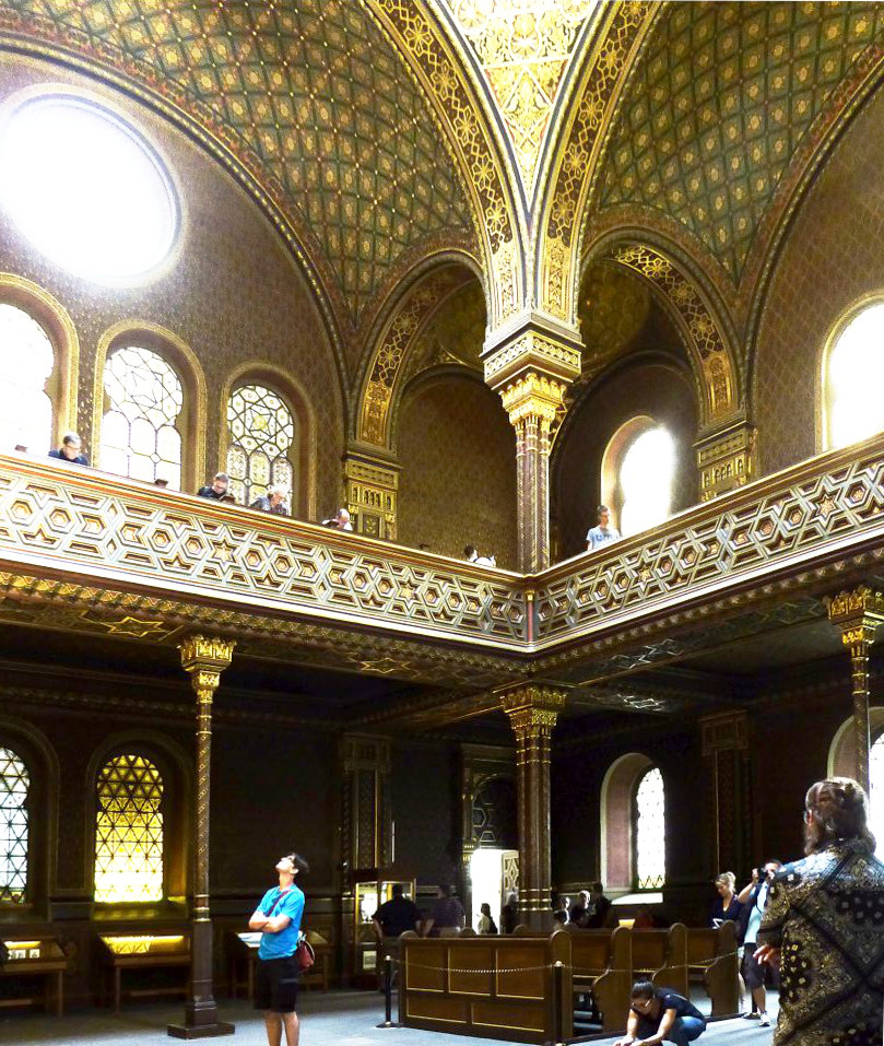 Jetzt müssen wir wieder zurück zu der Pařížská, rechts und gleich wieder links in die Breitengasse - Široká und kommen zu der katholischen Hlg.Geist-Kirche und zum Franz Kafka Denkmal. Hier besuchen wir die Spanische Synagoge und gehen dann wieder zurück zur Pařížská, rechts bis zum Altstadtring und nochmals rechts bis zu der Metro-Station Staroměstská.