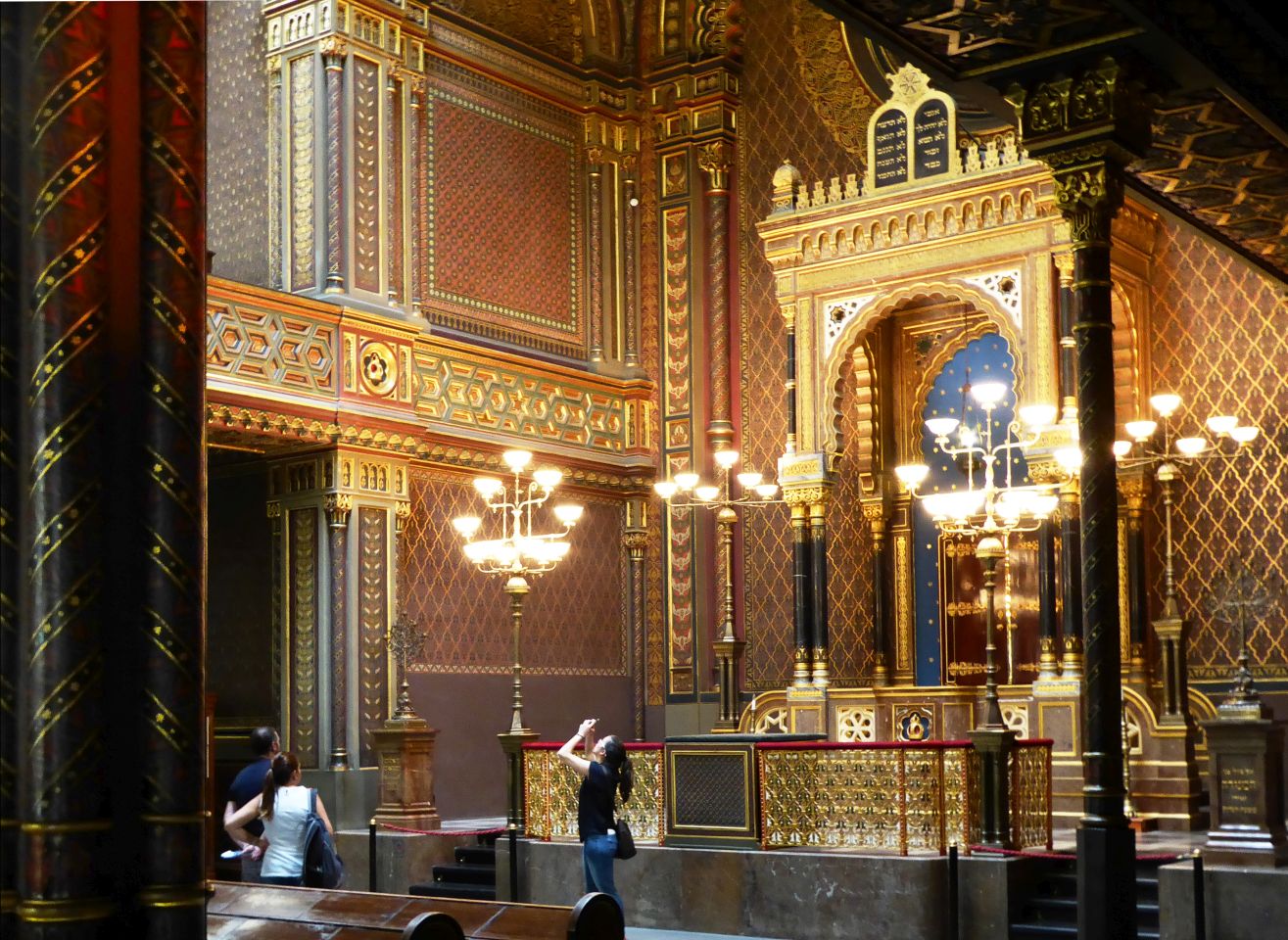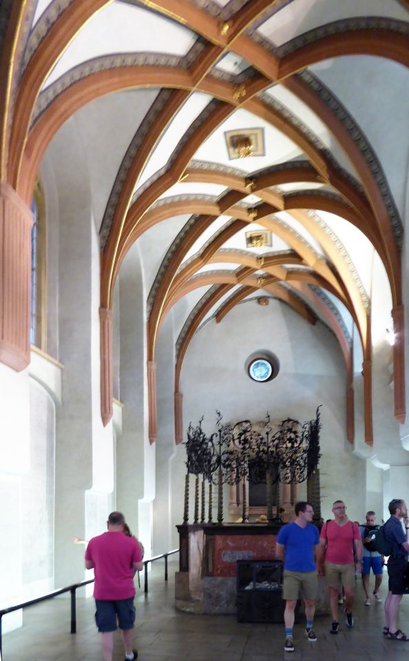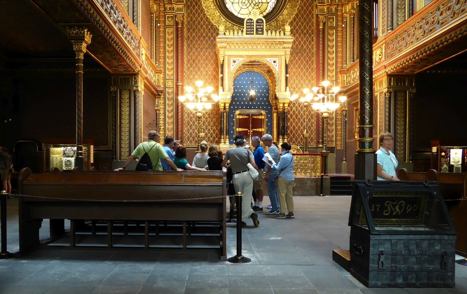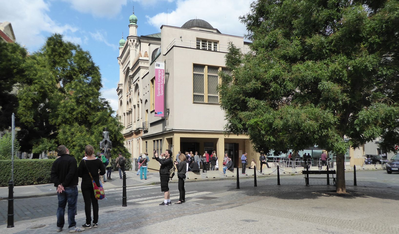Jetzt müssen wir wieder zurück zu der Pařížská, rechts und gleich wieder links in die Breitengasse - Široká und kommen zu der katholischen Hlg.Geist-Kirche und zum Franz Kafka Denkmal. Hier besuchen wir die Spanische Synagoge und gehen dann wieder zurück zur Pařížská, rechts bis zum Altstadtring und nochmals rechts bis zu der Metro-Station Staroměstská.