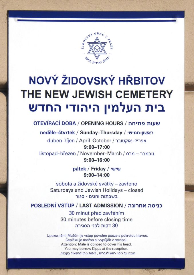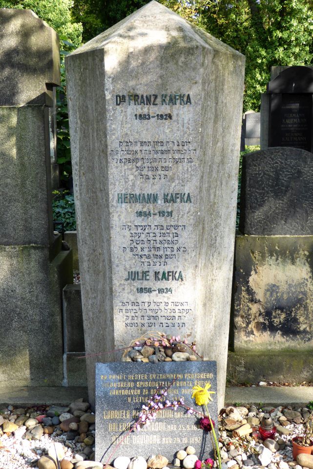 Franz Kafka (*3.7.1883,+3.6.1924), berühmter jüdischer Schriftsteller in deutscher Sprache, ist auf dem Neuen Jüdischen Friedhof im Stadtteil Žižkov , dem größten jüdischen Friedhof in Prag, beerdigt.