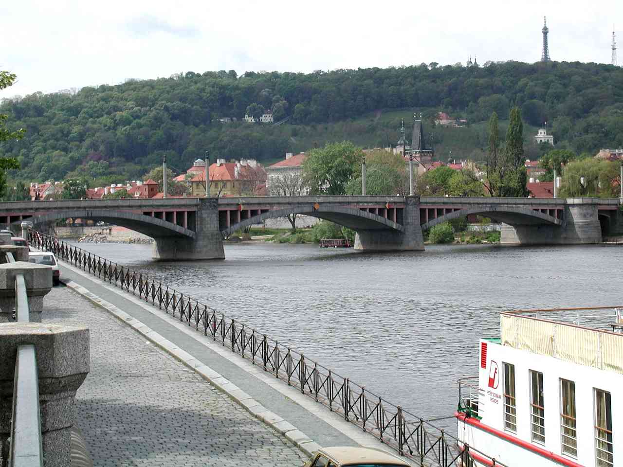 Die Nachbarsbrücke der Karlsbrücke flußabwärts ist ist die Mánes-Brücke.