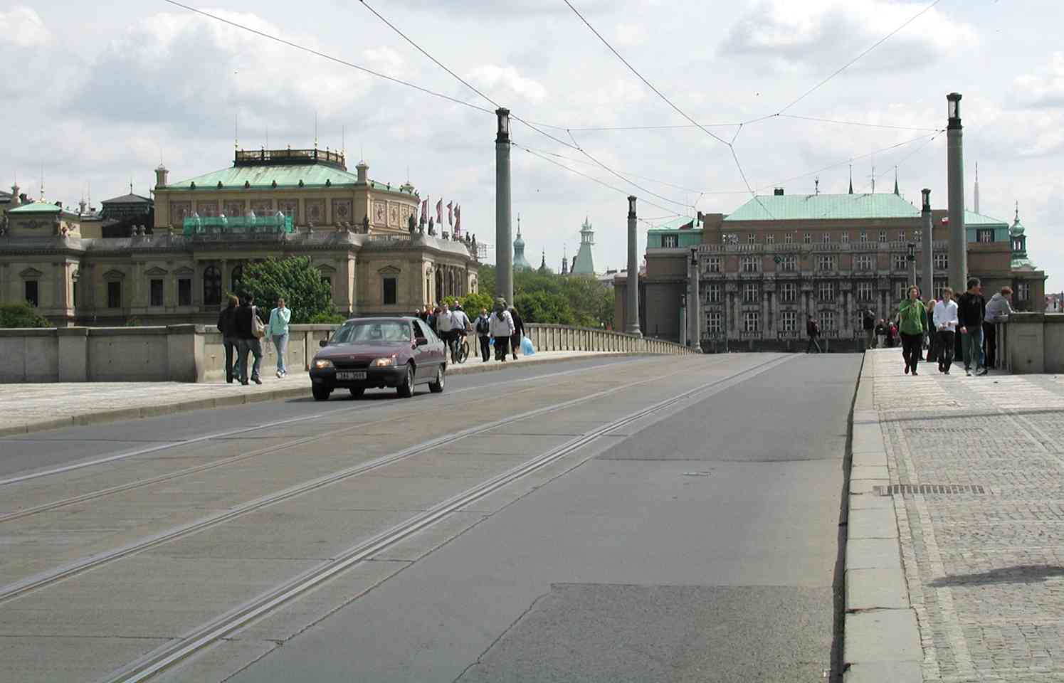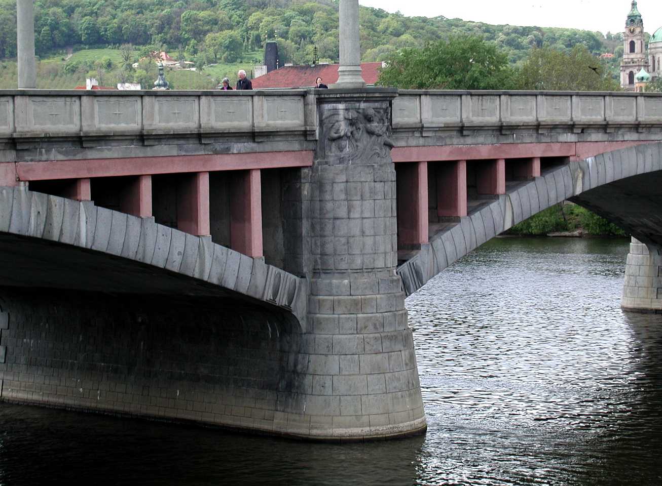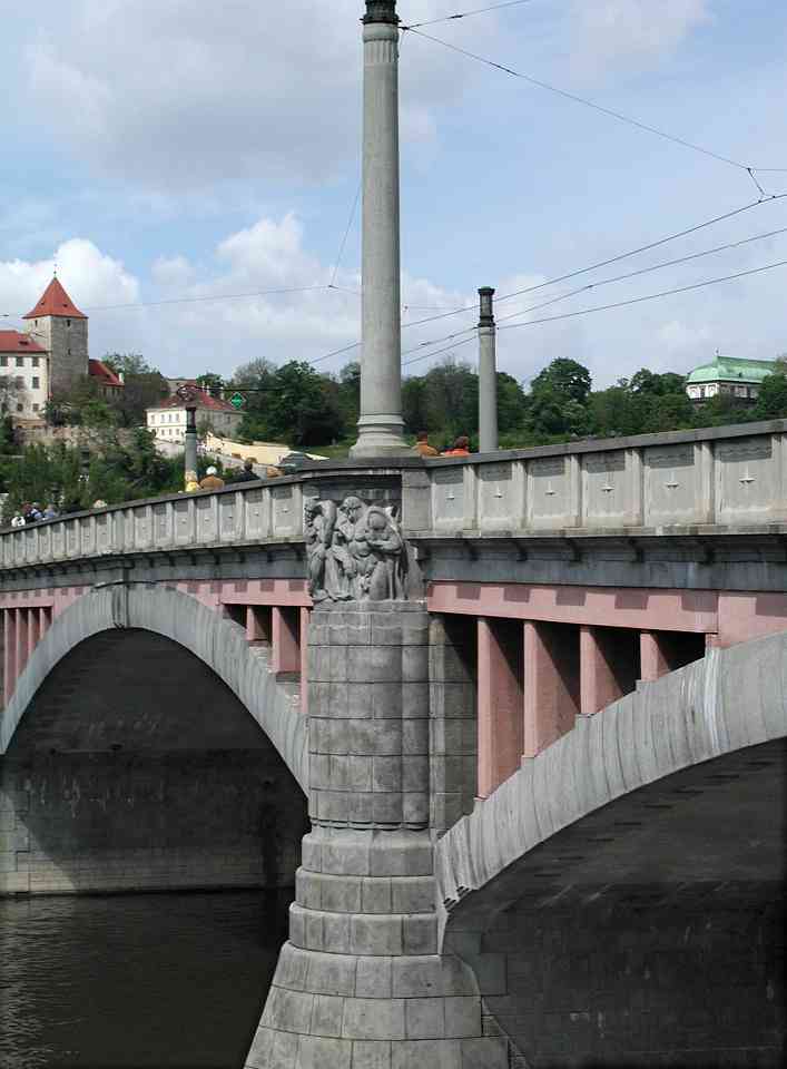 In den 60. Jahren ersetzte eine Asphaltdecke die Pflastersteine der Straße und Mosaiksteine auf dem Gehsteig. Wegen verschiedenen Schwierigkeiten in den 90. Jahren wurde sie wieder entfernt. Die Ausschmückung an den Brückenpfeilern beiderseits der Brücke zeigt Motive aus dem Leben der Moldauschiffer. Es sind Arbeiten der Bilhauer František Bilek und Josef Mařatka.